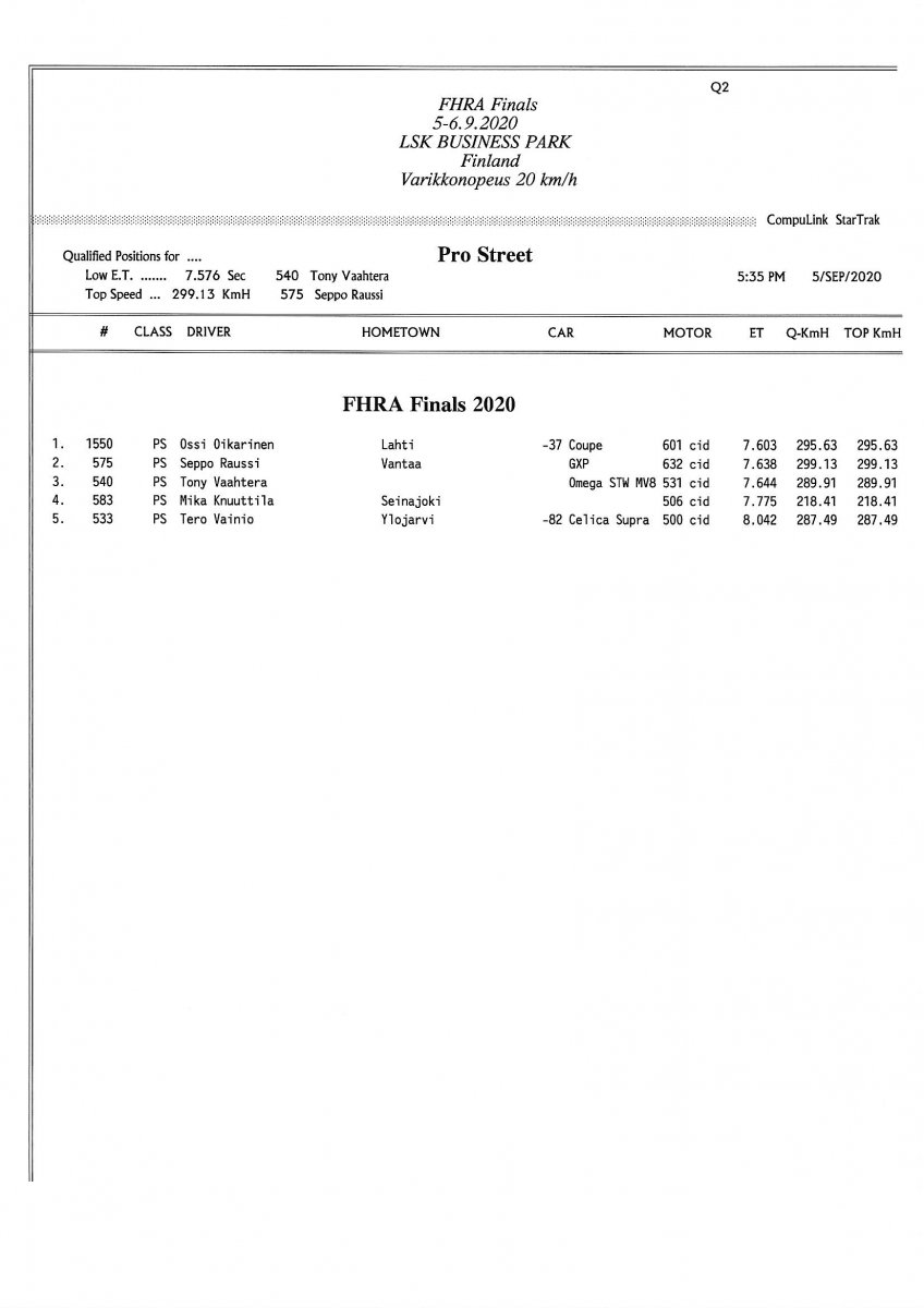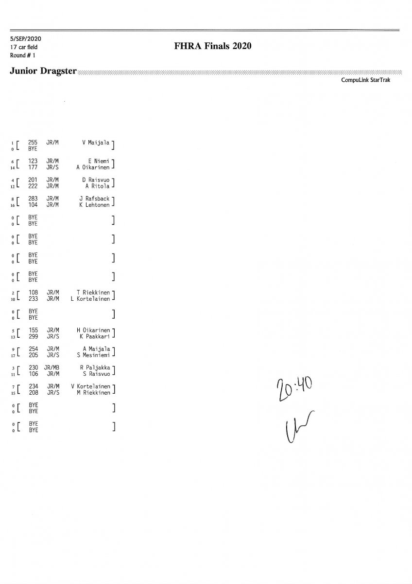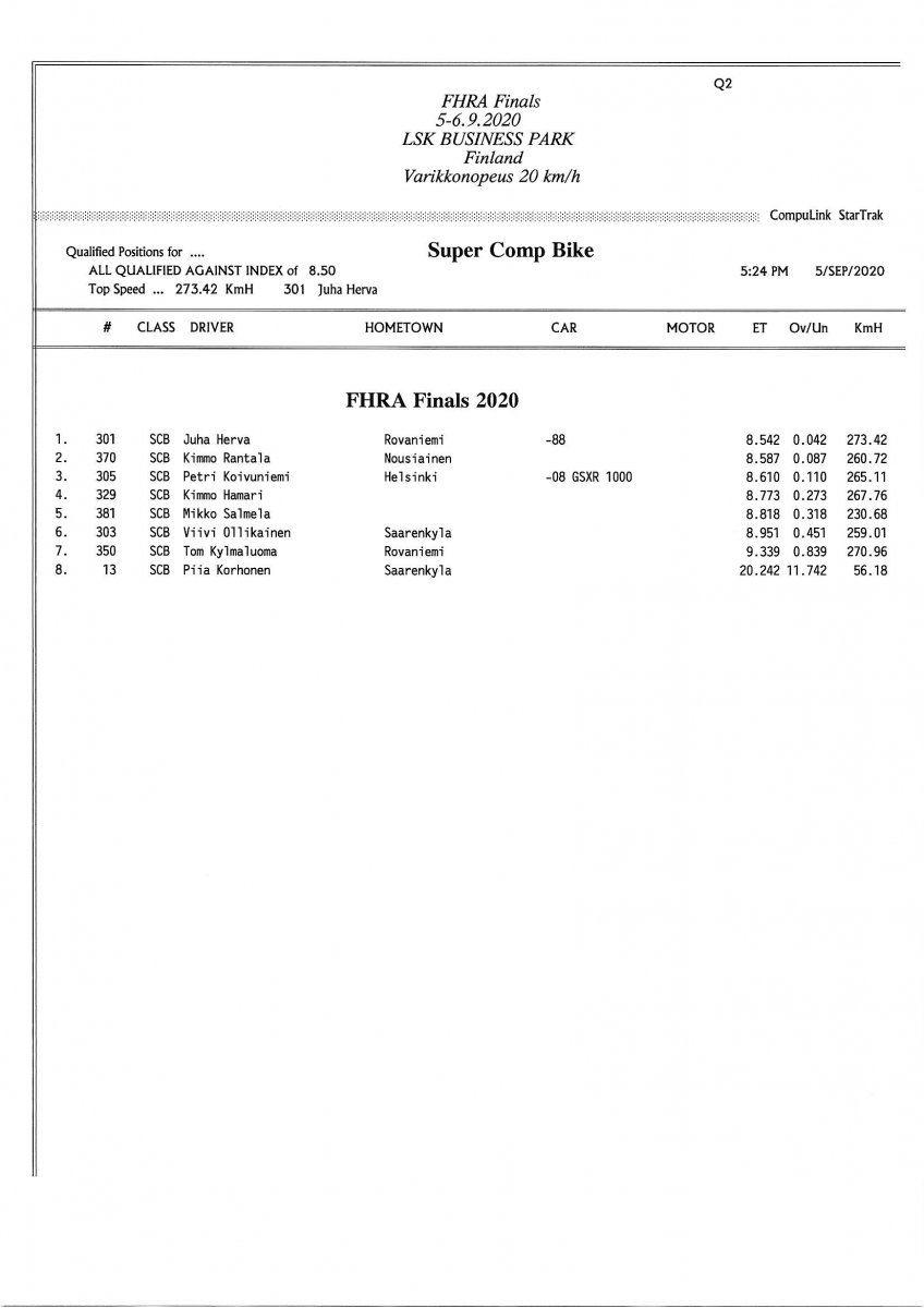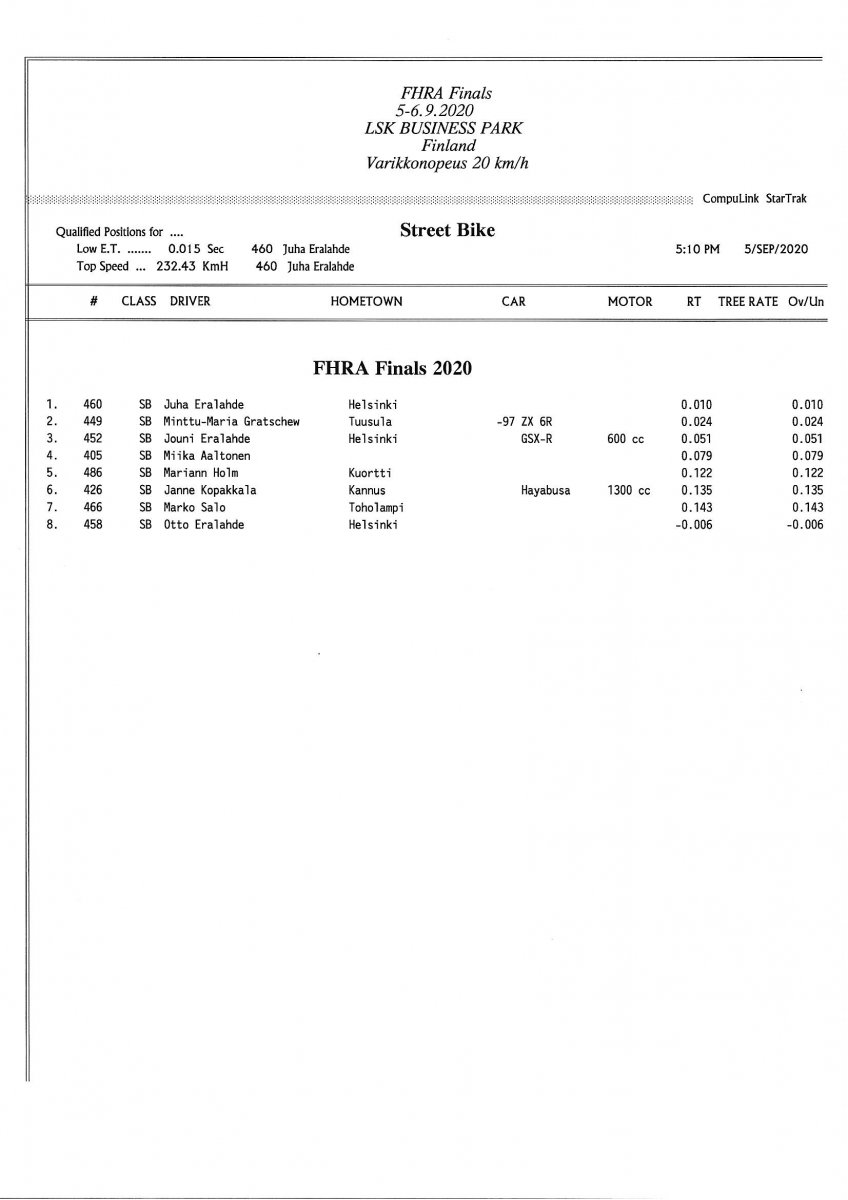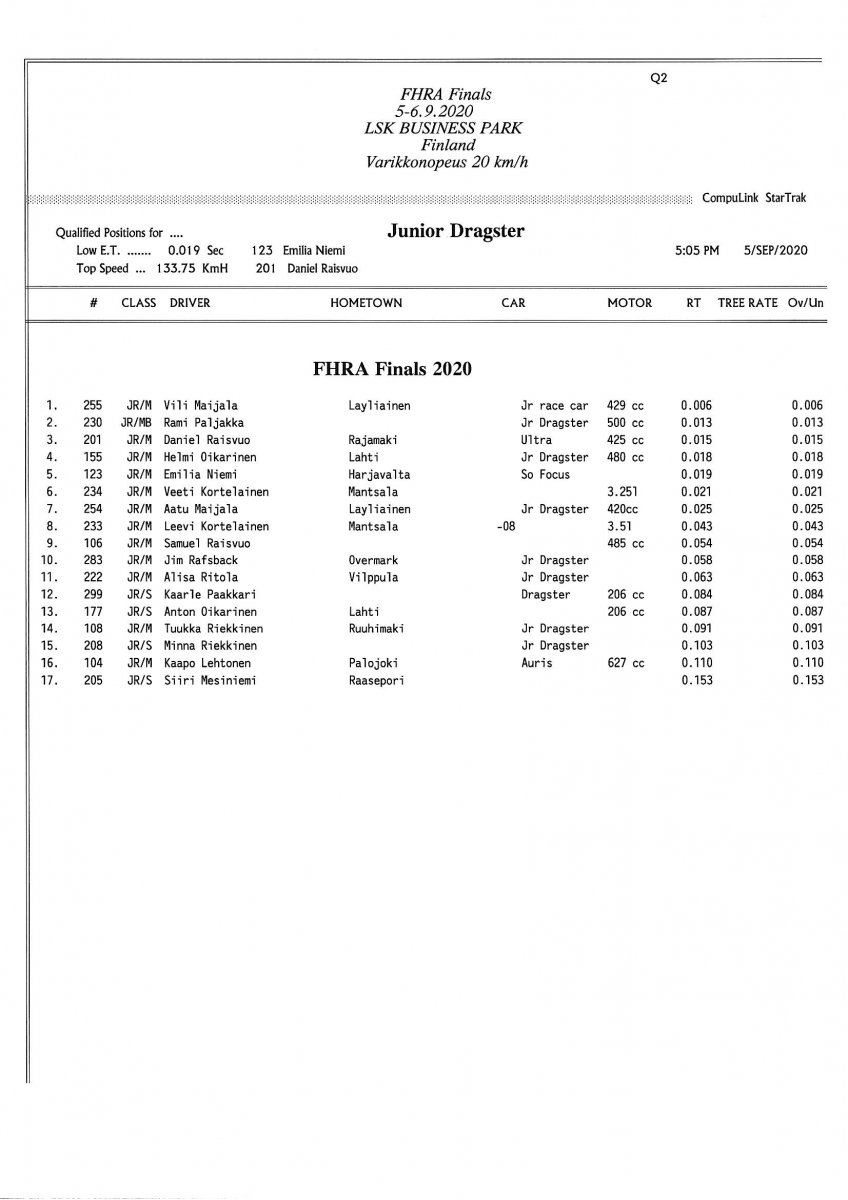 Lauantai 5.9. ajojärjestys: https://www.fhra.fi/wp-content/uploads/2020/09/Finals-2020-lauantai-Q-schedule.pdf