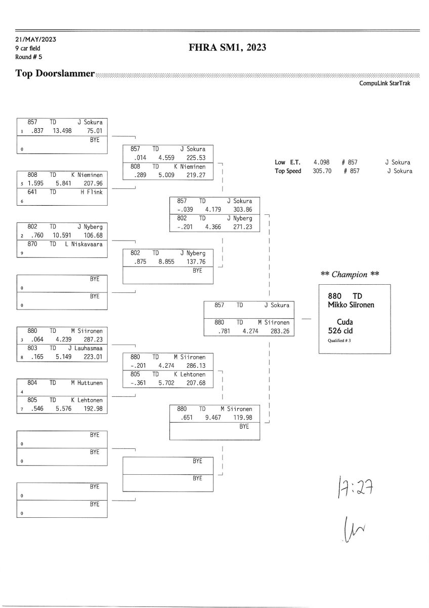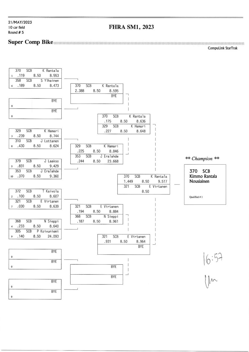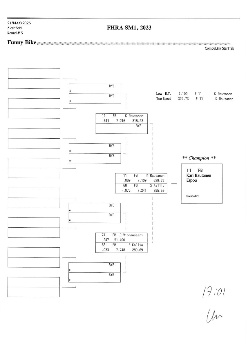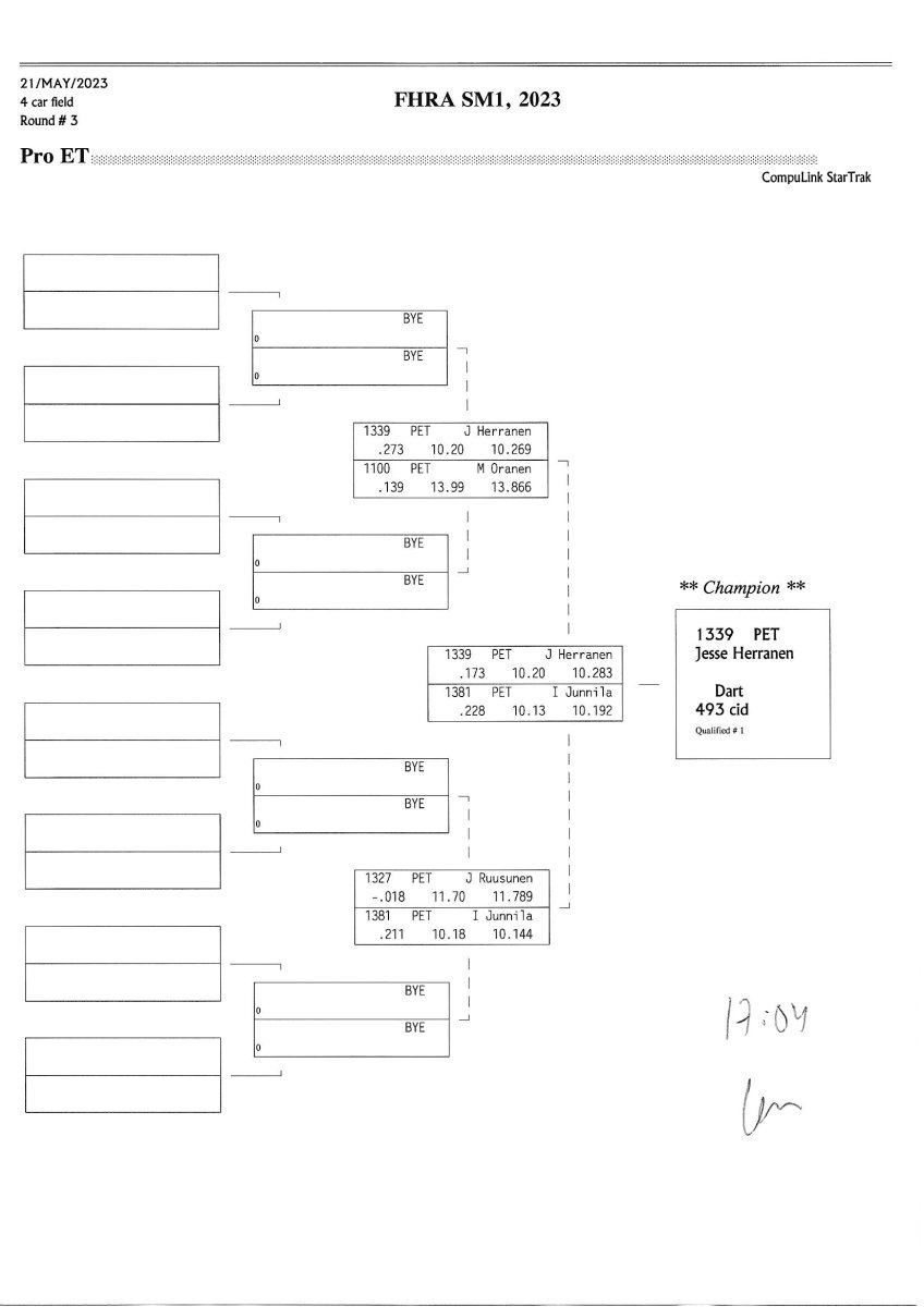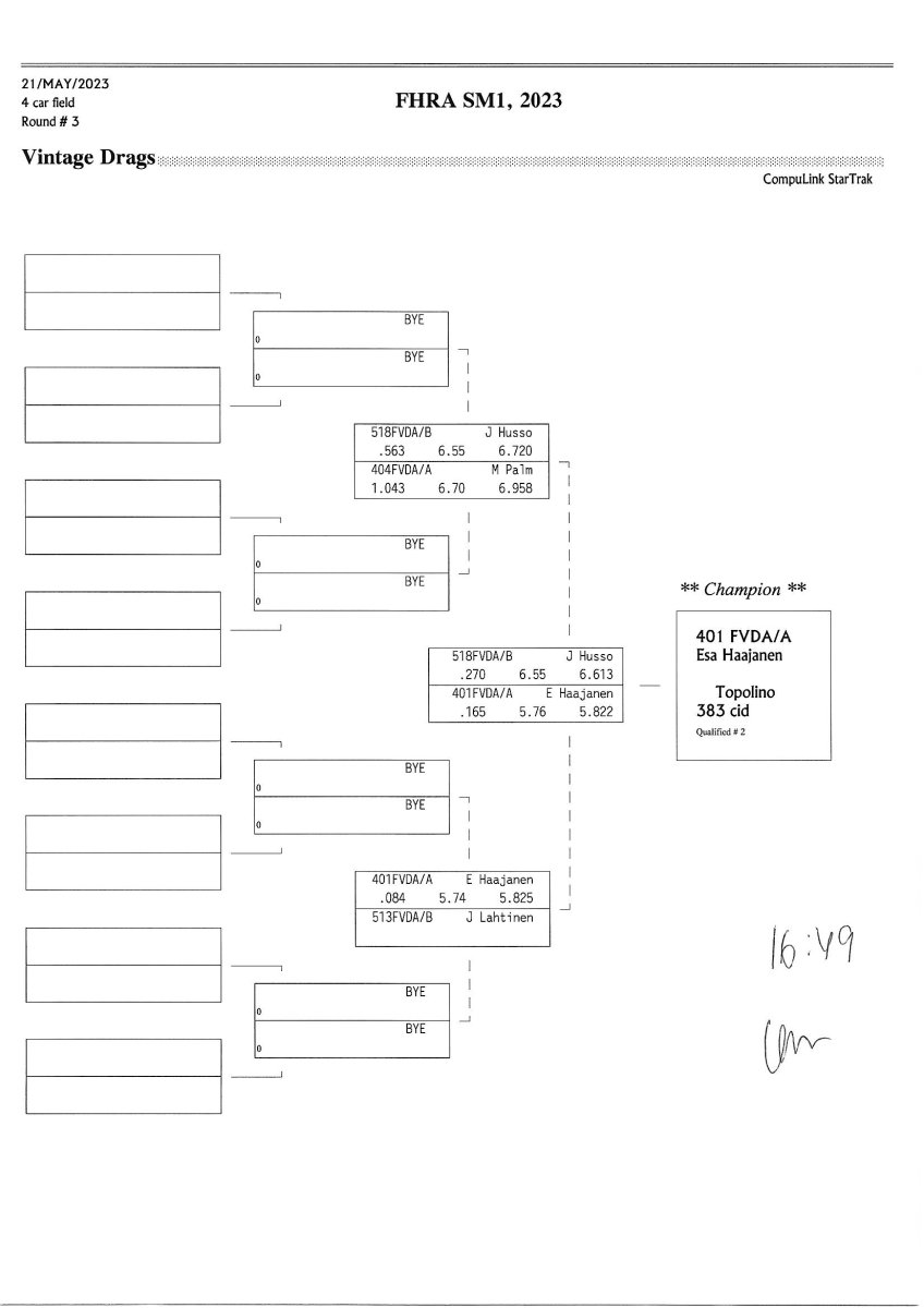 FHRA uutiset FHRA Kiihdytysajon SM-osakilpailu 1/2023, Motopark - tulokset