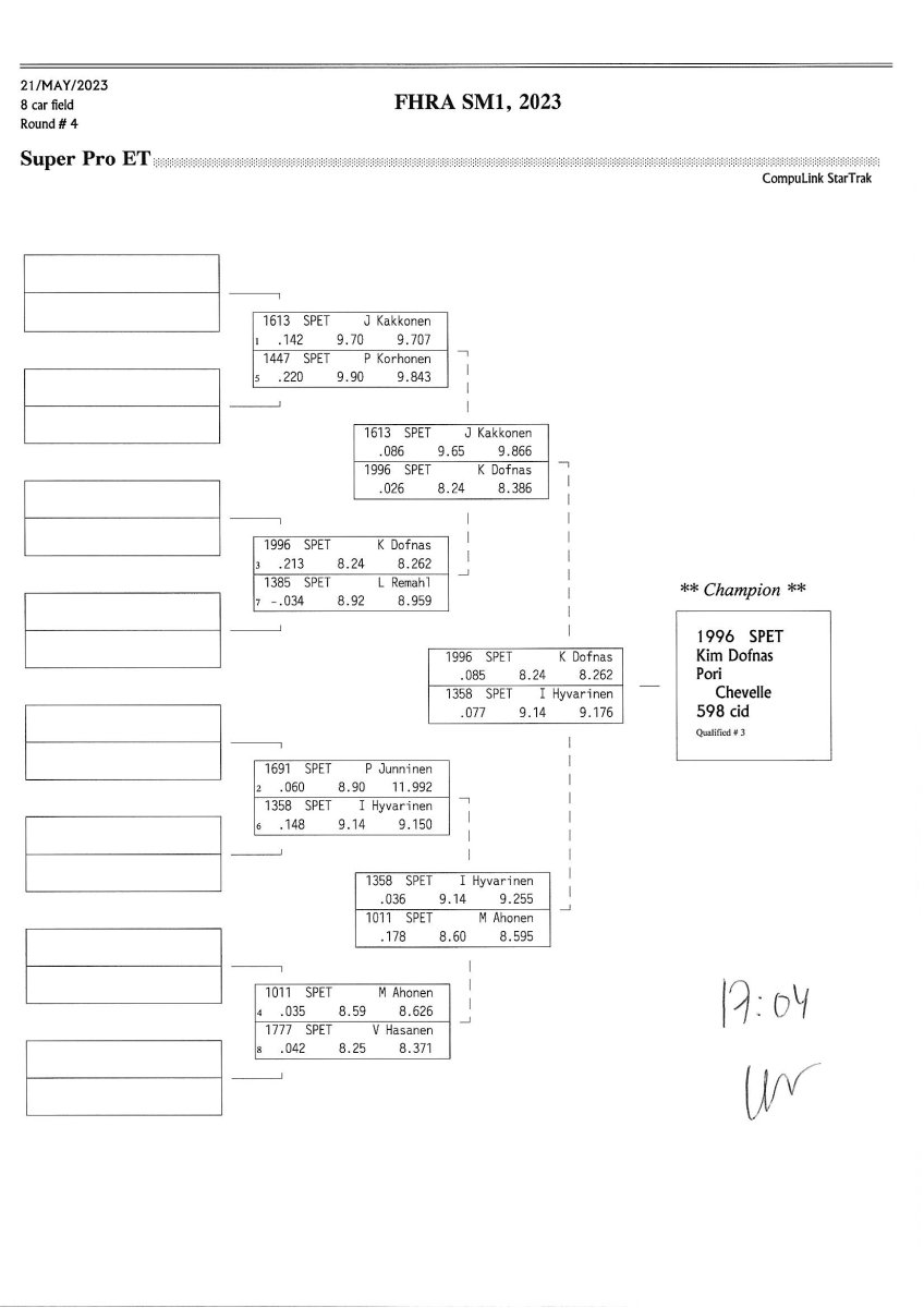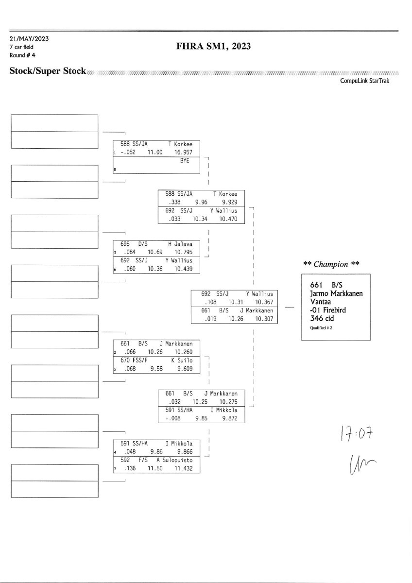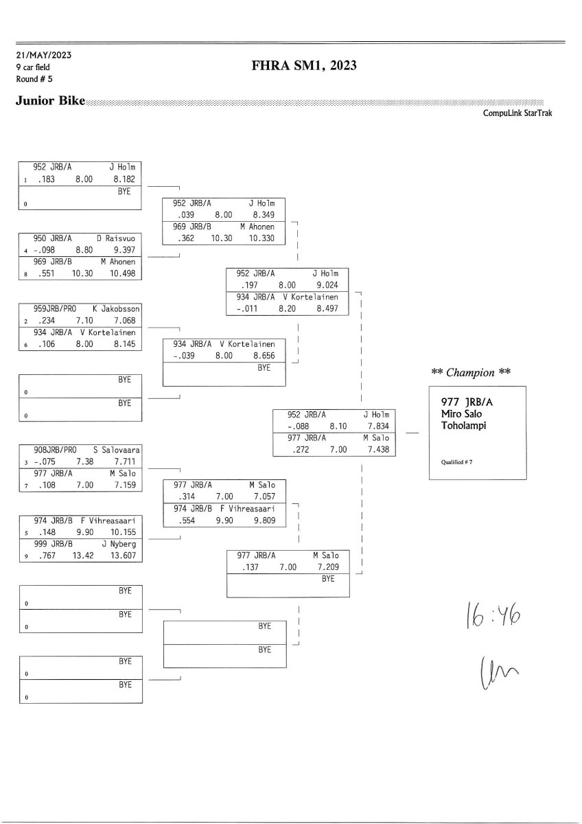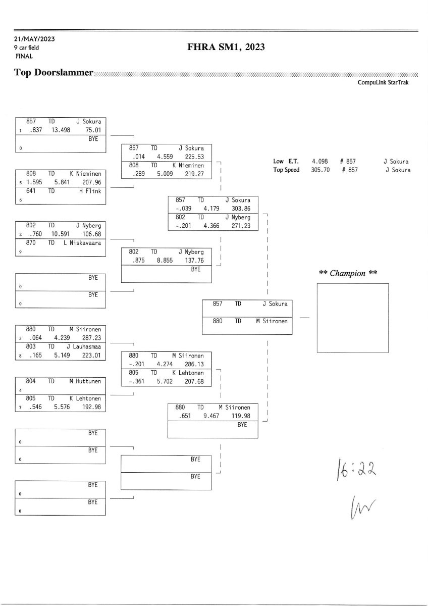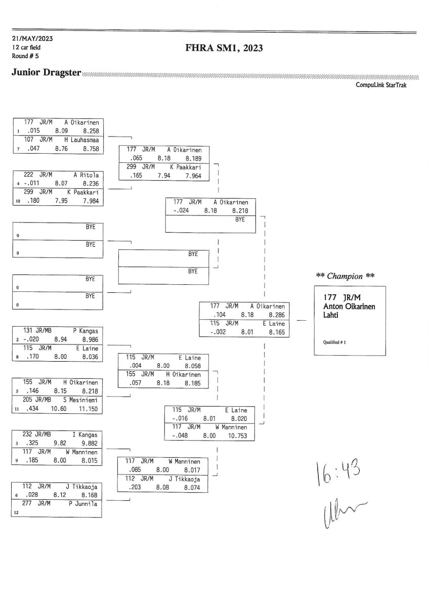 FHRA uutiset FHRA Kiihdytysajon SM-osakilpailu 1/2023, Motopark - tulokset