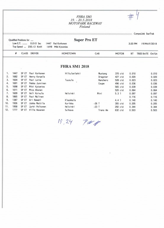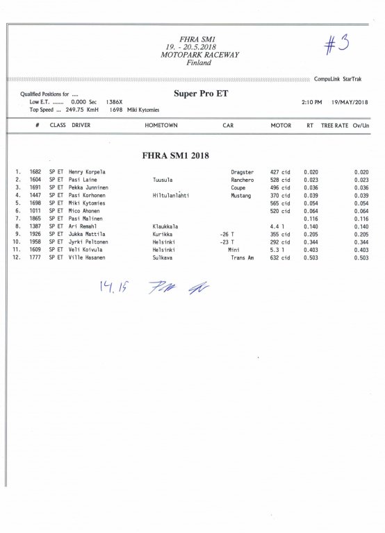 FHRA uutiset FHRA Kiihdytysajon SM-osakilpailu 1 & Test n´Tune 2018
