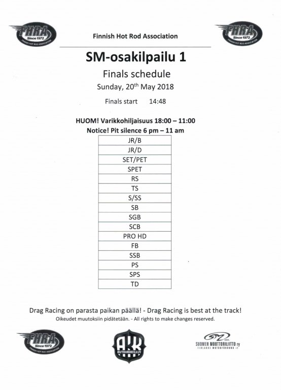 FHRA uutiset FHRA Kiihdytysajon SM-osakilpailu 1 & Test n´Tune 2018