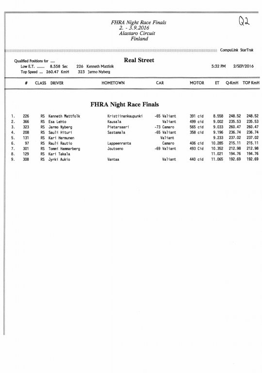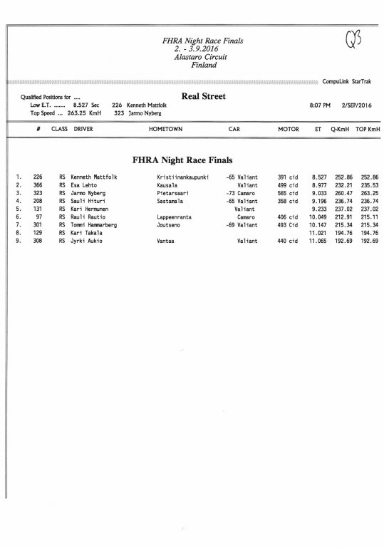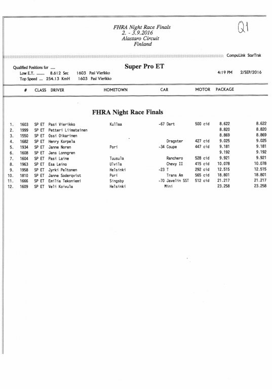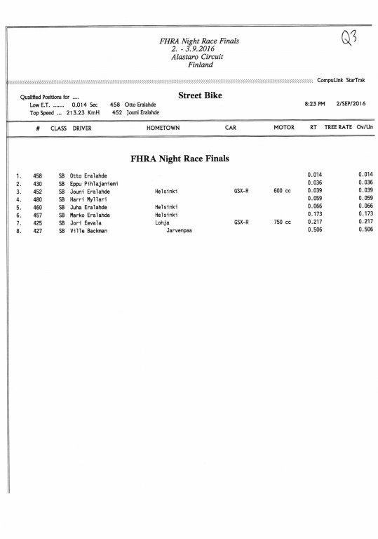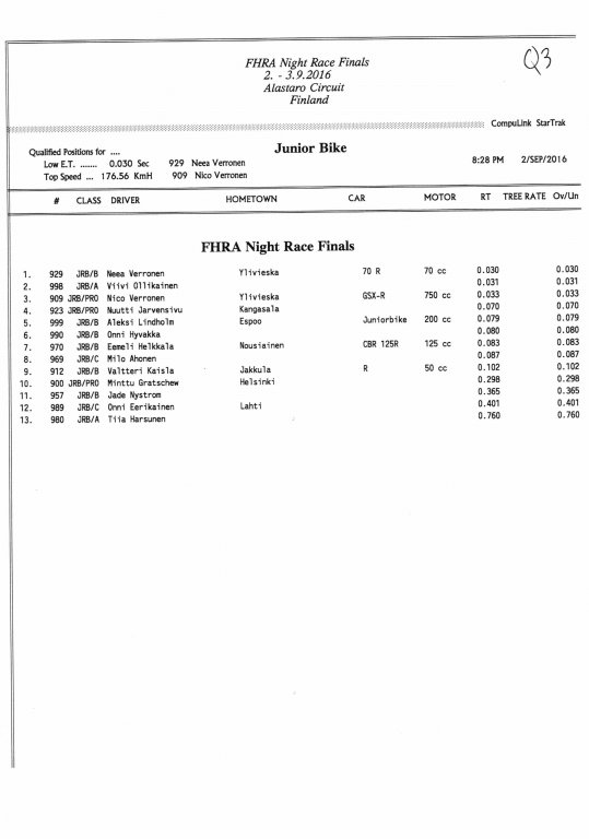 FHRA uutiset FHRA Night Race Finals 2016.