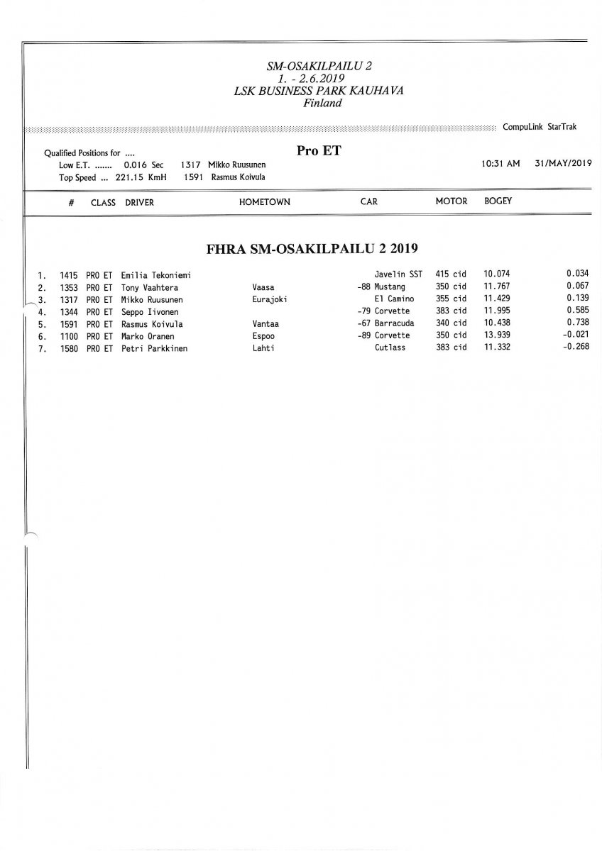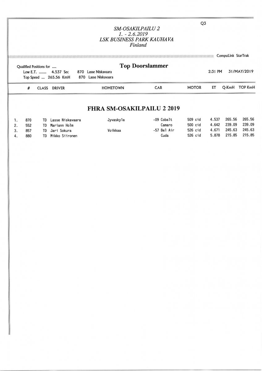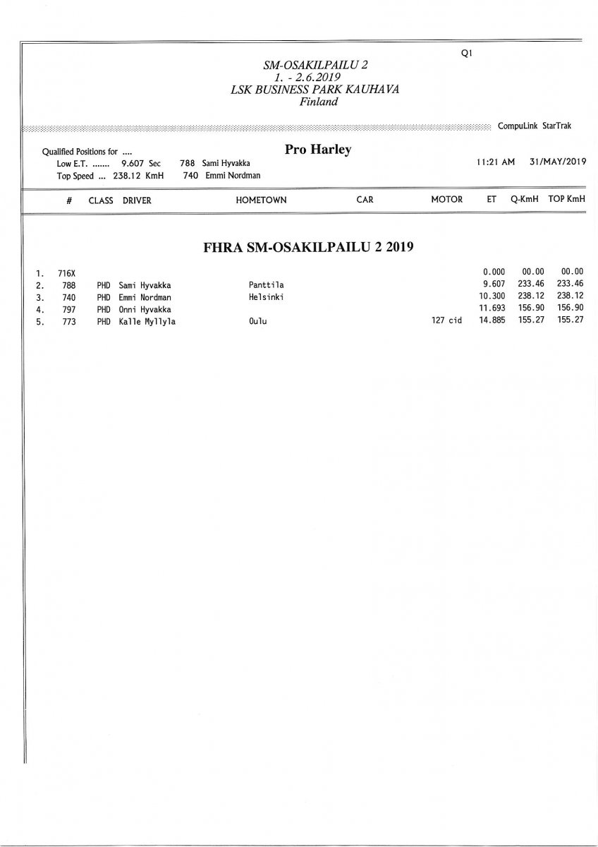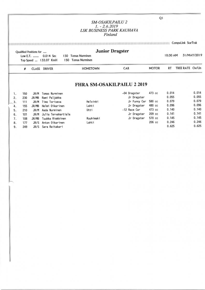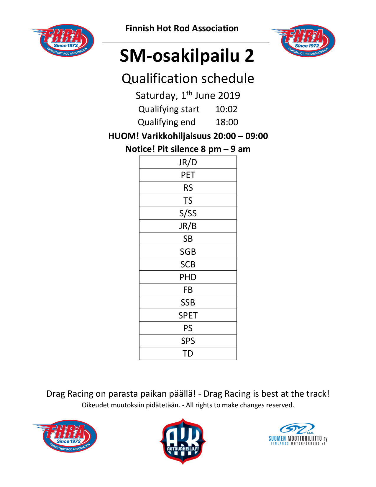 FHRA uutiset Kiihdytysajon SM-osakilpailu 2 & Test & Tune 2019