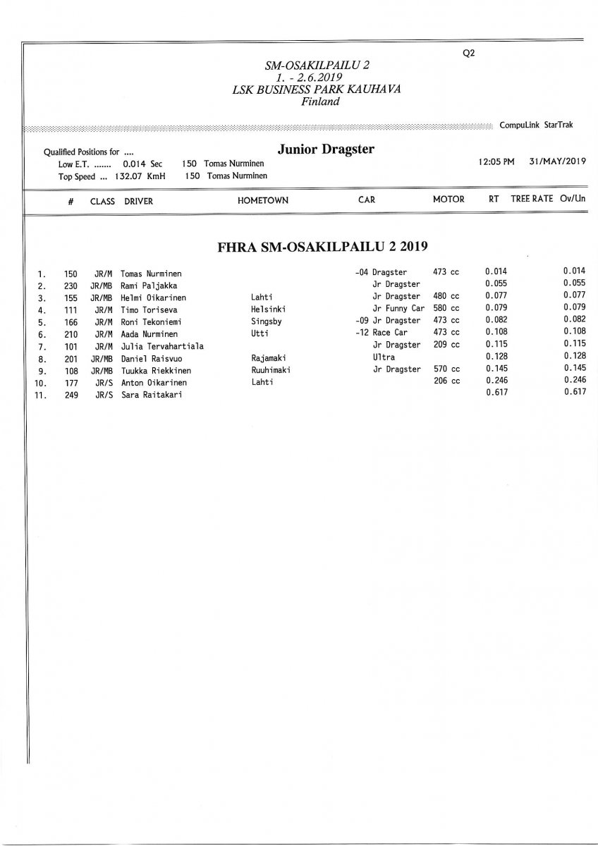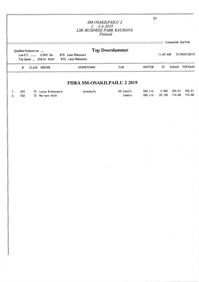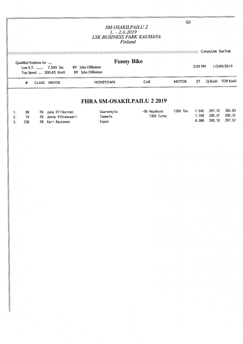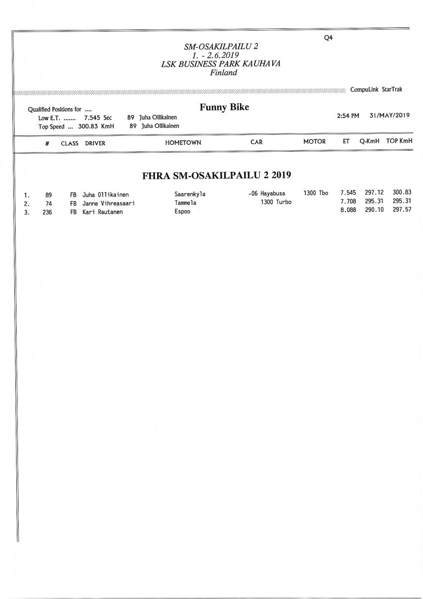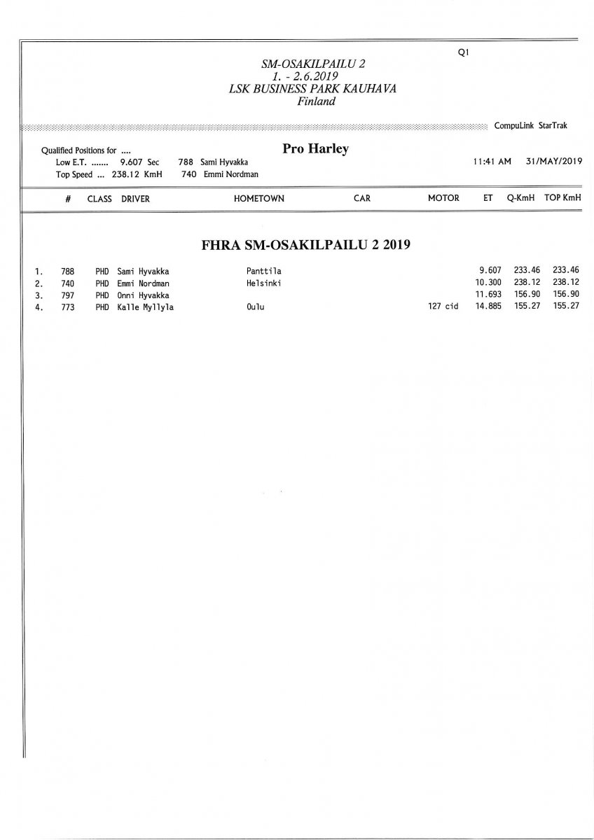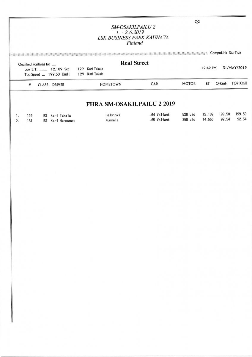 FHRA uutiset Kiihdytysajon SM-osakilpailu 2 & Test & Tune 2019