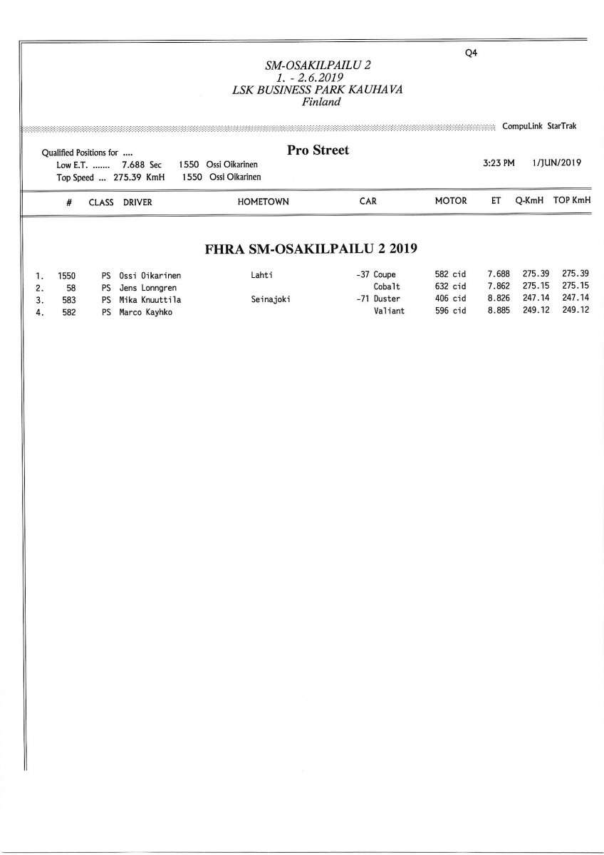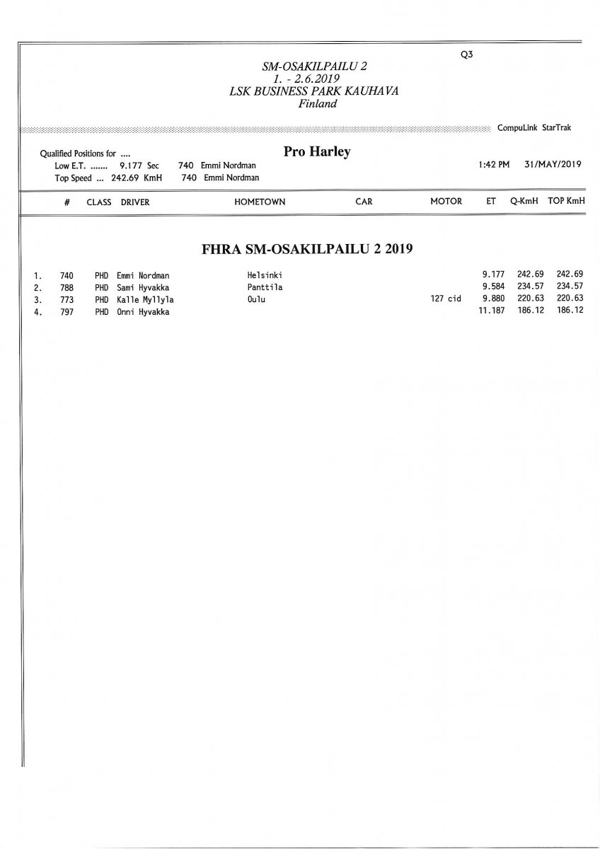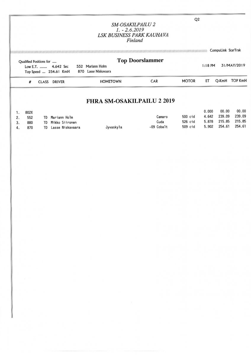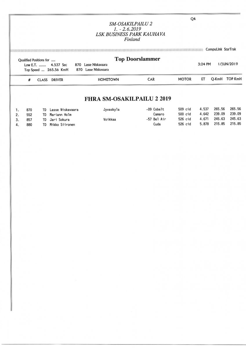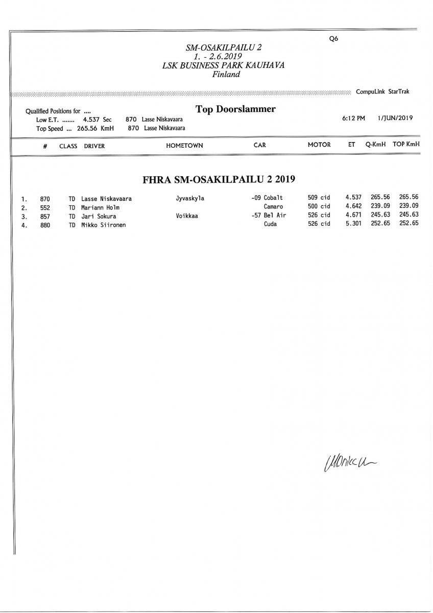 FHRA uutiset Kiihdytysajon SM-osakilpailu 2 & Test & Tune 2019