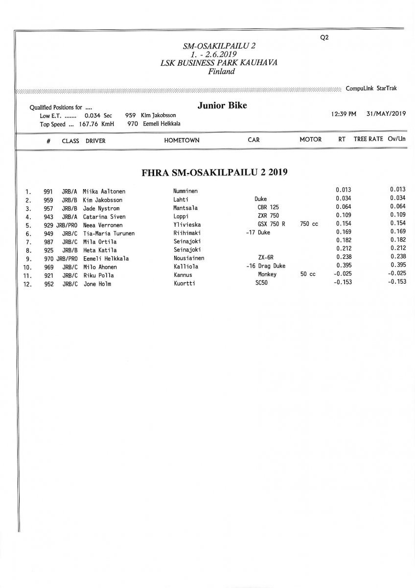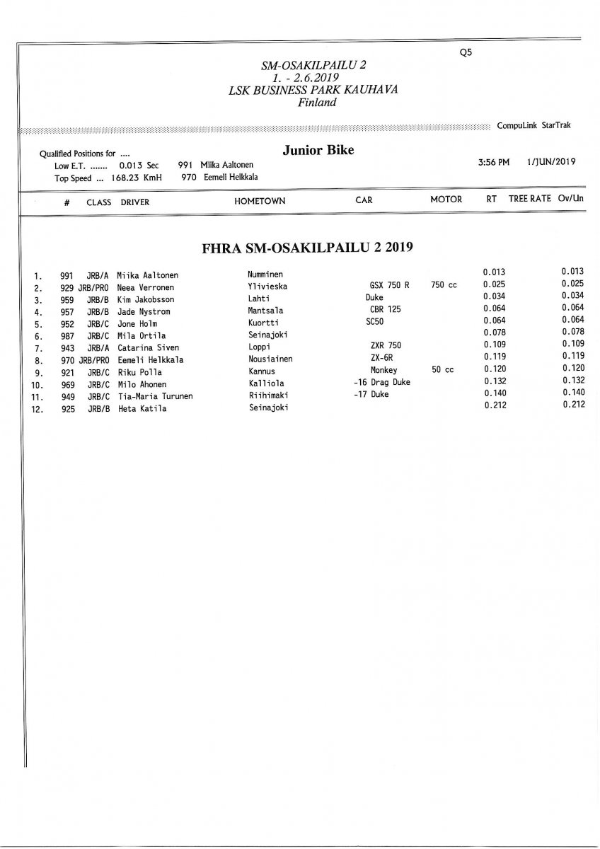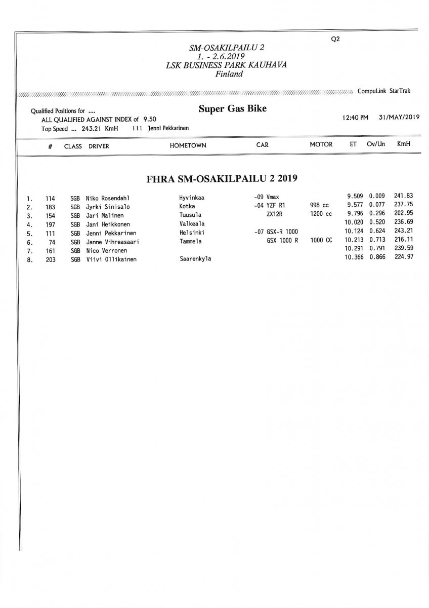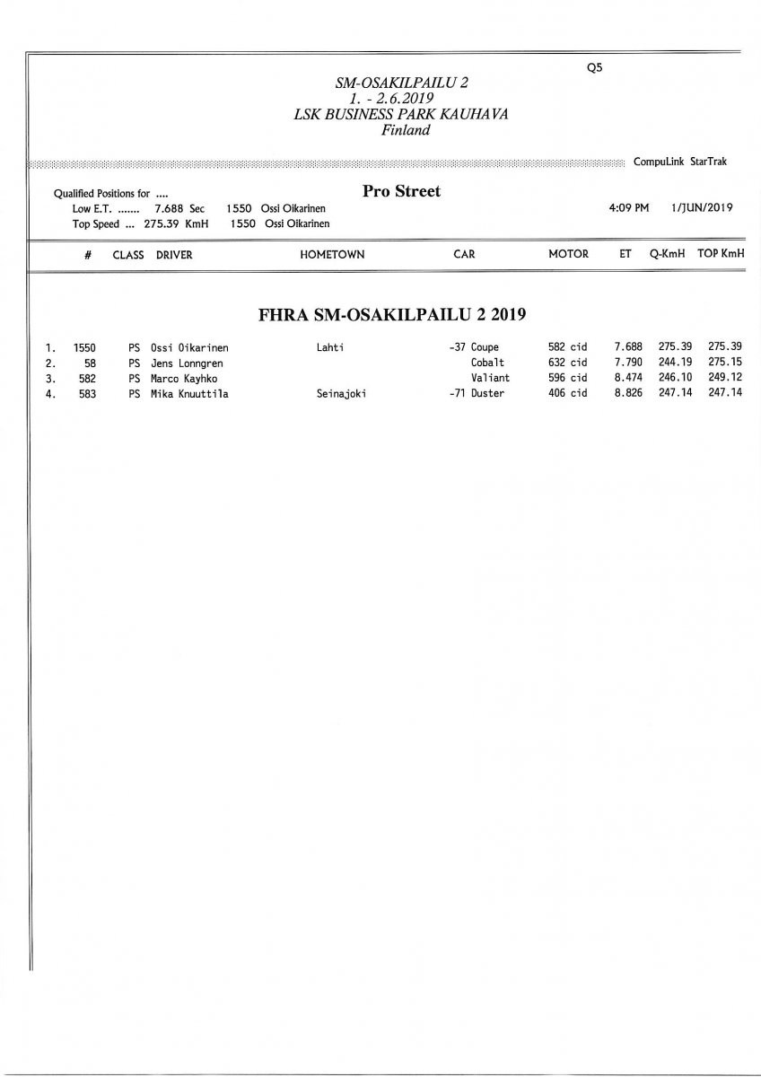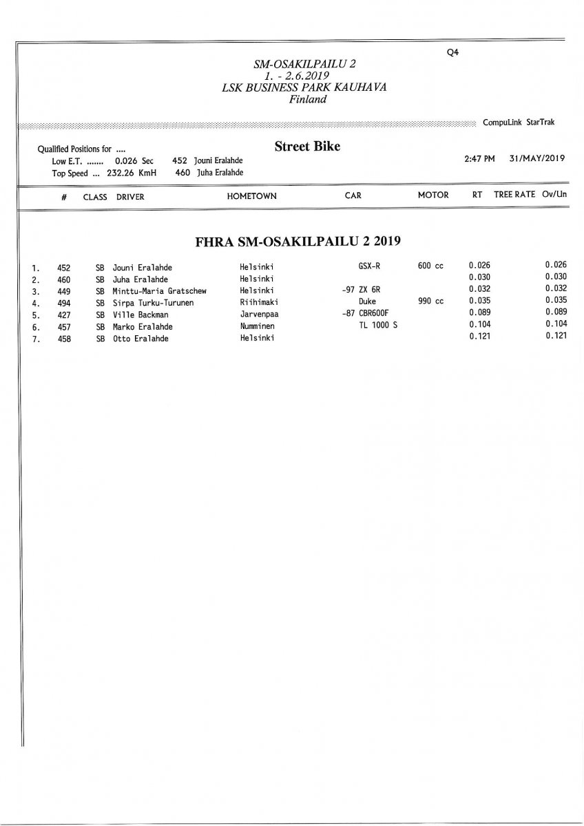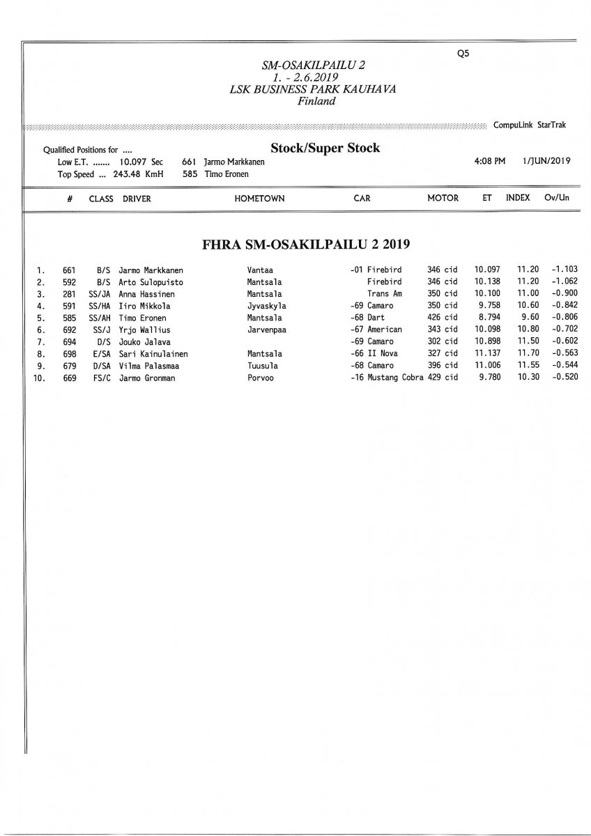 FHRA uutiset Kiihdytysajon SM-osakilpailu 2 & Test & Tune 2019