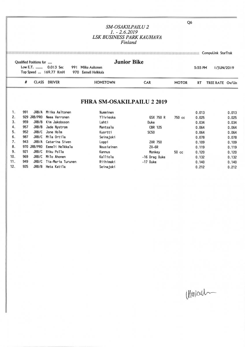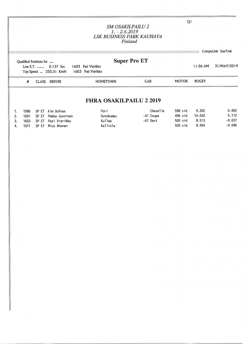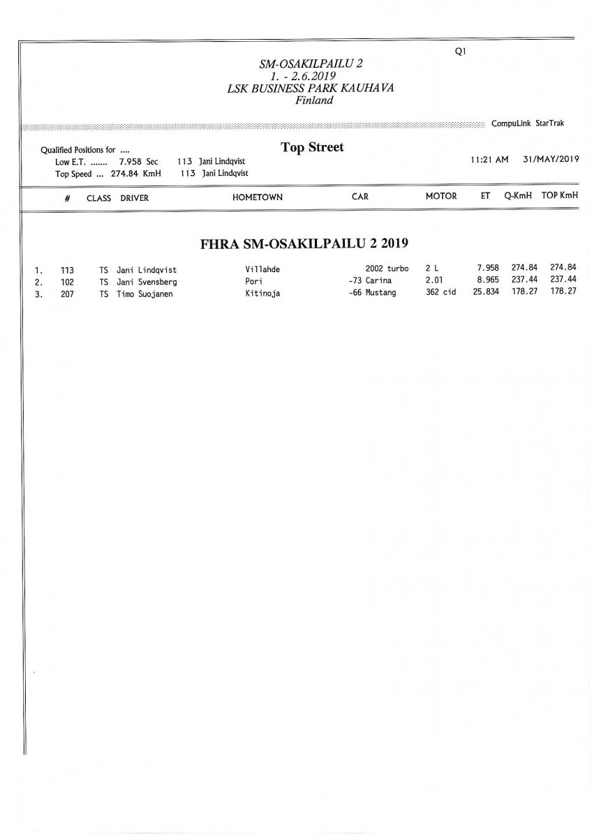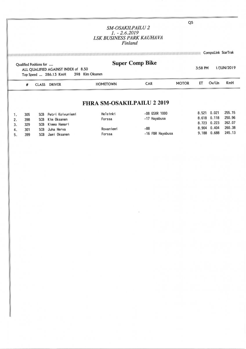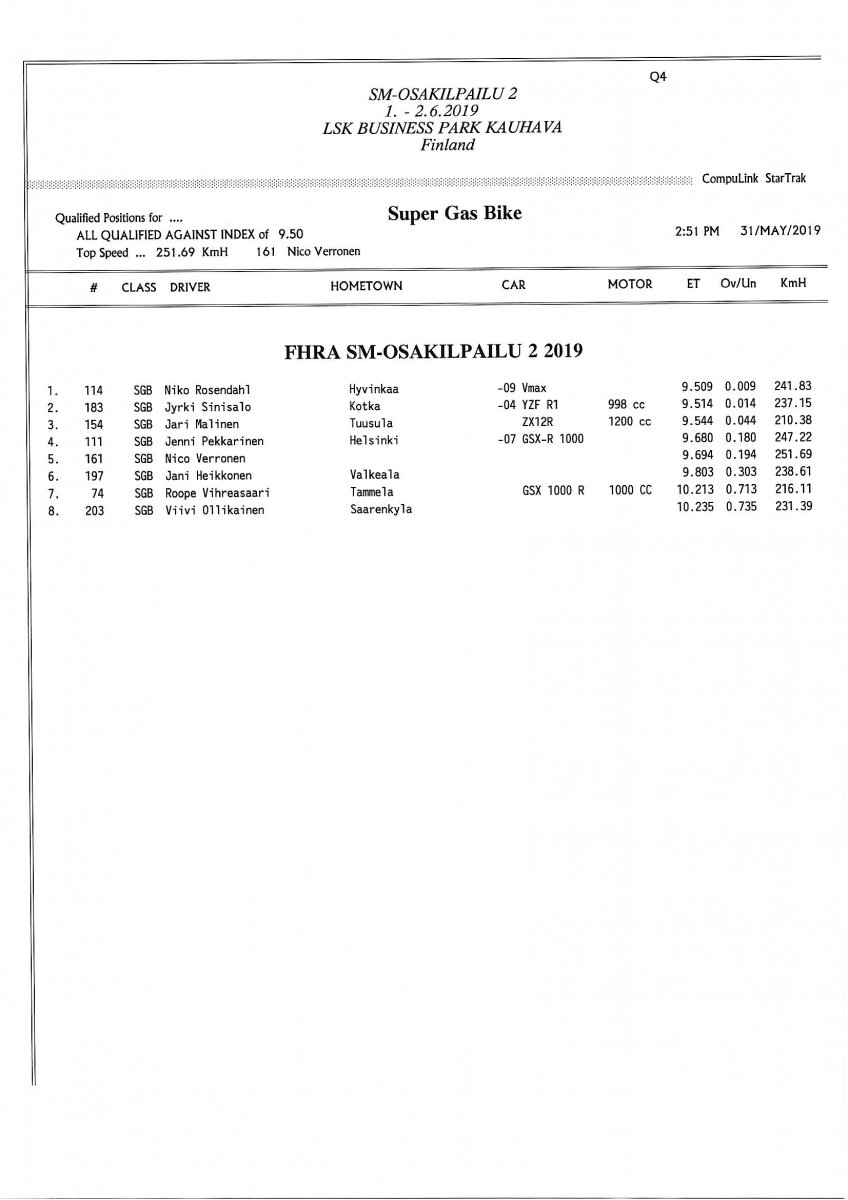FHRA uutiset Kiihdytysajon SM-osakilpailu 2 & Test & Tune 2019