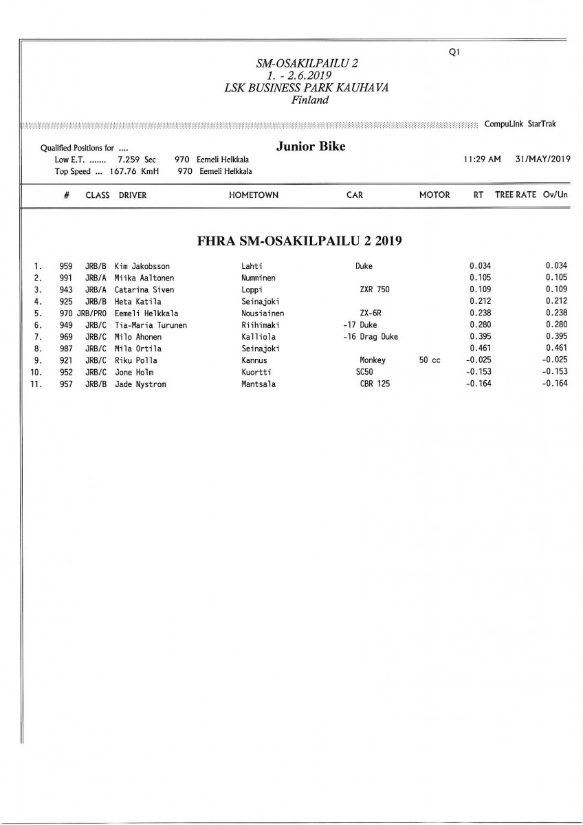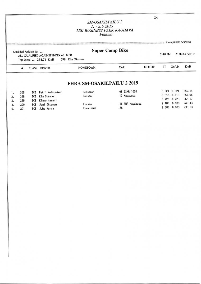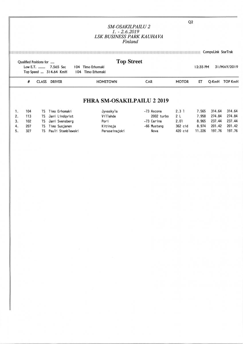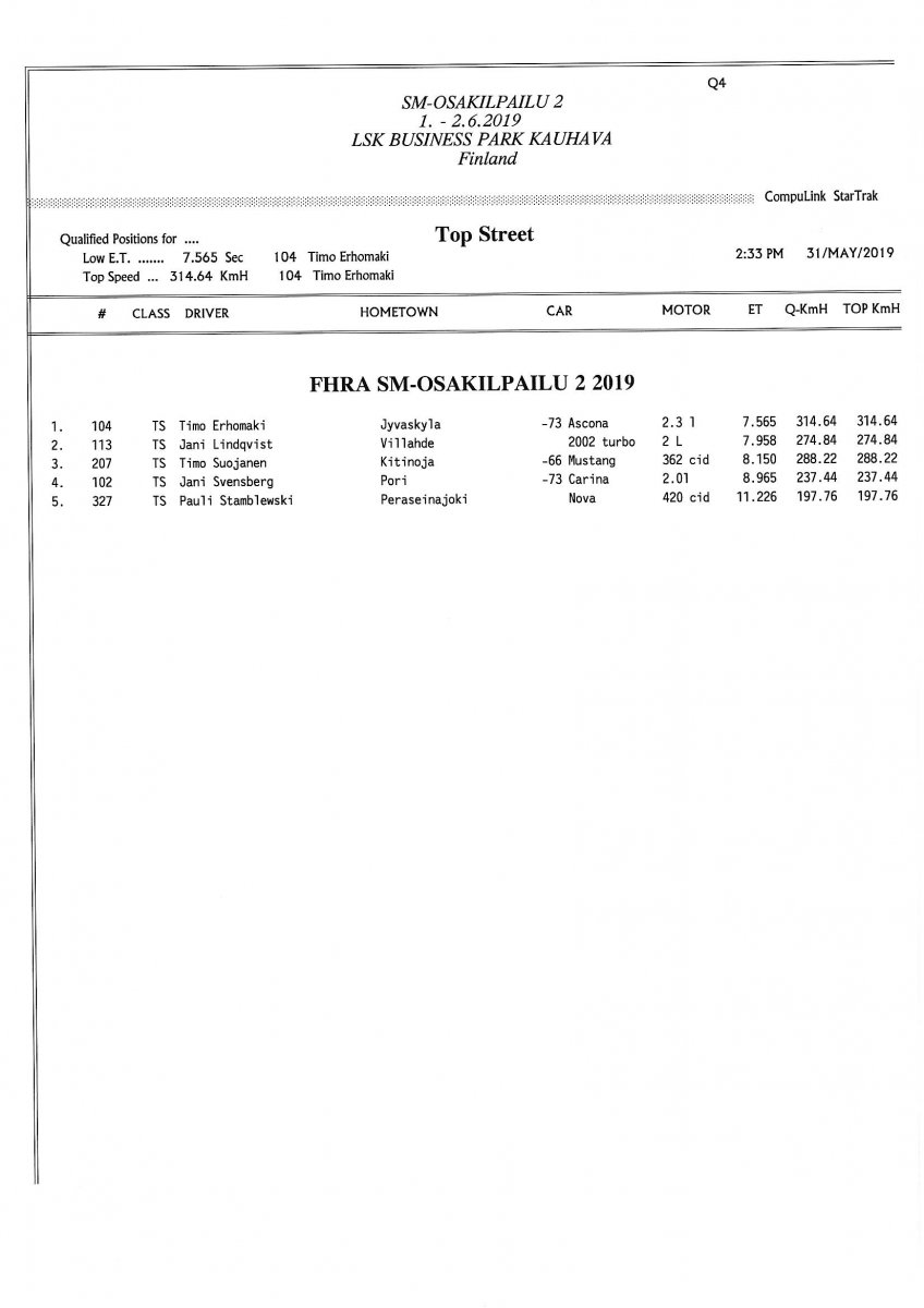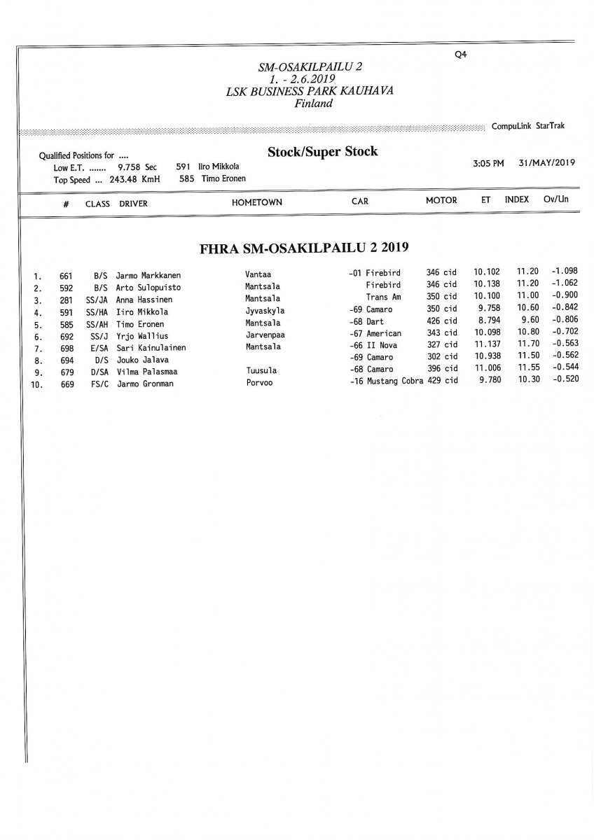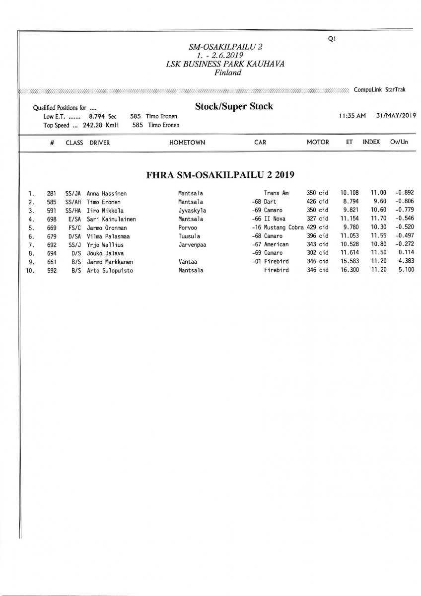 FHRA uutiset Kiihdytysajon SM-osakilpailu 2 & Test & Tune 2019
