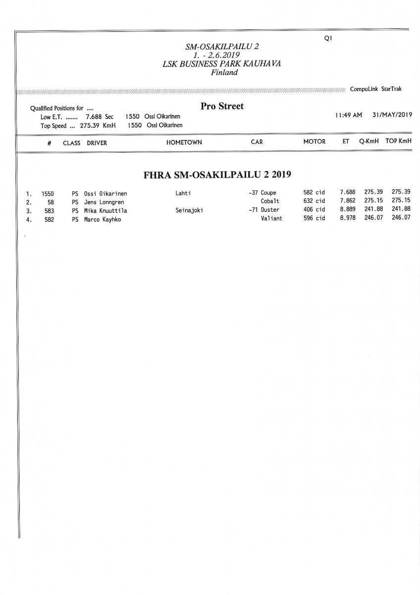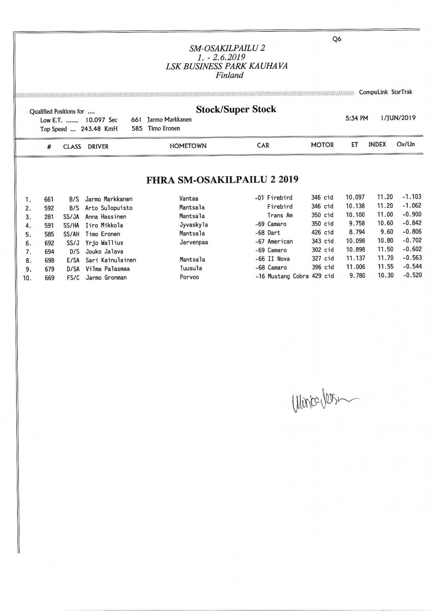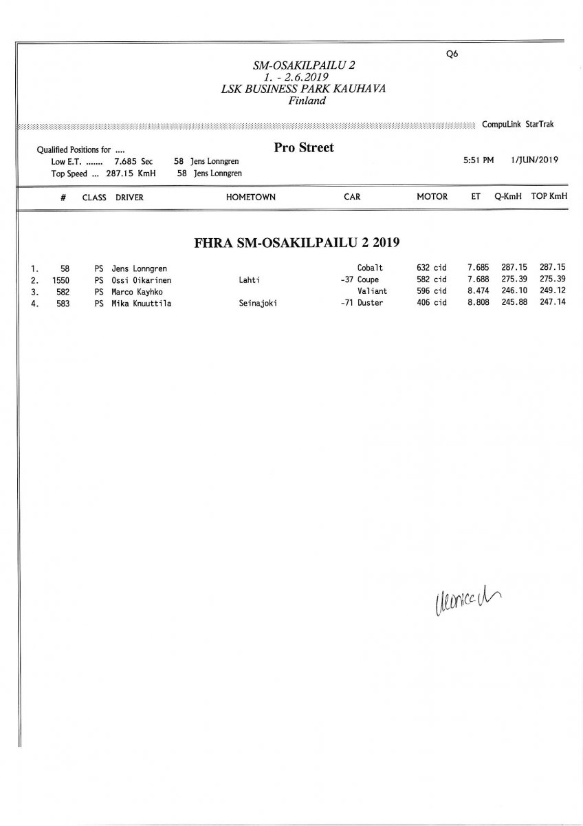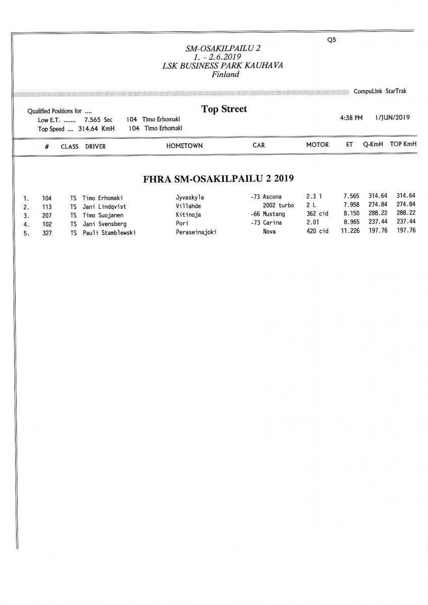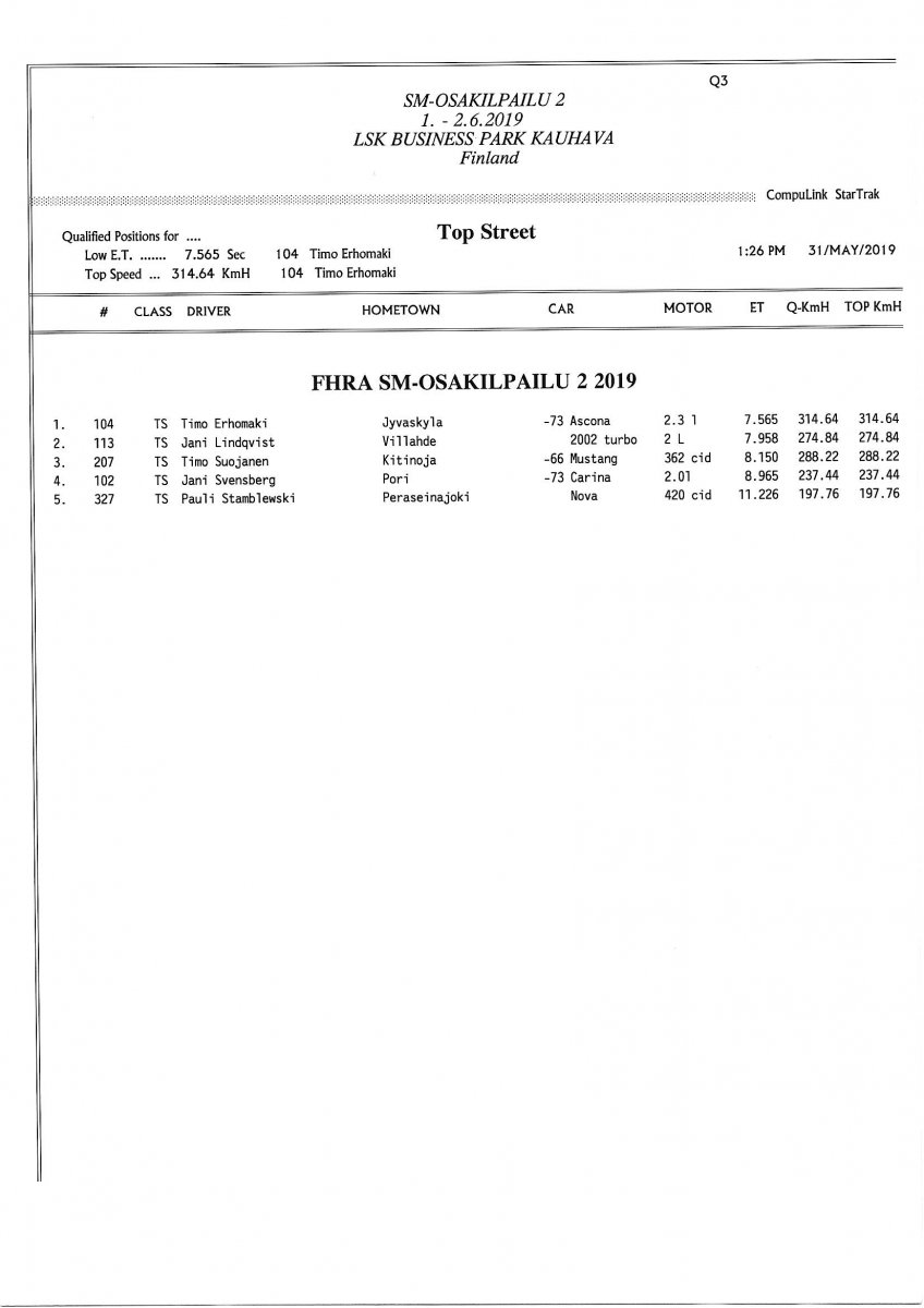 FHRA uutiset Kiihdytysajon SM-osakilpailu 2 & Test & Tune 2019