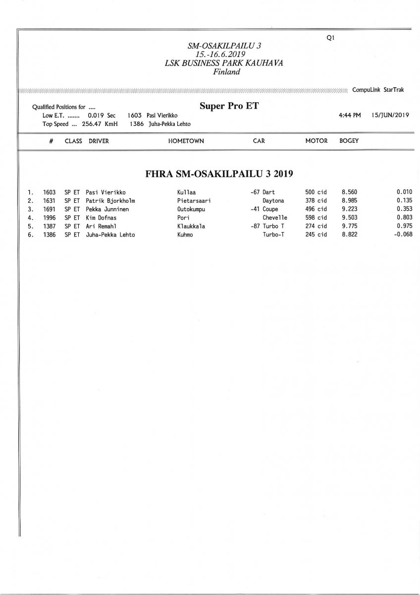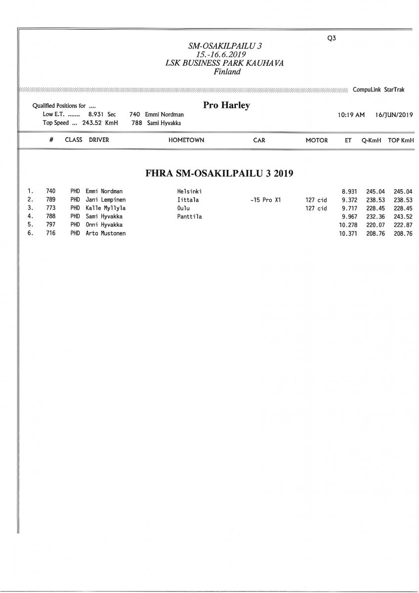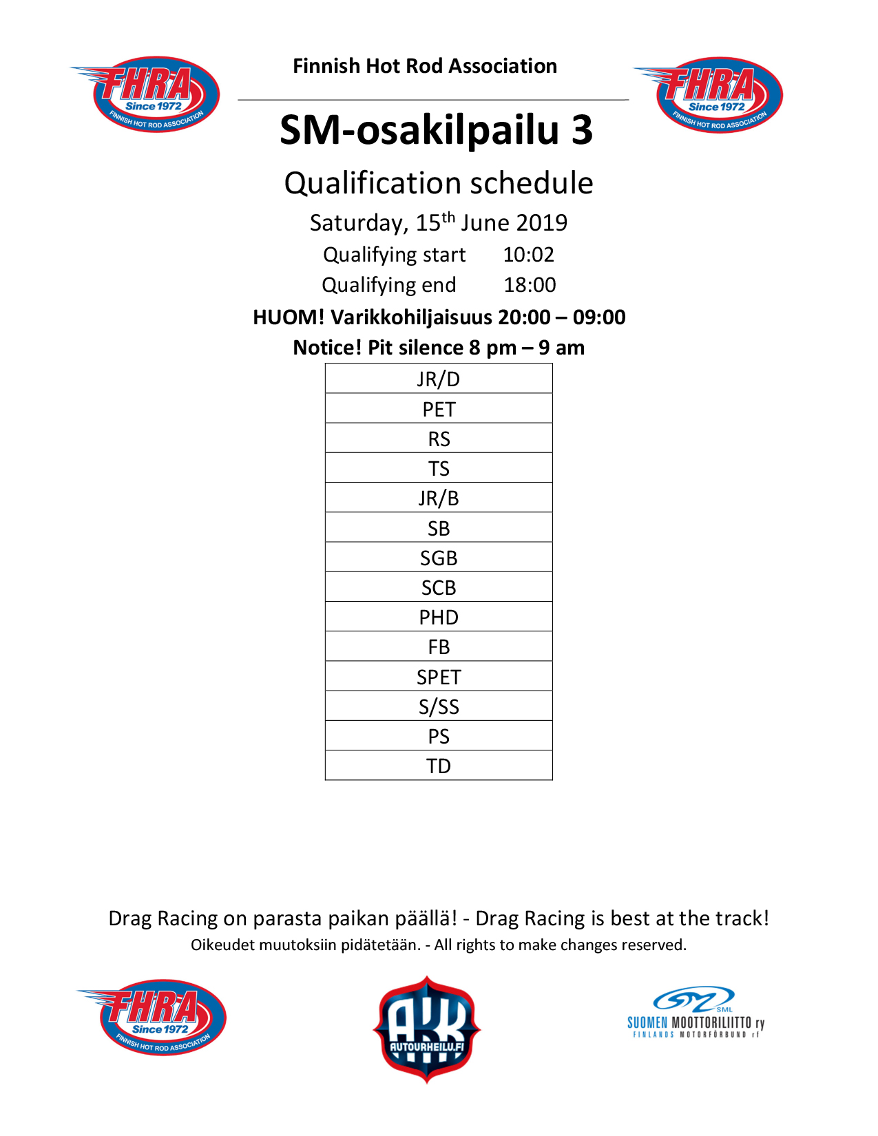 FHRA uutiset Kiihdytysajon SM-osakilpailu 3, Blåkläder Summer Nationals & Test n´Tune 2019