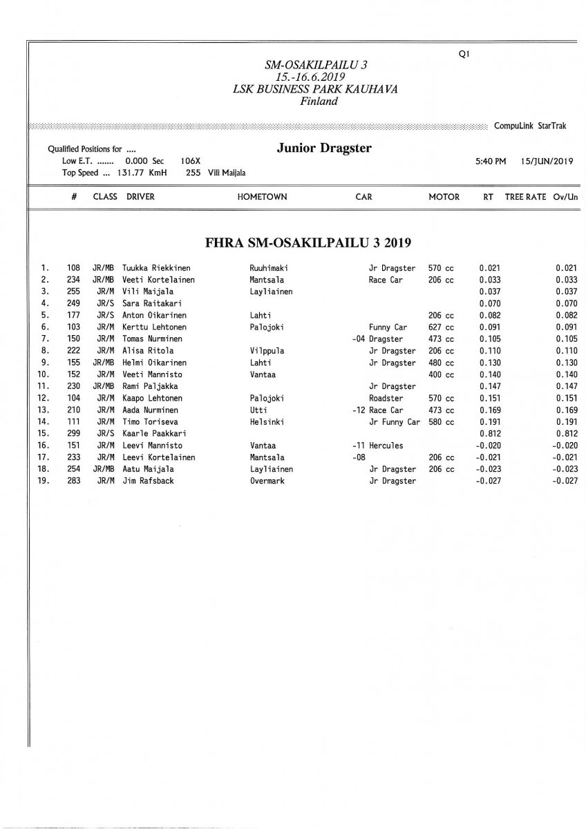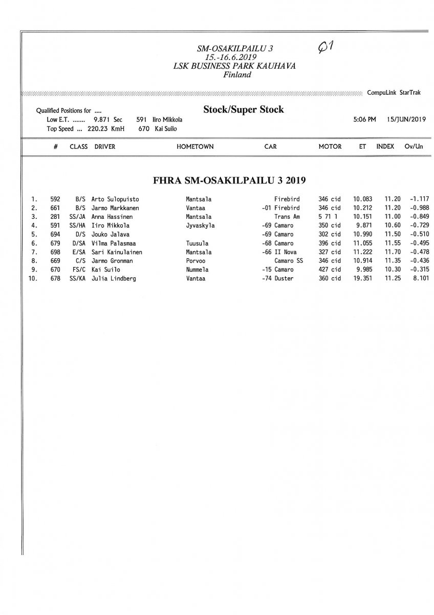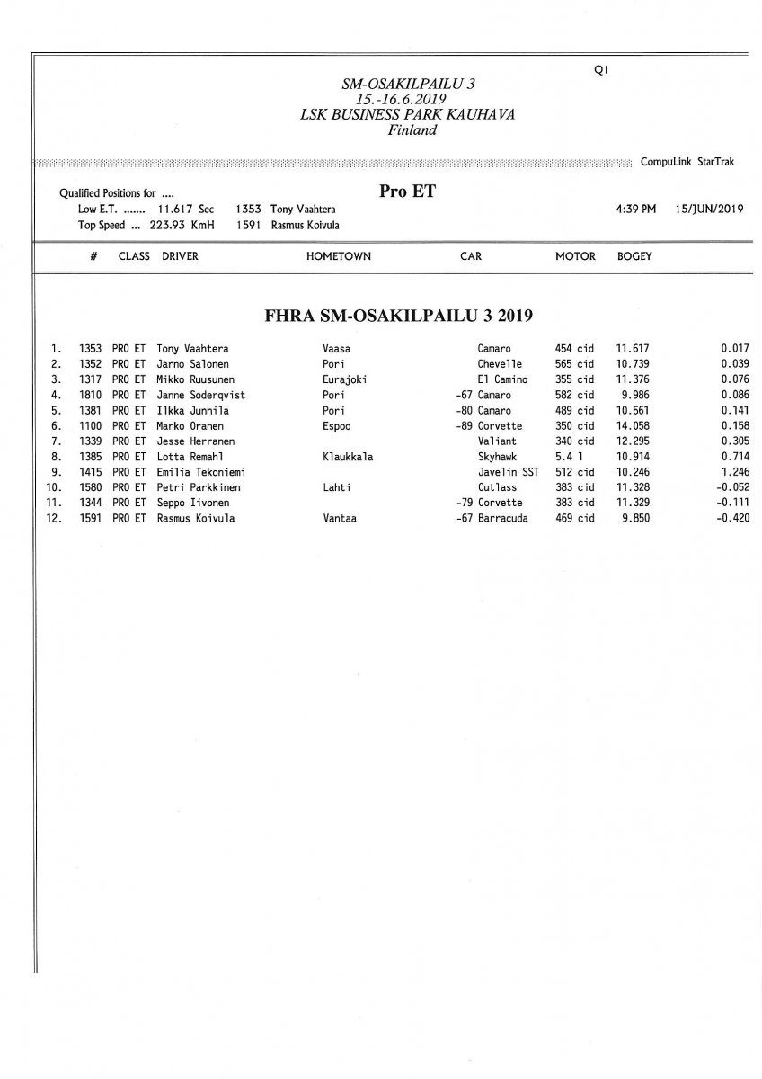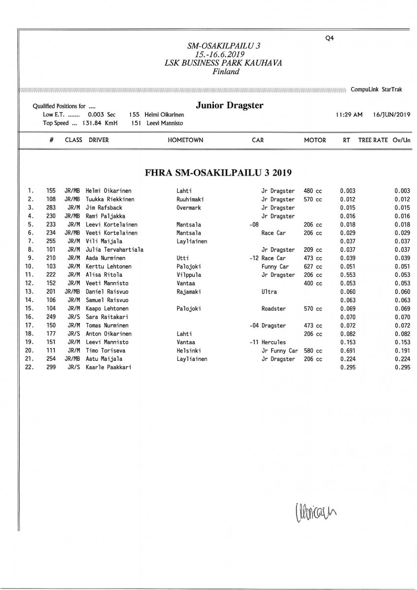 FHRA uutiset Kiihdytysajon SM-osakilpailu 3, Blåkläder Summer Nationals & Test n´Tune 2019