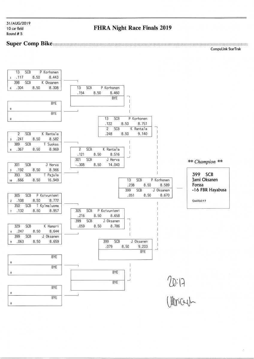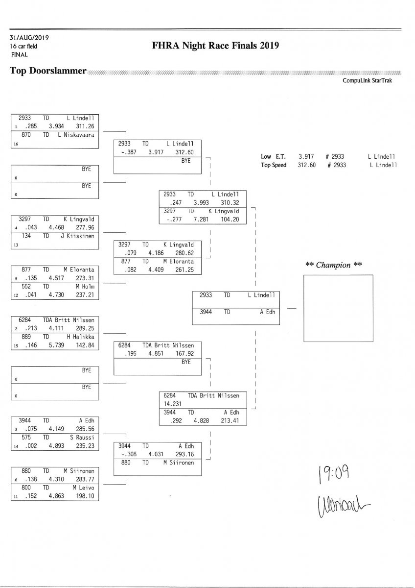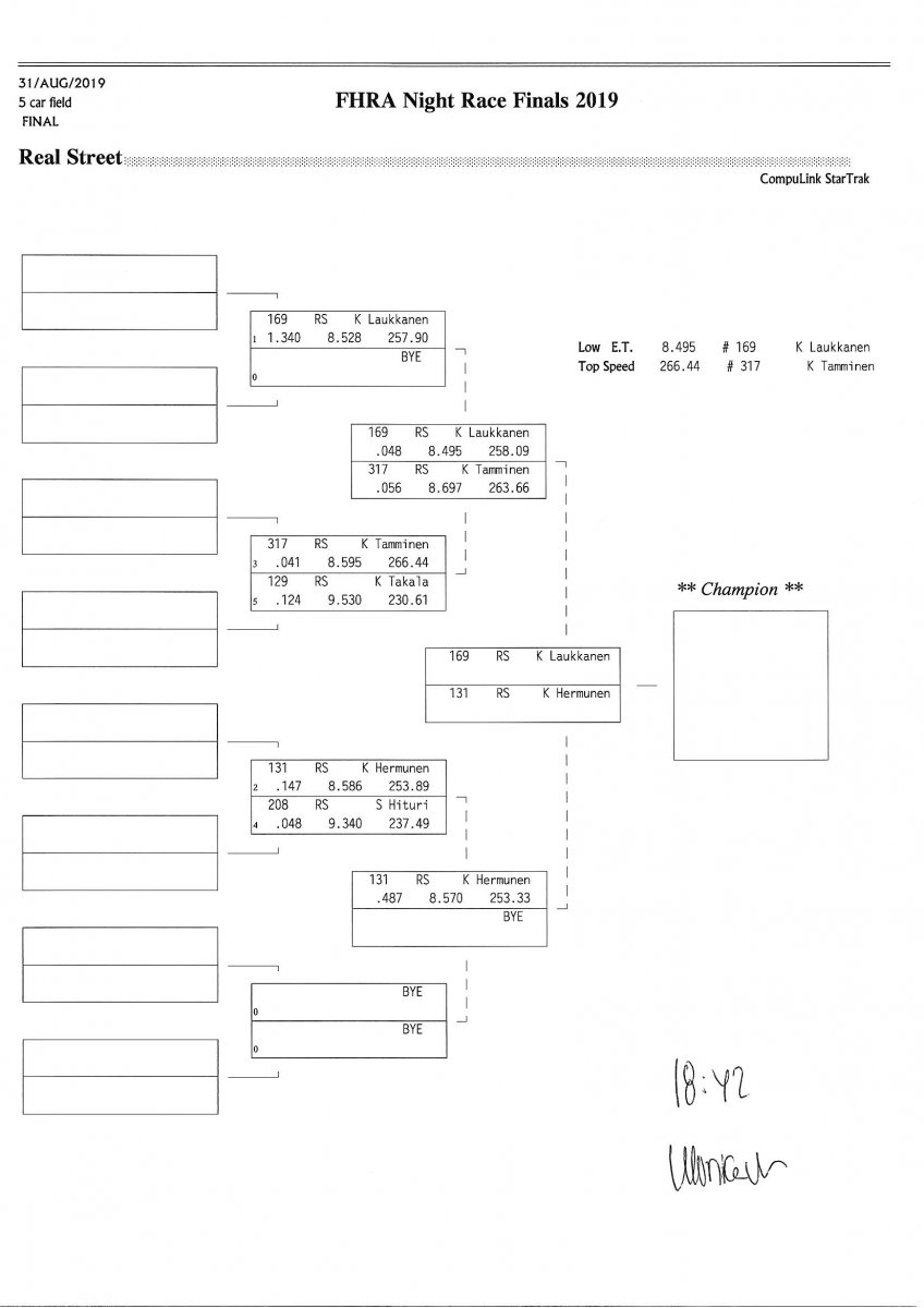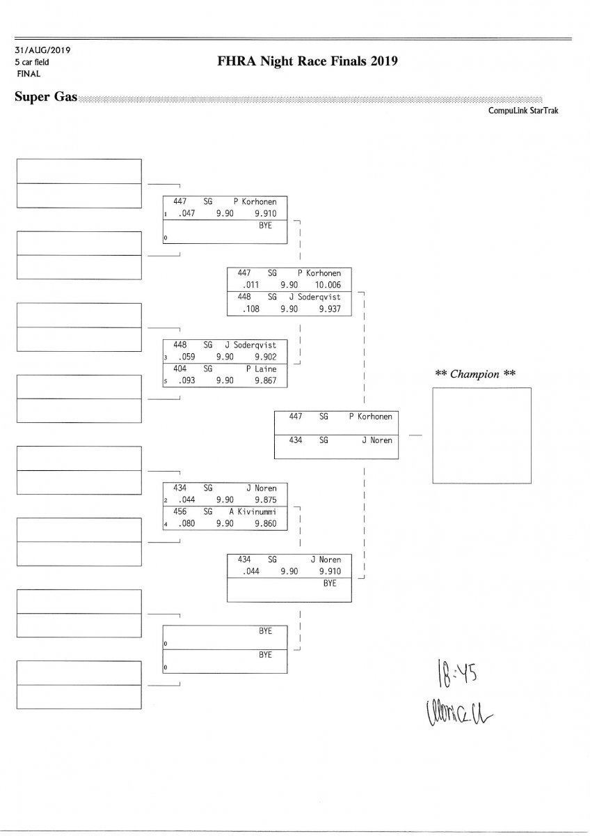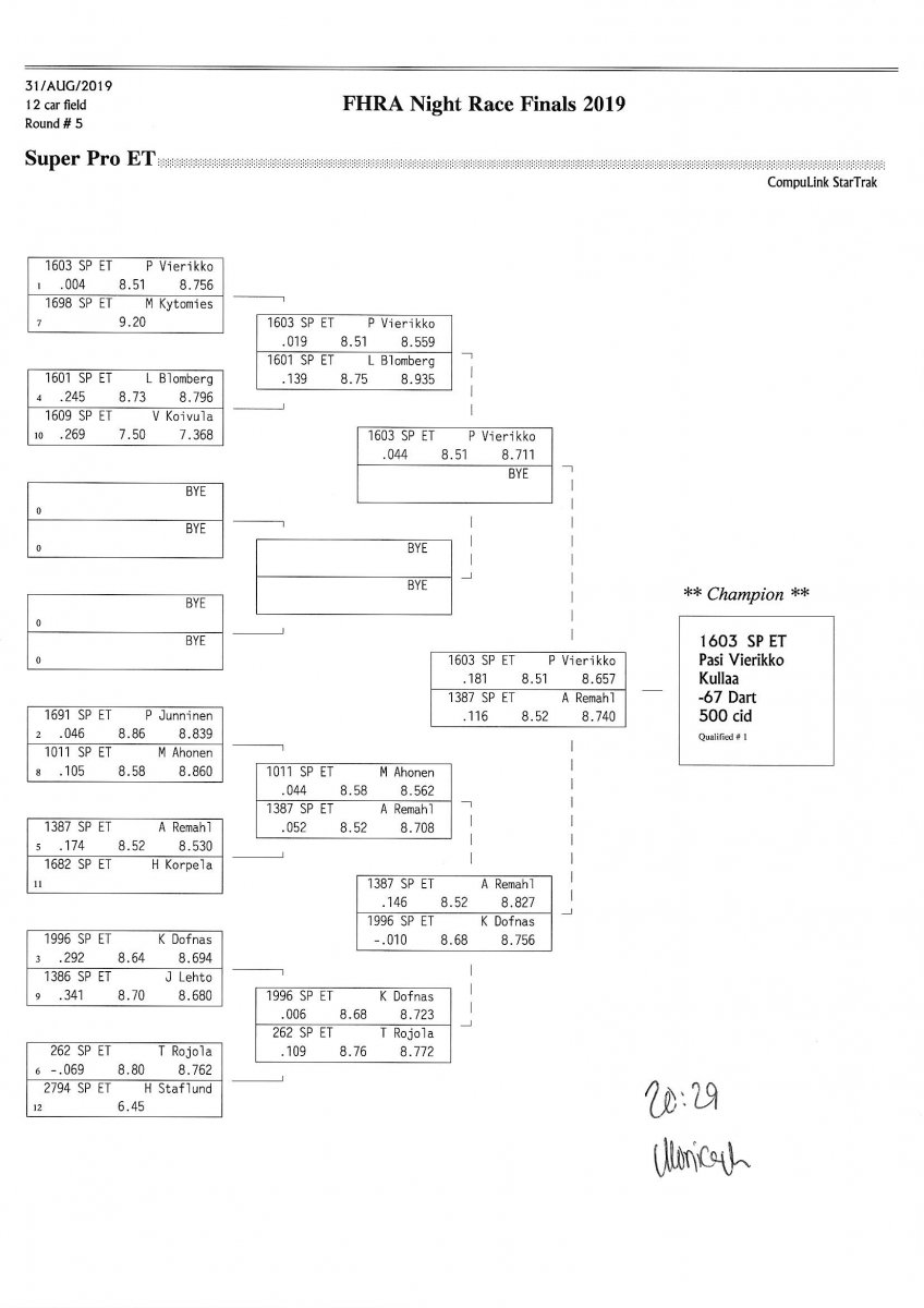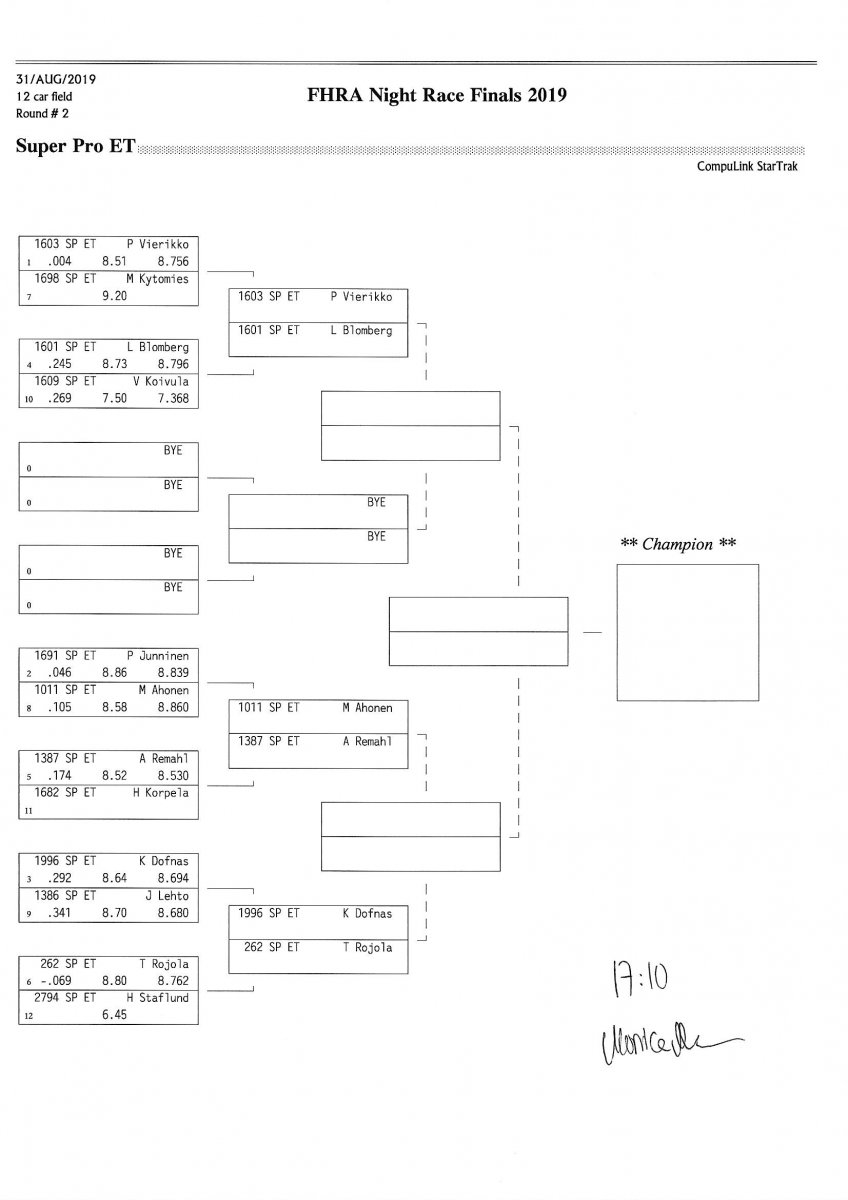 FHRA uutiset Kiihdytysajon SM-osakilpailu 6, FHRA Night Race Finals 2019