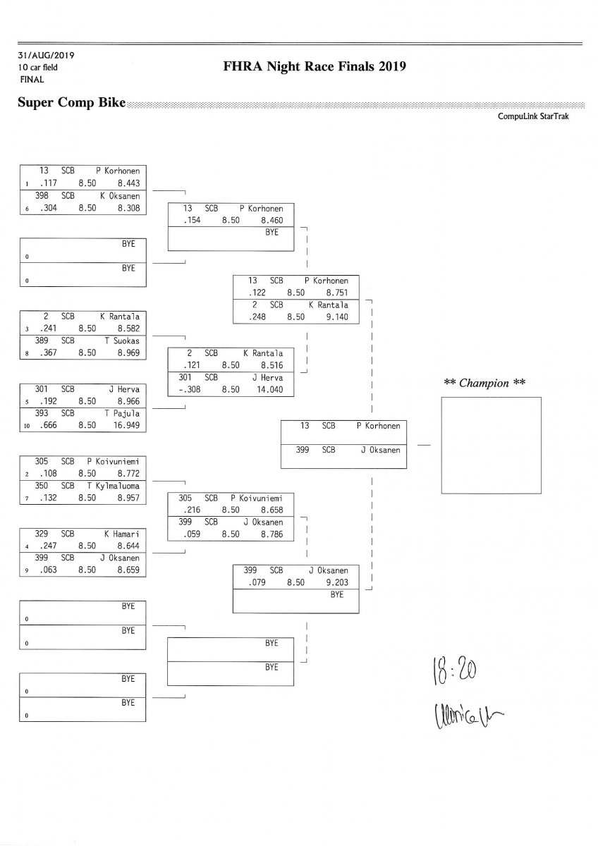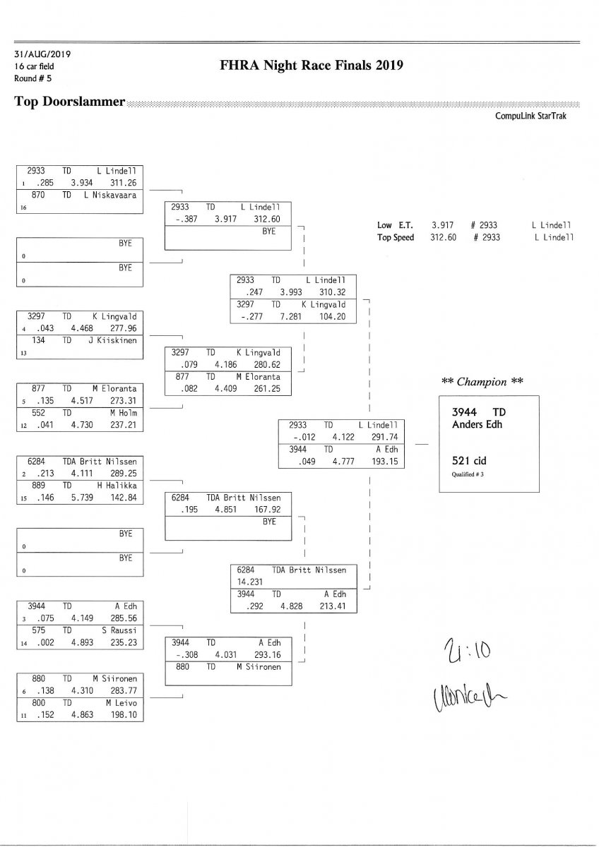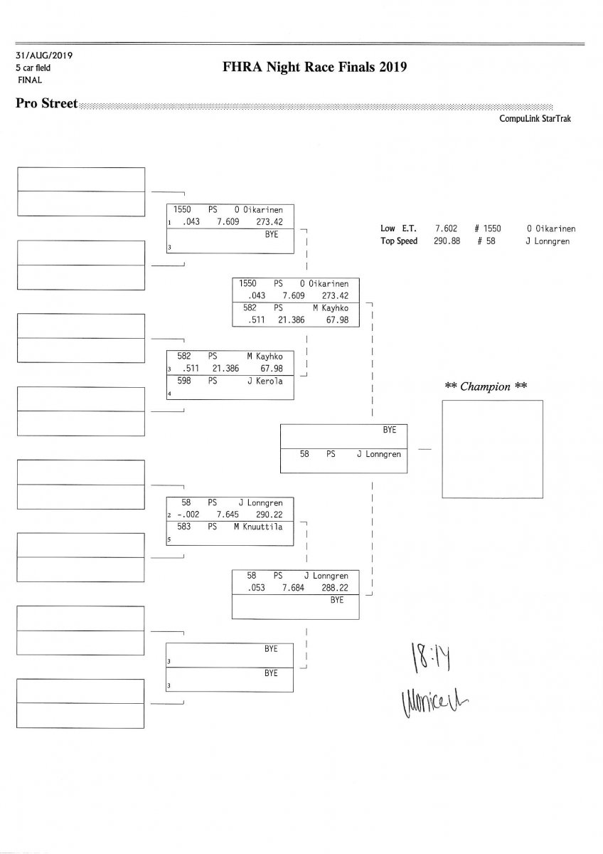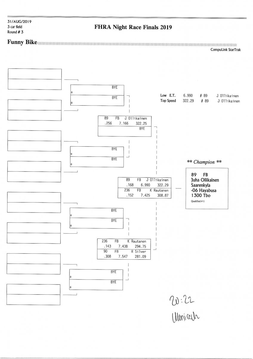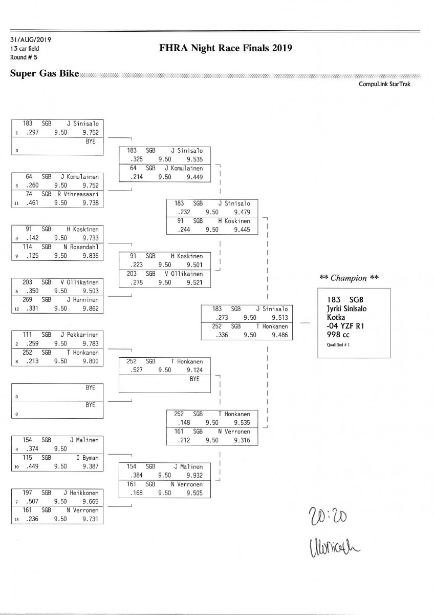 FHRA uutiset Kiihdytysajon SM-osakilpailu 6, FHRA Night Race Finals 2019