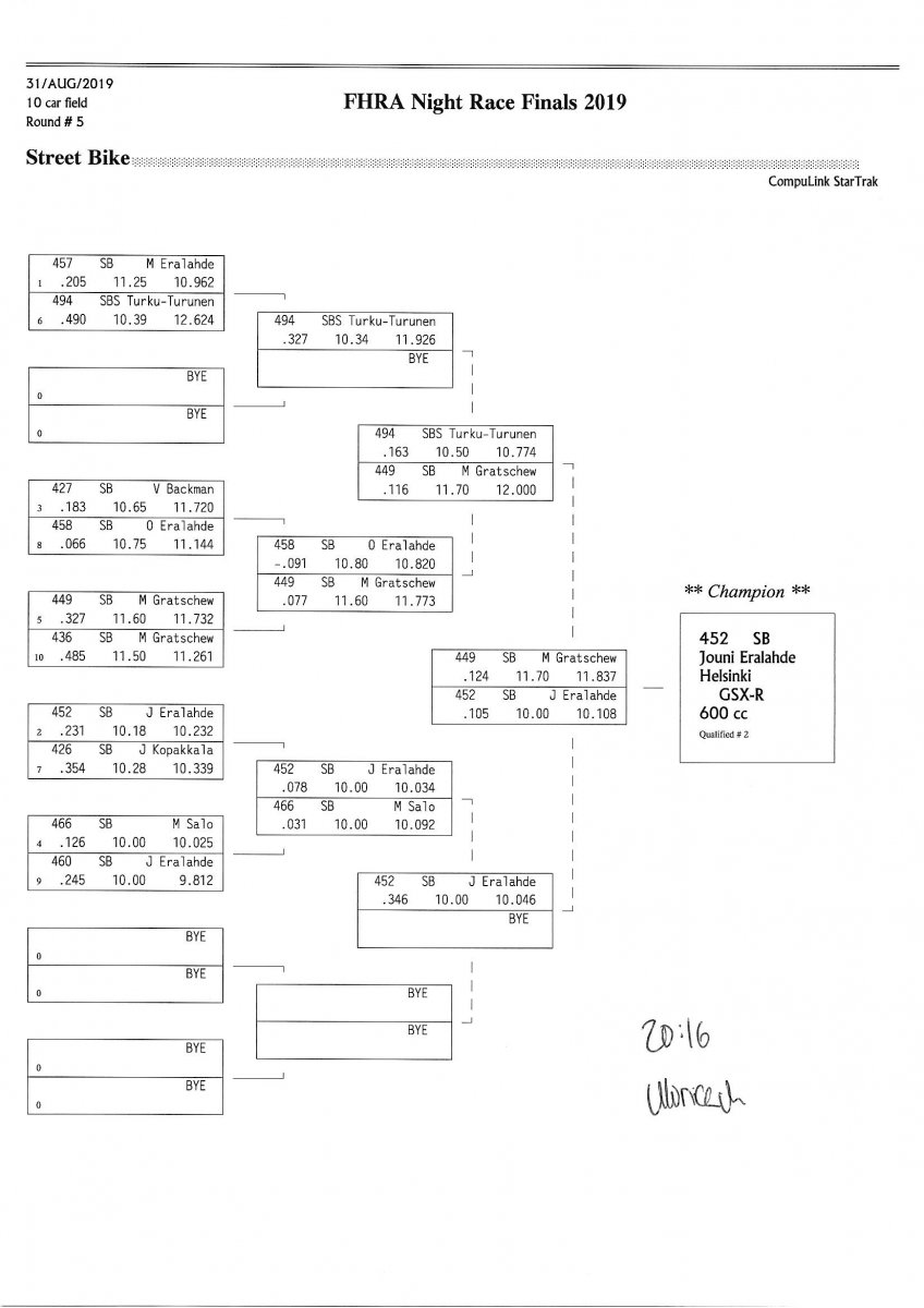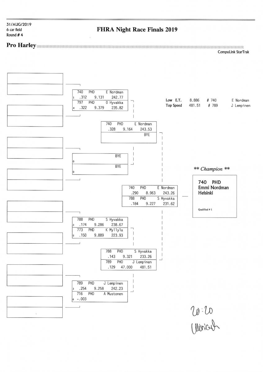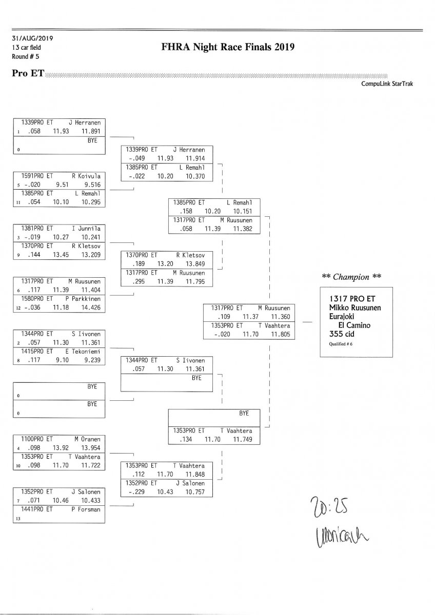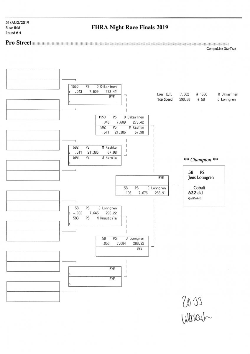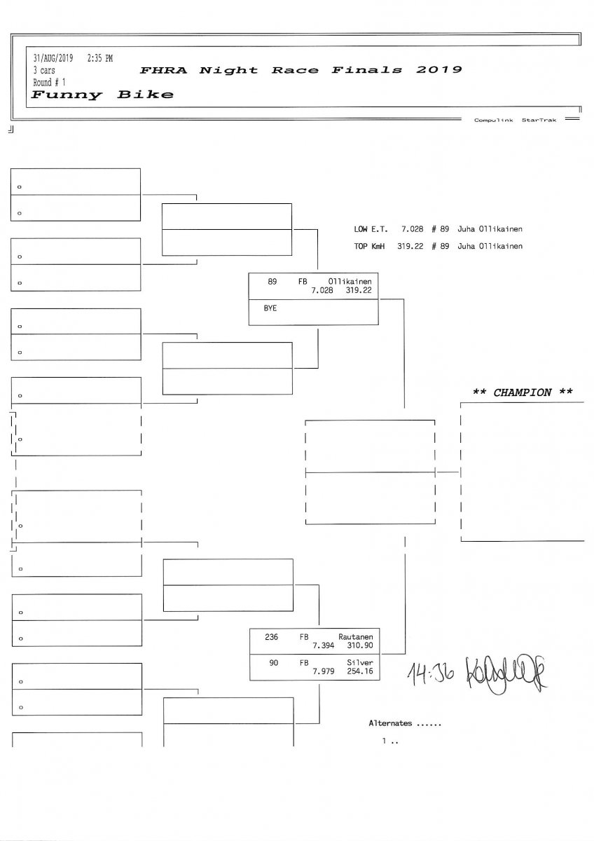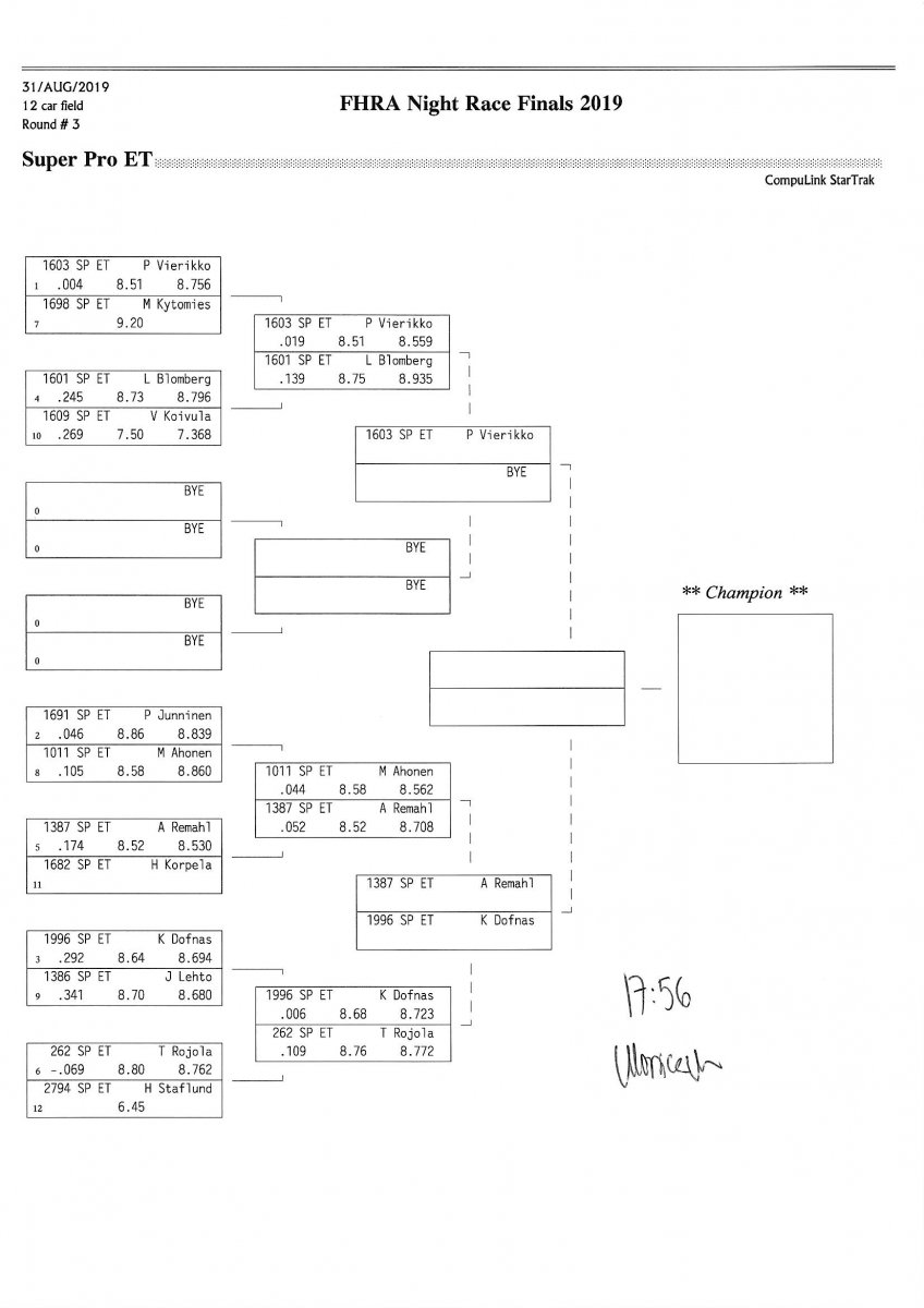 FHRA uutiset Kiihdytysajon SM-osakilpailu 6, FHRA Night Race Finals 2019