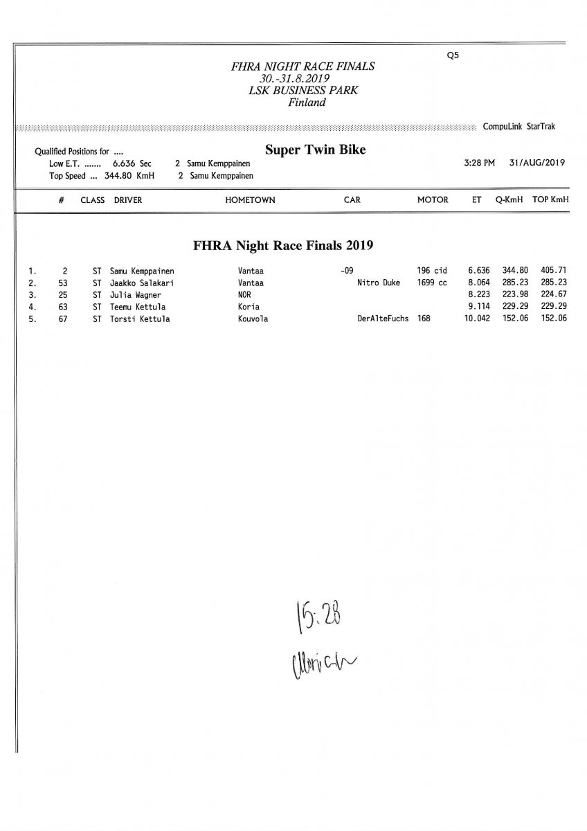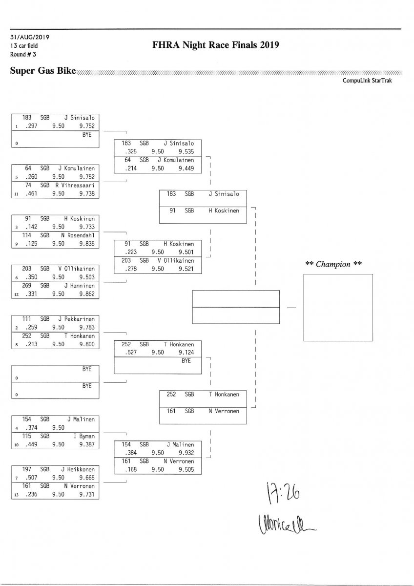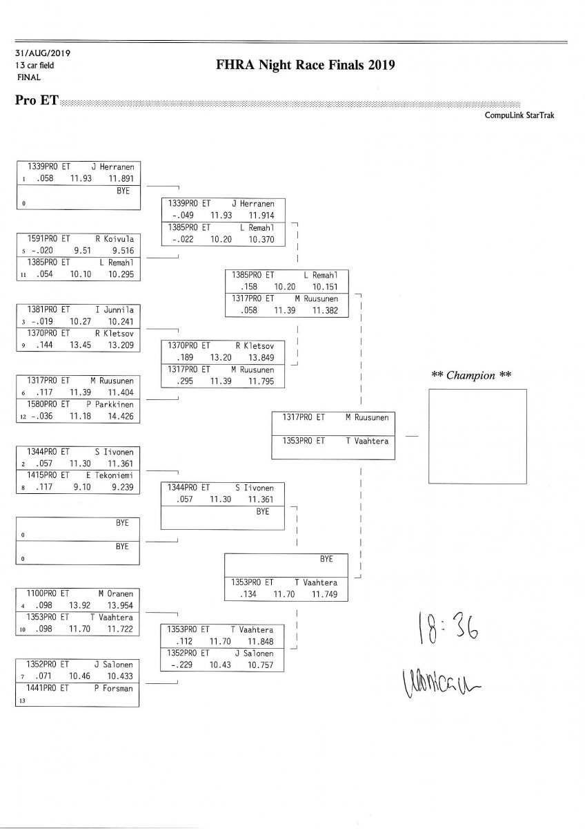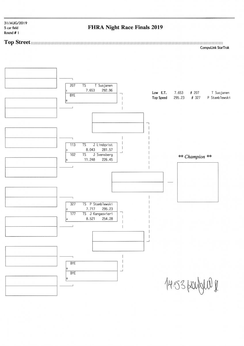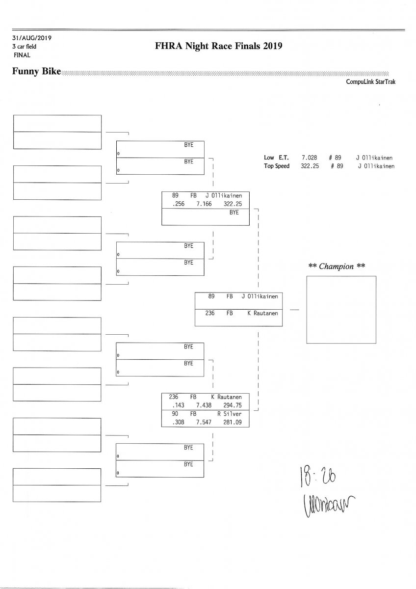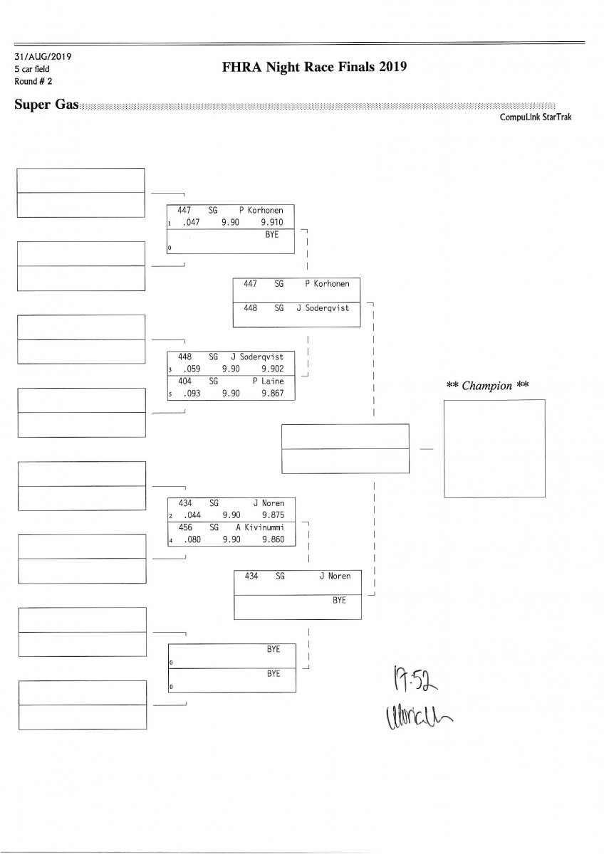 FHRA uutiset Kiihdytysajon SM-osakilpailu 6, FHRA Night Race Finals 2019