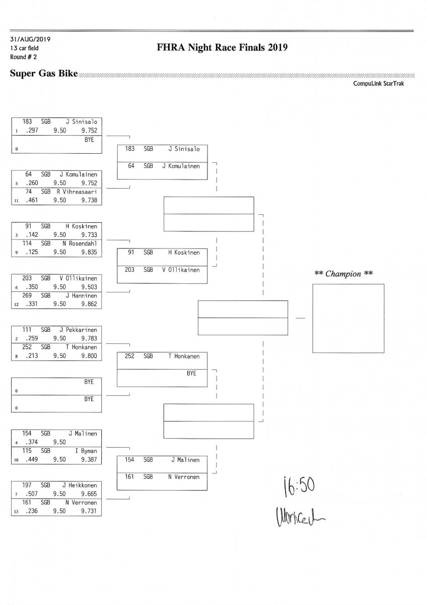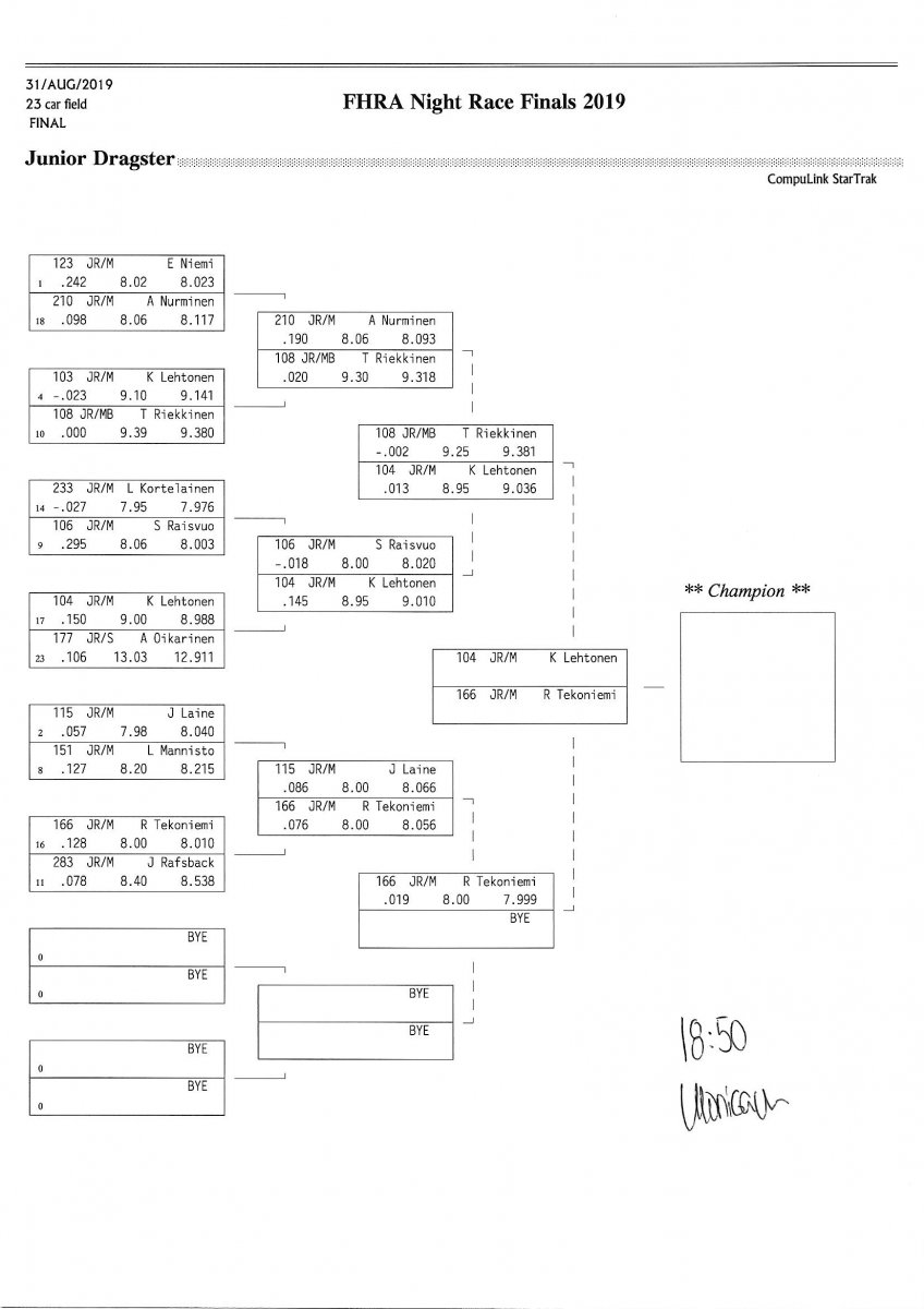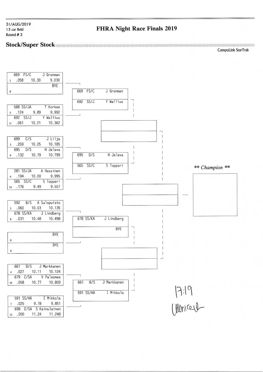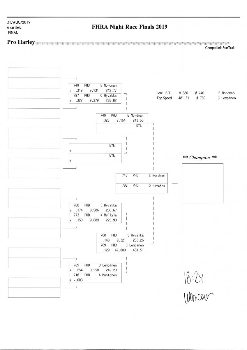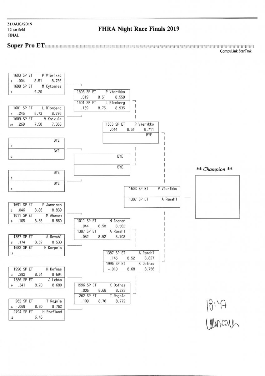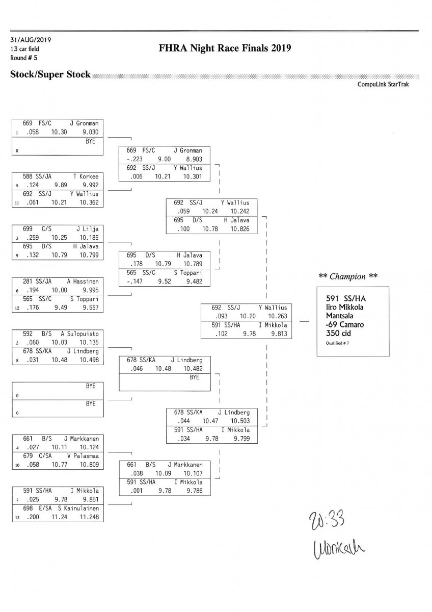 FHRA uutiset Kiihdytysajon SM-osakilpailu 6, FHRA Night Race Finals 2019