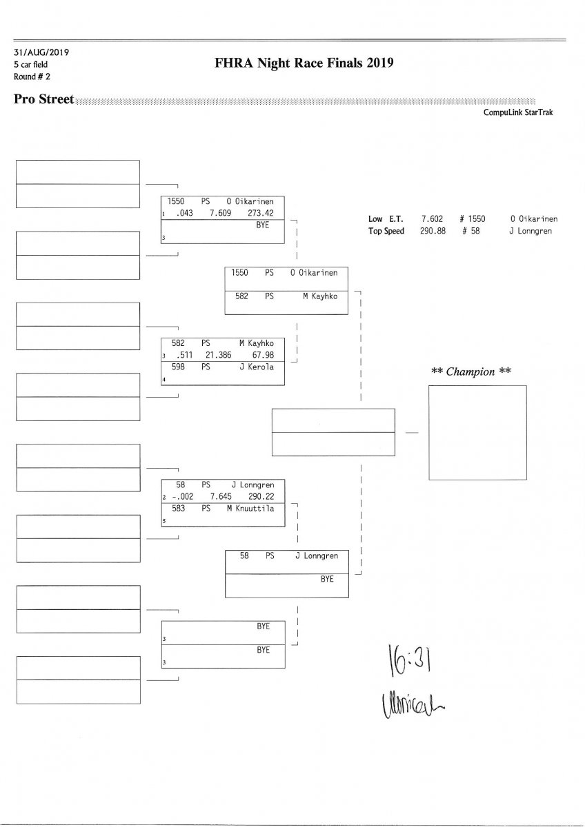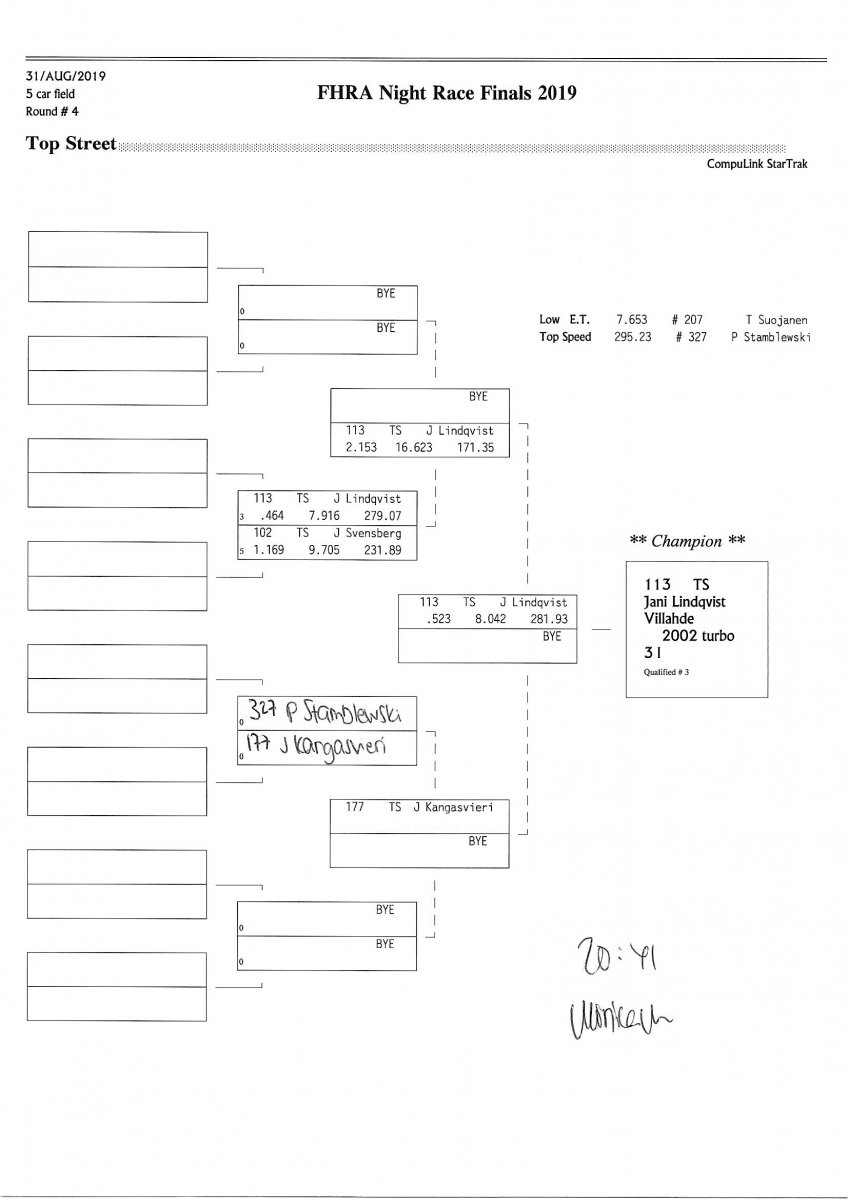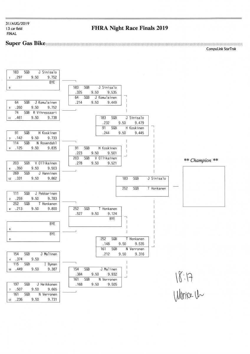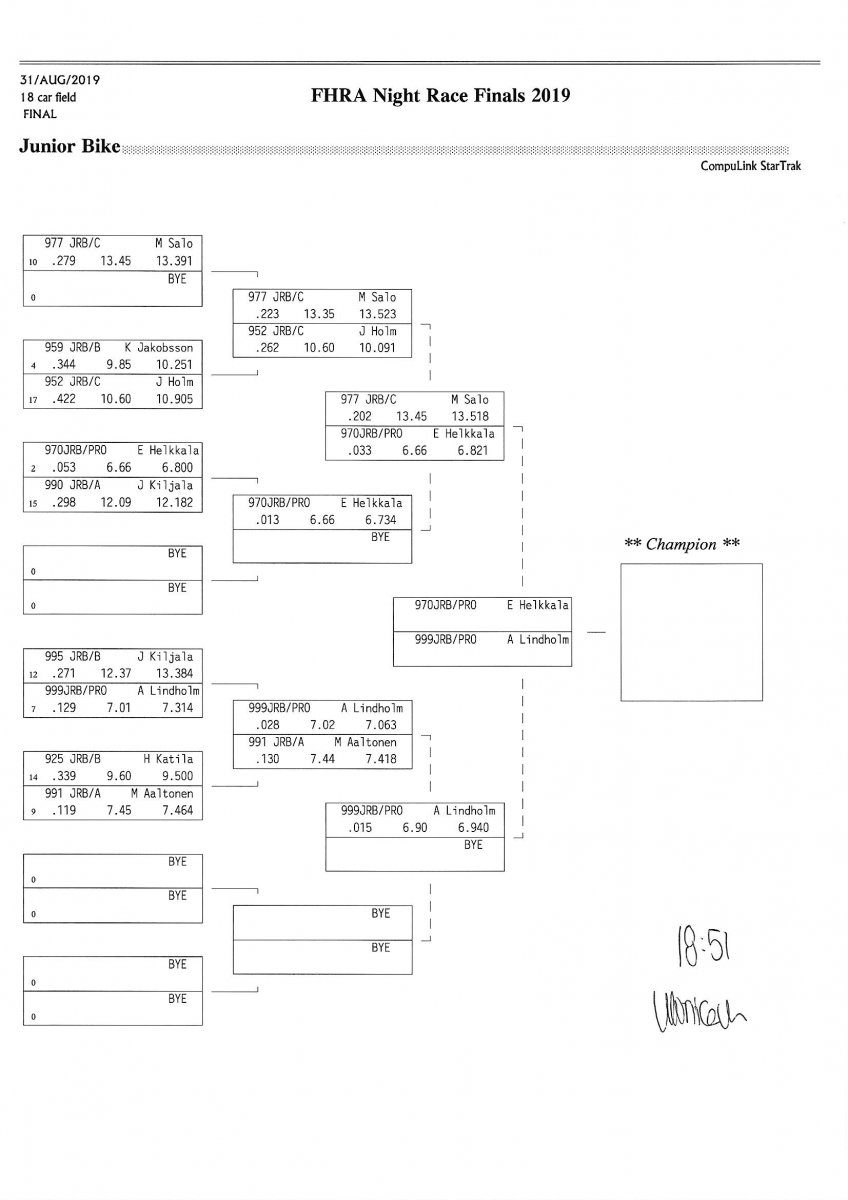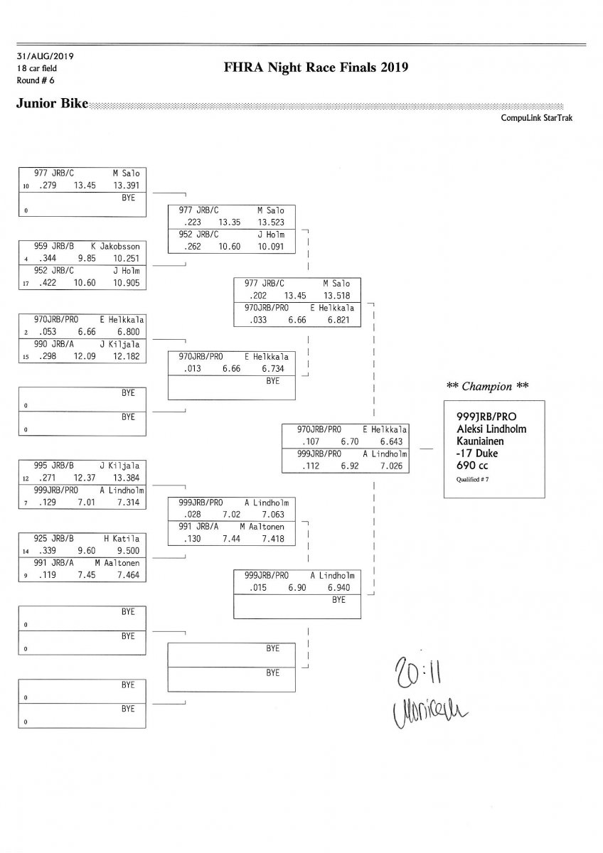 FHRA uutiset Kiihdytysajon SM-osakilpailu 6, FHRA Night Race Finals 2019