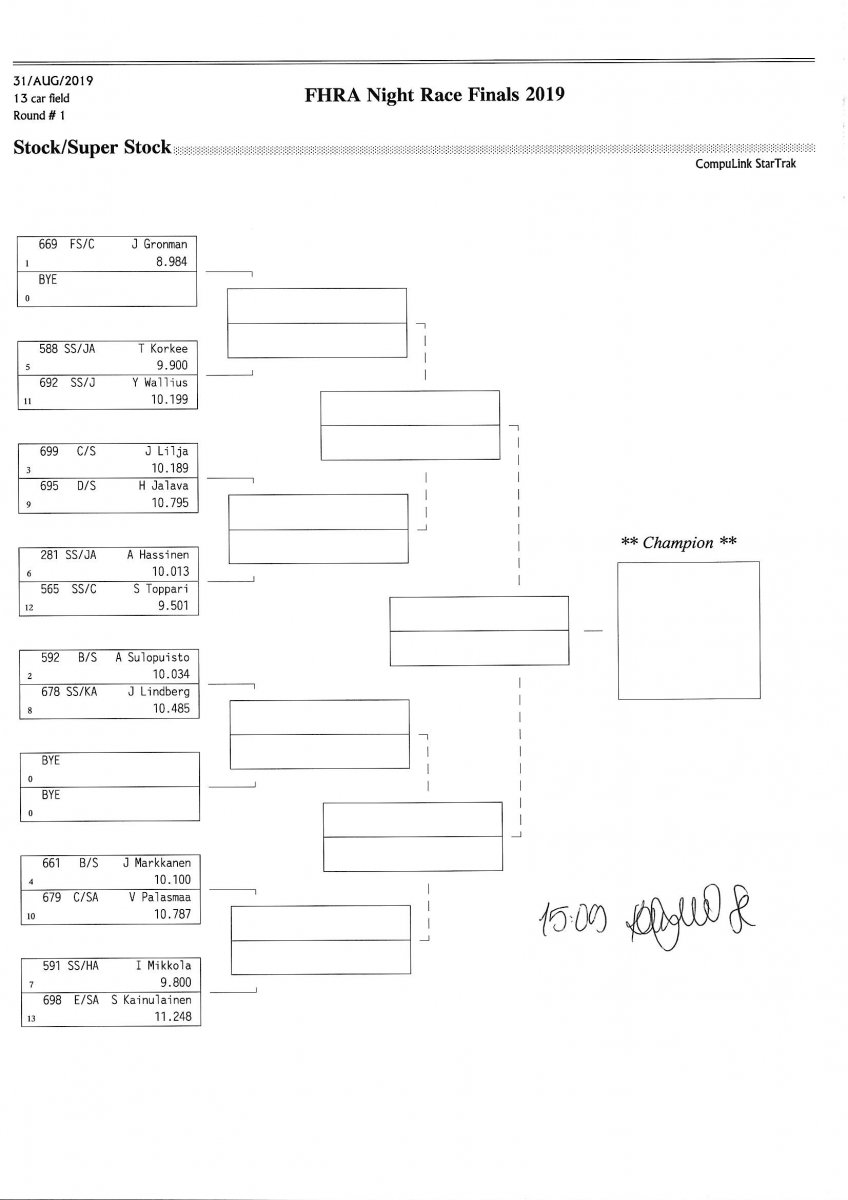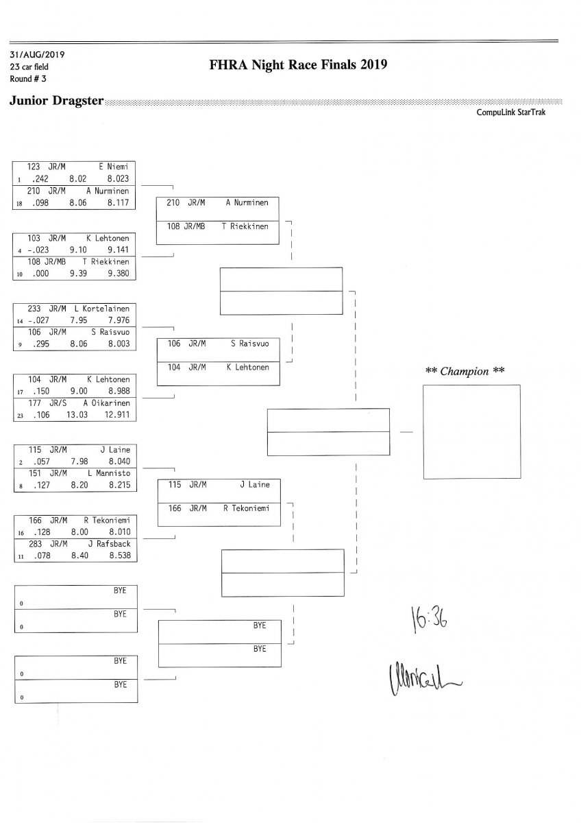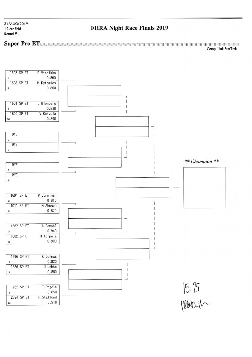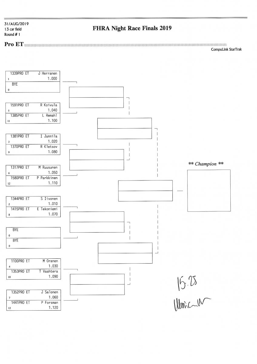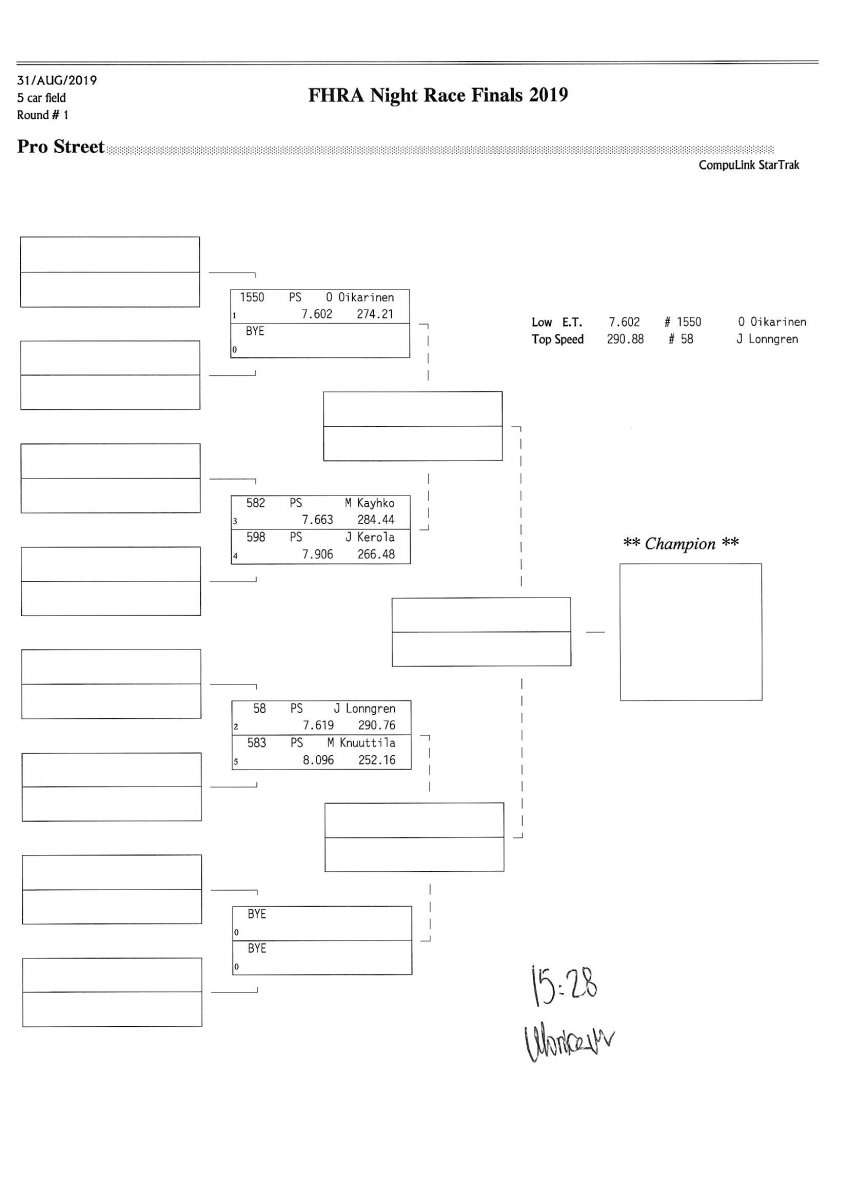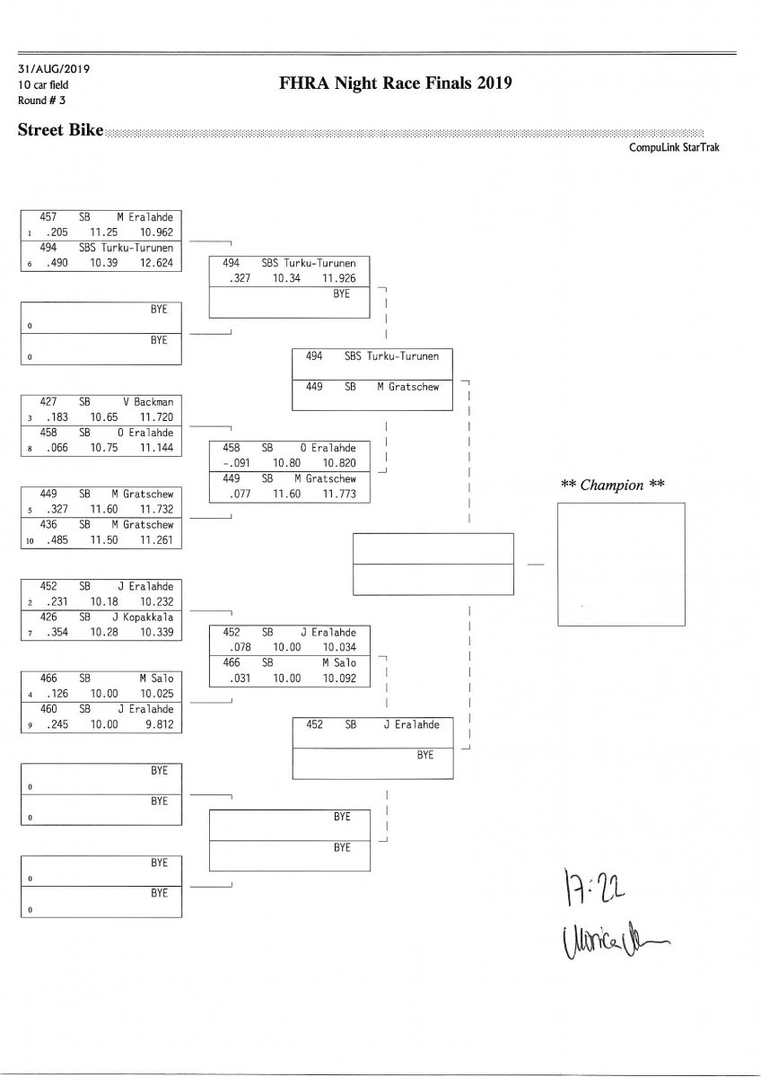 FHRA uutiset Kiihdytysajon SM-osakilpailu 6, FHRA Night Race Finals 2019