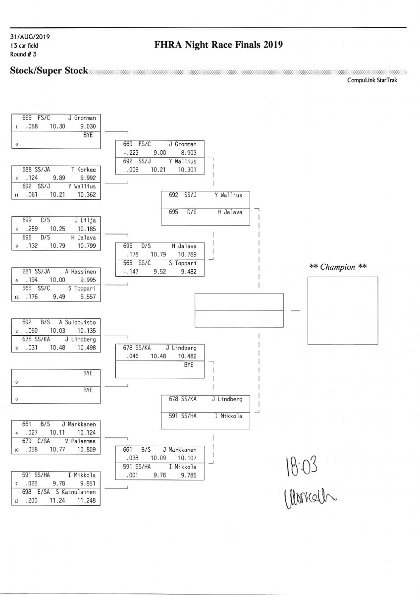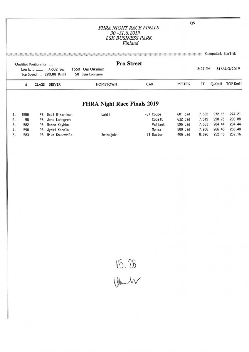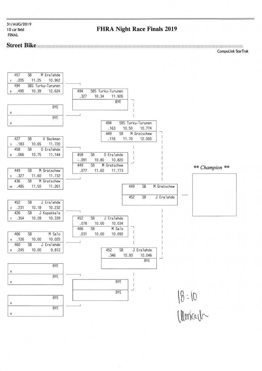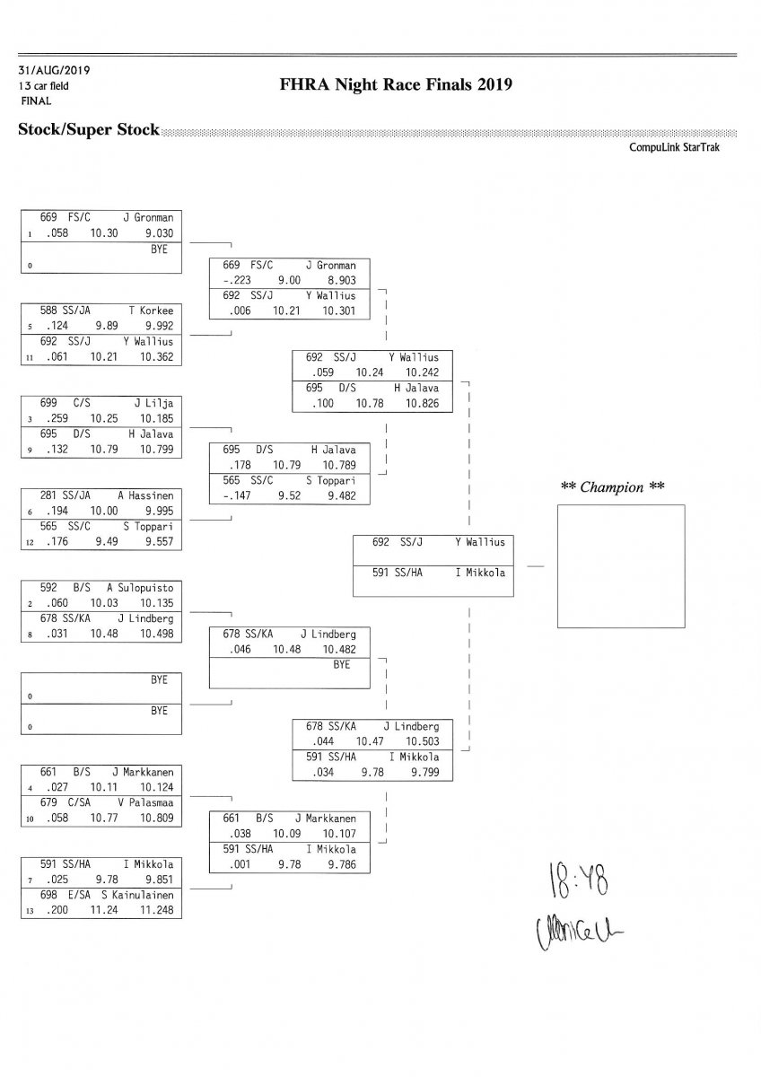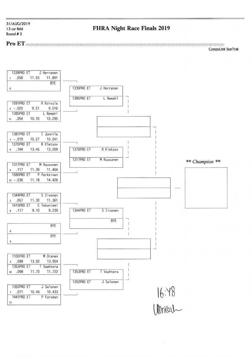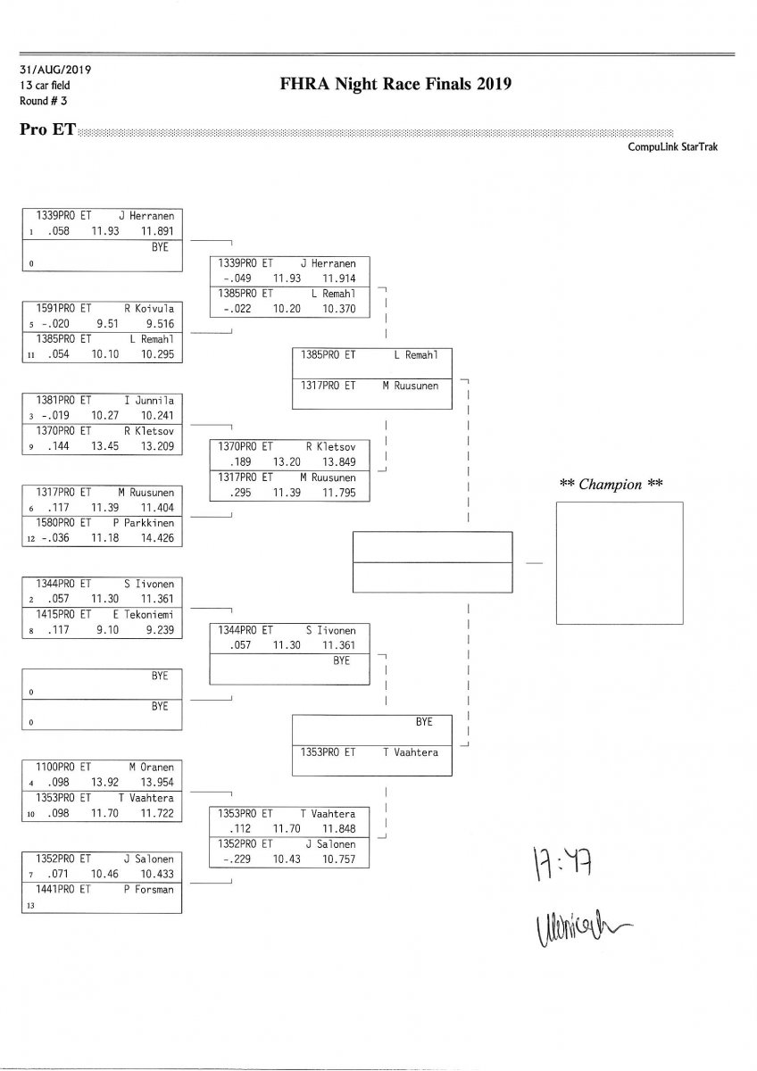 FHRA uutiset Kiihdytysajon SM-osakilpailu 6, FHRA Night Race Finals 2019