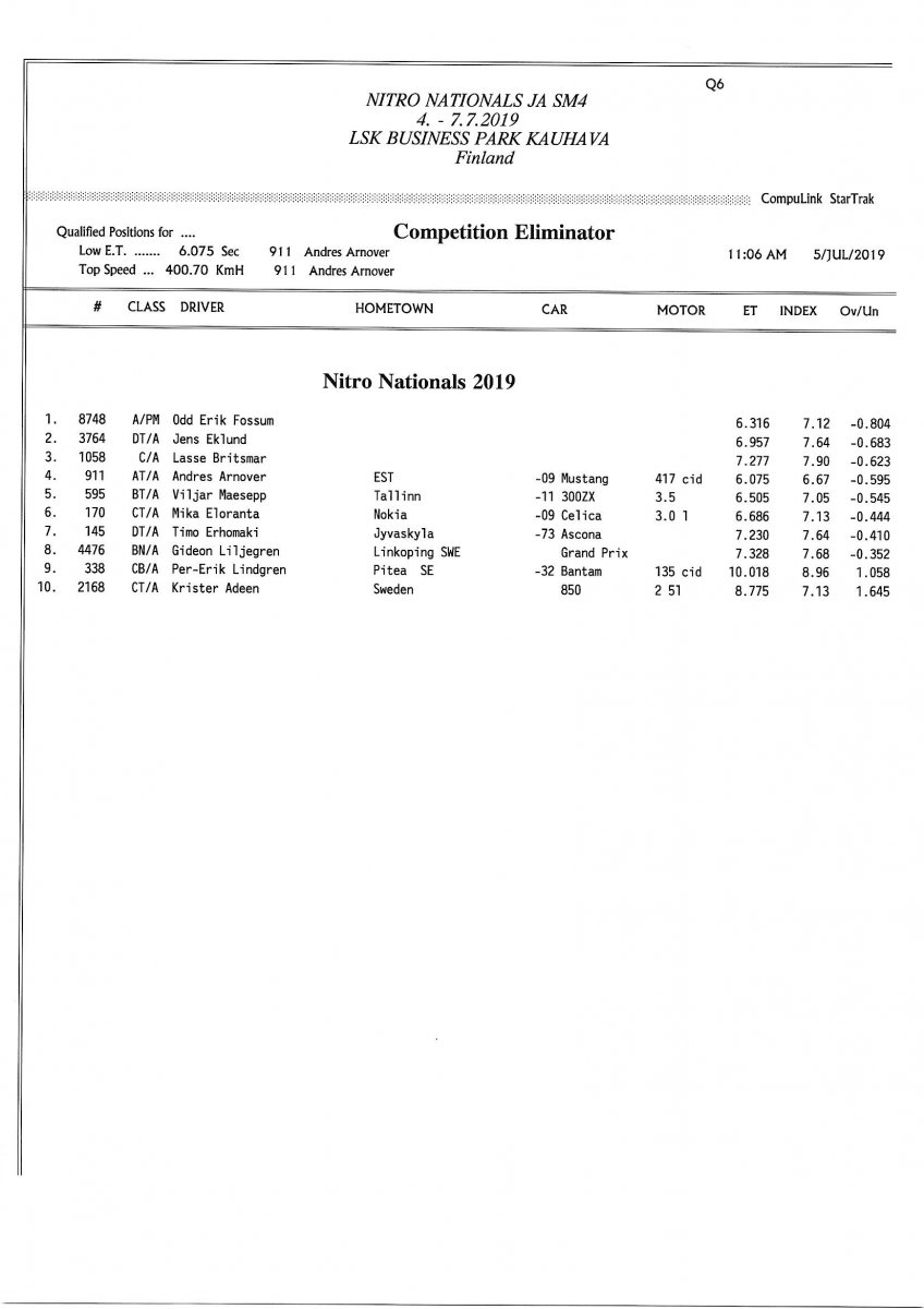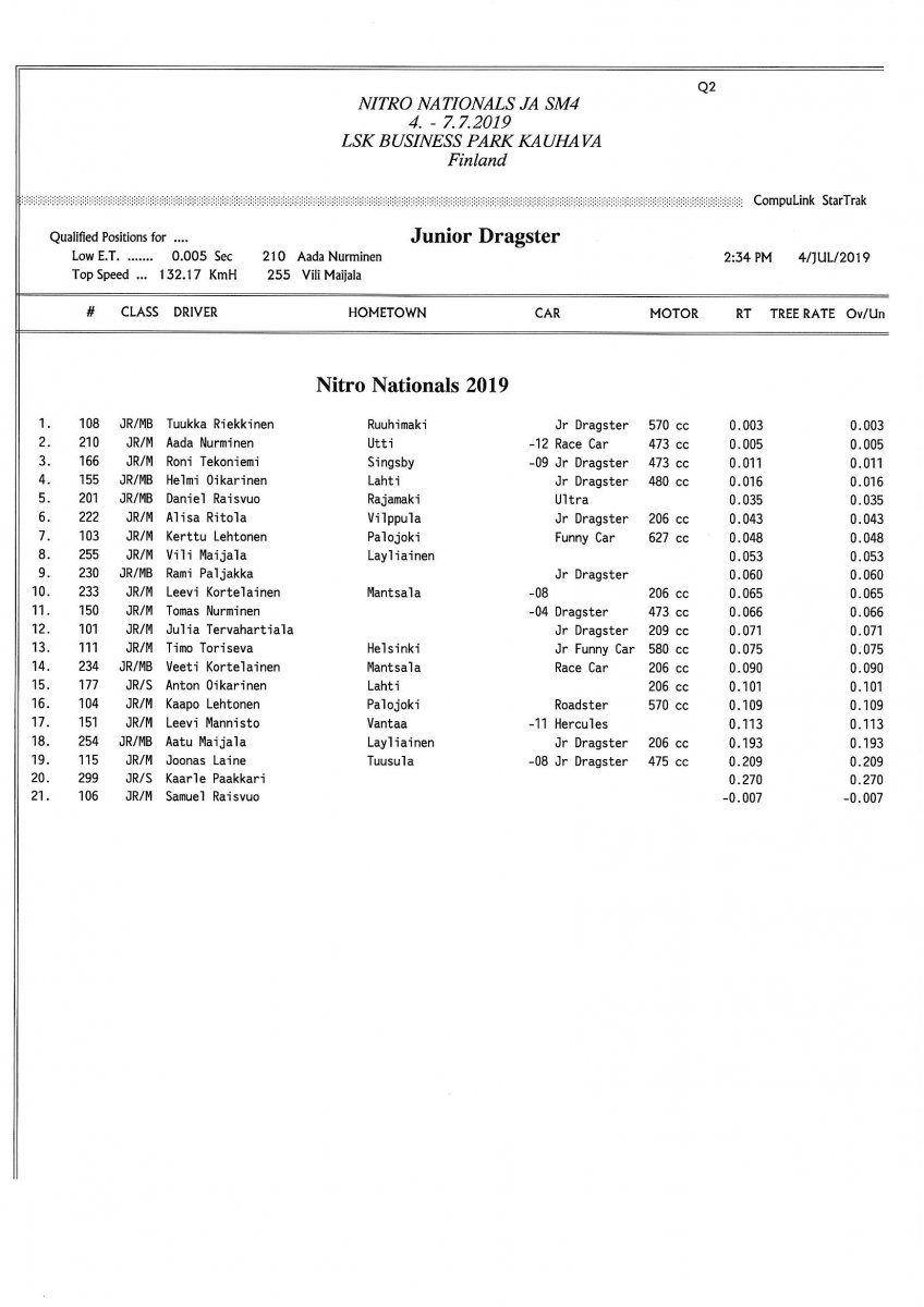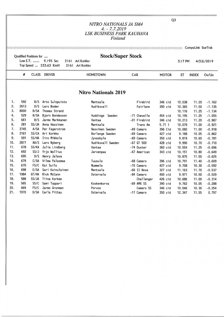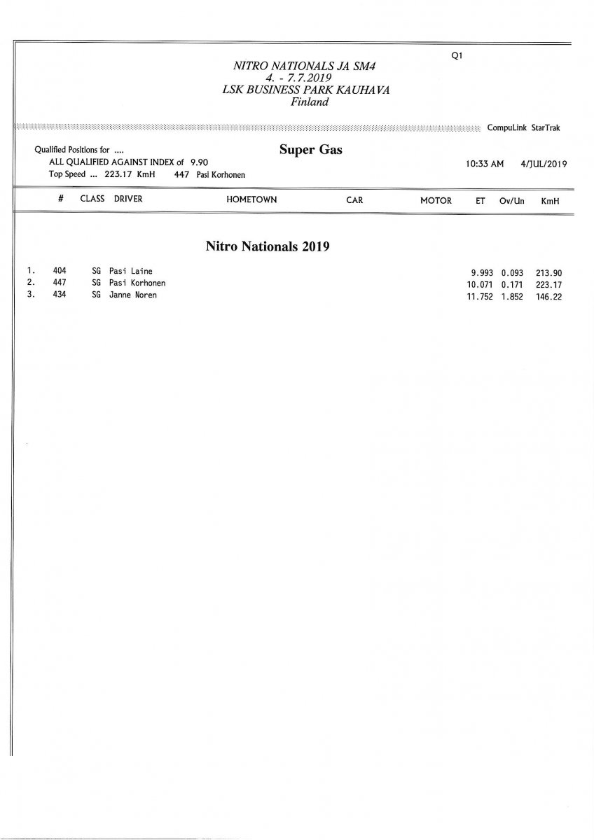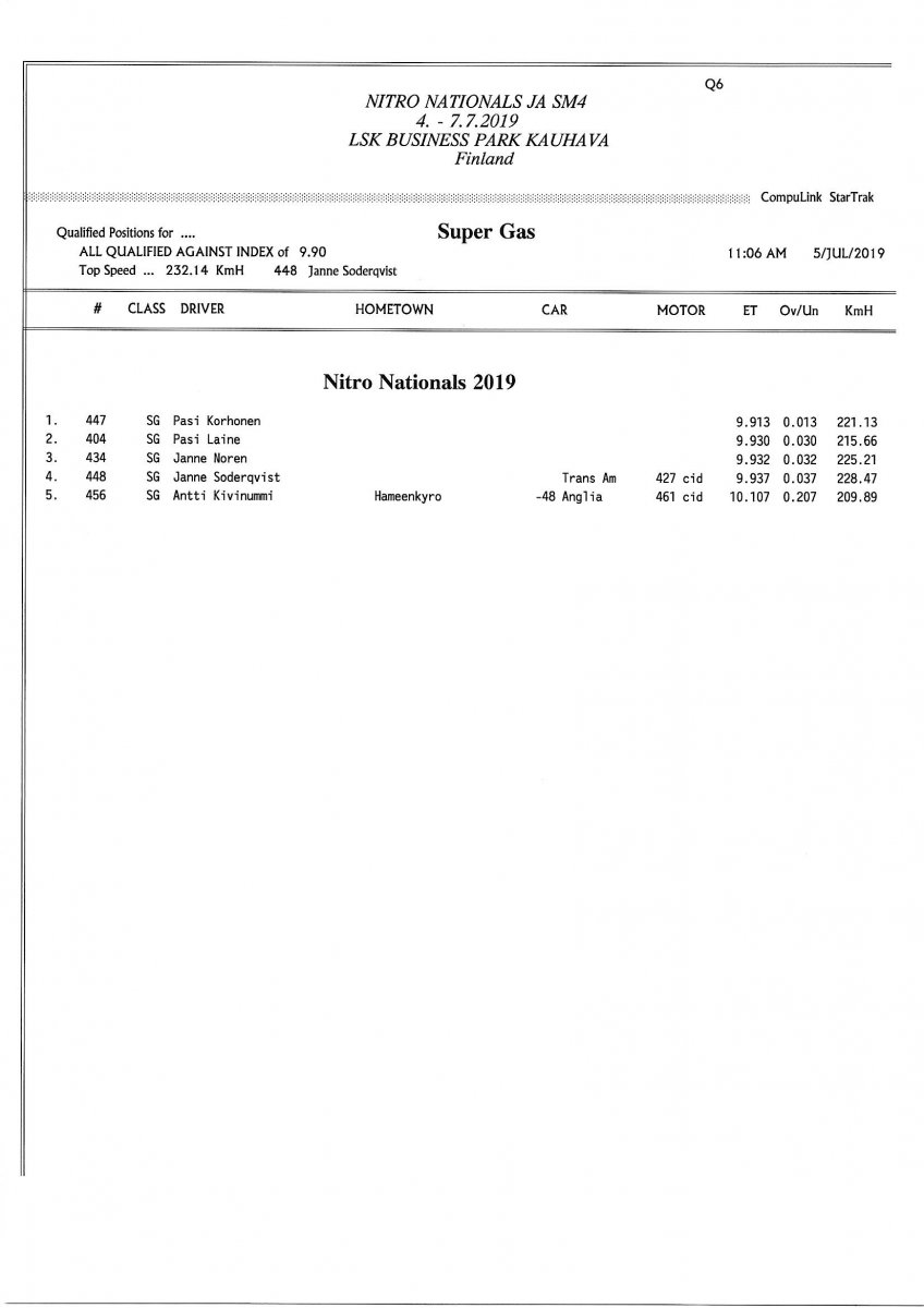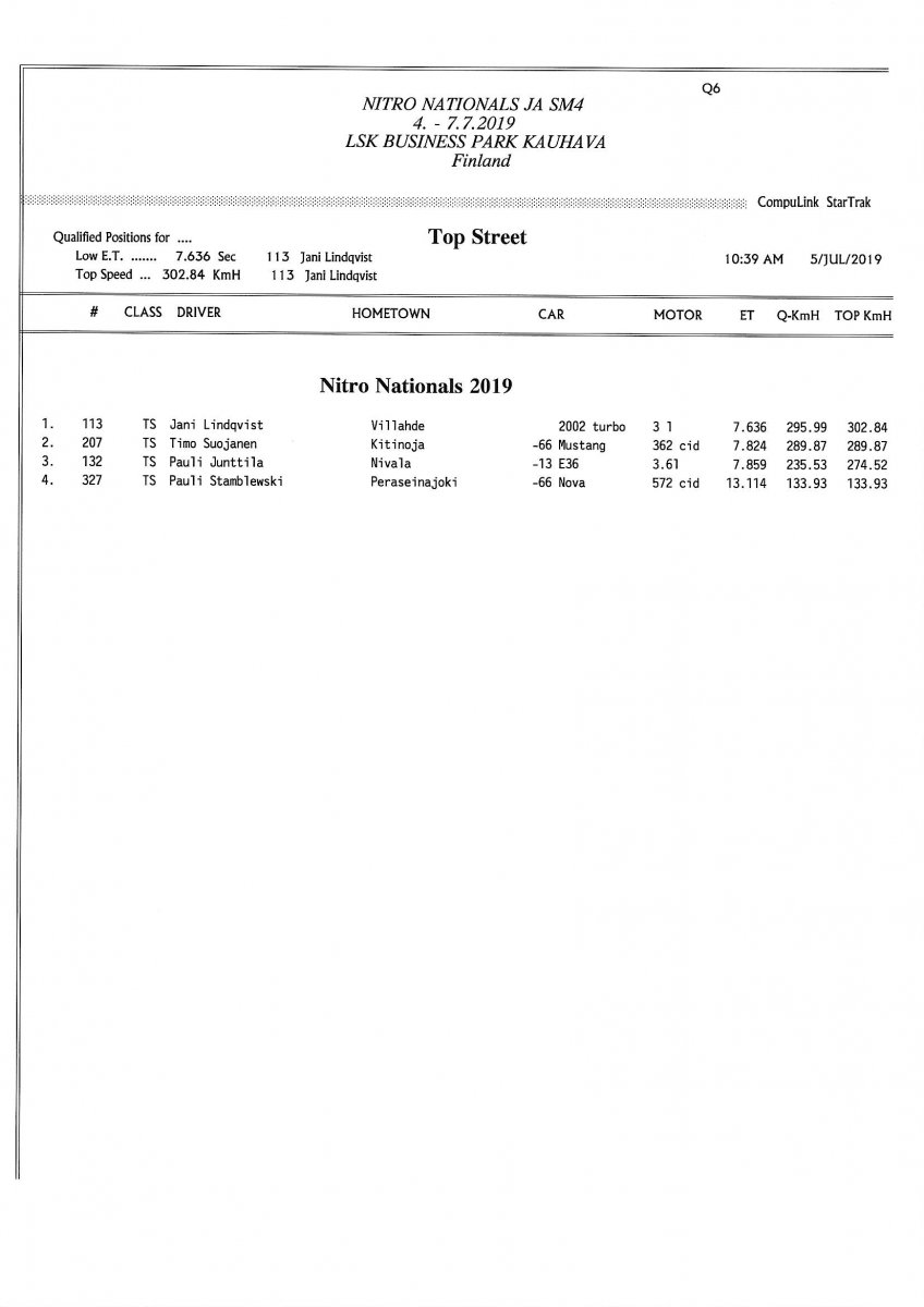 Invitation & Supplementary Regulations Nitro Nationals 2019. Posted on 10.5.2019 in Drag Racing, Nitro Nationals, Tapahtumat Invitation for FIA-, FIM-E -, EDRS Pro-, EDRS-classes 2019. The Invitation is finally online and the entrance for the FIA-, FIM-E -, EDRS -, EDRS Pro-classes and EDRS Pro MC for the FIA European Drag Racing Championship event Nitro Nationals on July 4th – July 7th 2019 at new track at LSK Business Park, Loppusuora 22 (Sotakouluntie), 62200 Kauhava, Finland is available on dragracing.eu. Please read the invitation below or on dragracing.eu. The last entrance date is 21st of June. Late entry may be accepted after this date but no later than June 28th 2019. If accepted, an extra fee will be charged. Kutsu FIA -, FIM-E -, EDRS -, EDRS Pro – Ja EDRS Pro MC-ryhmille on nyt linjoilla ja ilmoittautuminen on nyt mahdollista dragracing.eu-palvelussa FHRA Nitro Nationals European Drag Racing Championship tapahtumaan 4.-7.7.2019, joka ajetaan uudella radalla LSK Business Parkissa. Olkaa hyvä ja lukekaa koko kutsu tästä alta tai dragracing.eu-palvelusta. Viimeinen ilmoittautumispäivä on 21.6.2018. Ilmoittautumisia otetaan vastaan vielä 28.6. asti, mutta hintaan lisätään jälki-ilmoittautumismaksu. Invitation can be read here/Voit lukea kutsun täältä. https://www.fhra.fi/wp-content/uplo...LEMENTARY-REGULATIONS-NitroNationals_2019.pdf https://www.fhra.fi/wp-content/uploads/2019/05/KILPAILUKUTSU_SM_CUP_2019.pdf Race entry open at www.dragracing.eu Welcome Race fans.