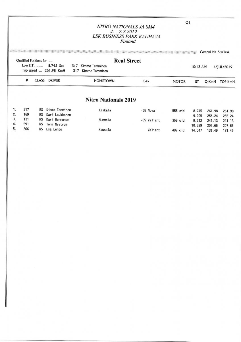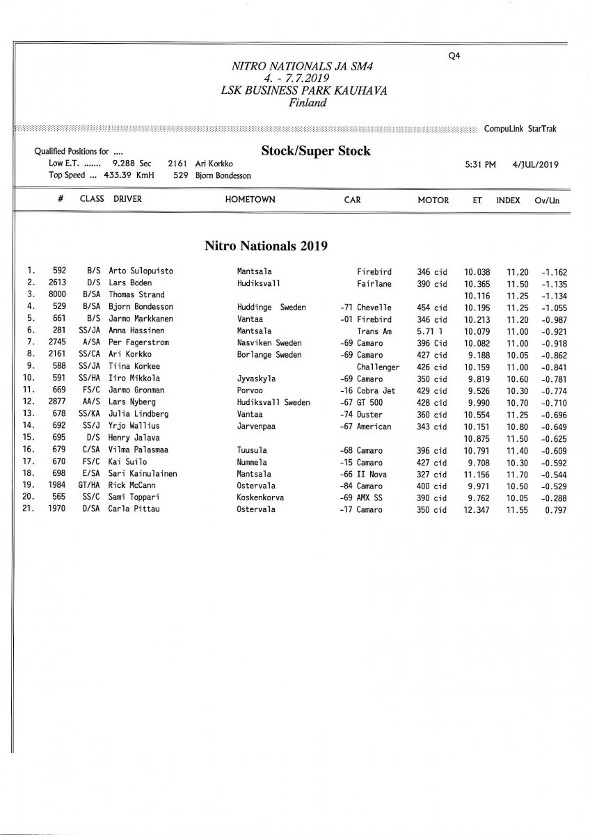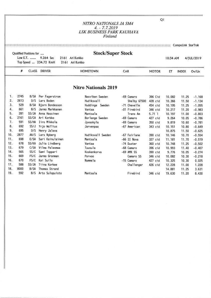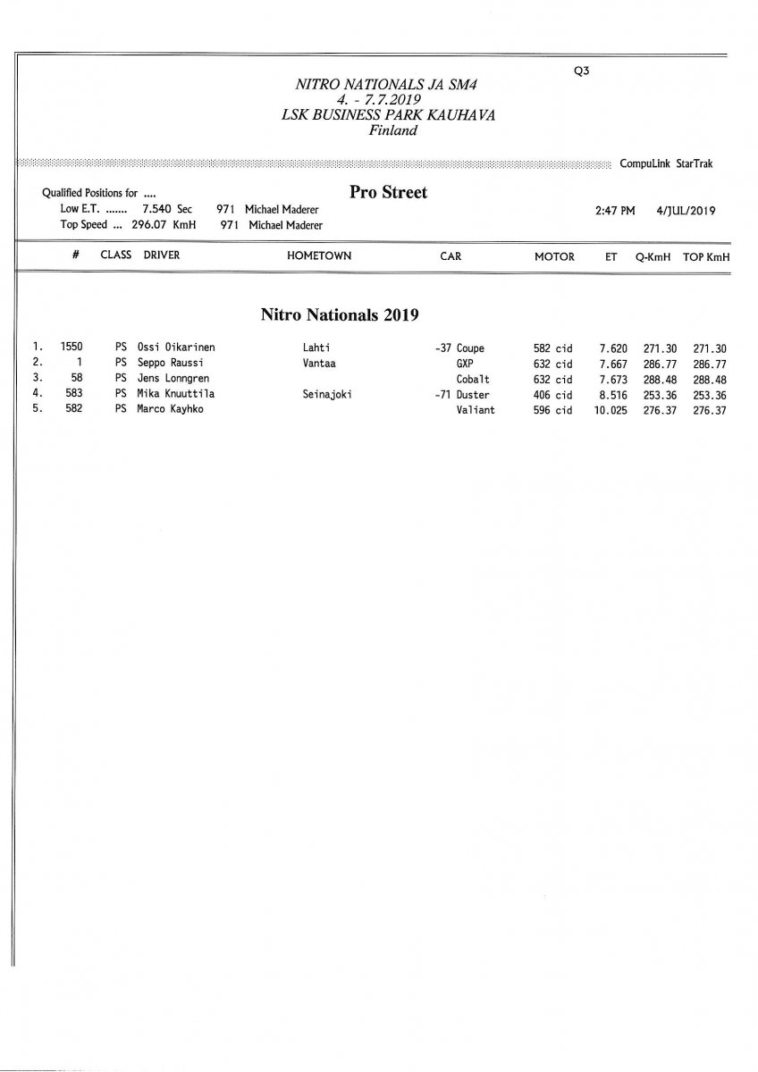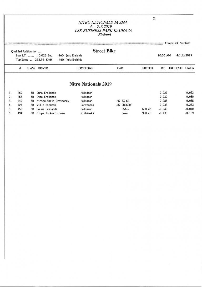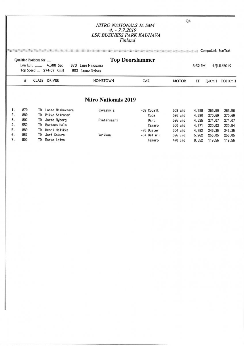 Invitation & Supplementary Regulations Nitro Nationals 2019. Posted on 10.5.2019 in Drag Racing, Nitro Nationals, Tapahtumat Invitation for FIA-, FIM-E -, EDRS Pro-, EDRS-classes 2019. The Invitation is finally online and the entrance for the FIA-, FIM-E -, EDRS -, EDRS Pro-classes and EDRS Pro MC for the FIA European Drag Racing Championship event Nitro Nationals on July 4th – July 7th 2019 at new track at LSK Business Park, Loppusuora 22 (Sotakouluntie), 62200 Kauhava, Finland is available on dragracing.eu. Please read the invitation below or on dragracing.eu. The last entrance date is 21st of June. Late entry may be accepted after this date but no later than June 28th 2019. If accepted, an extra fee will be charged. Kutsu FIA -, FIM-E -, EDRS -, EDRS Pro – Ja EDRS Pro MC-ryhmille on nyt linjoilla ja ilmoittautuminen on nyt mahdollista dragracing.eu-palvelussa FHRA Nitro Nationals European Drag Racing Championship tapahtumaan 4.-7.7.2019, joka ajetaan uudella radalla LSK Business Parkissa. Olkaa hyvä ja lukekaa koko kutsu tästä alta tai dragracing.eu-palvelusta. Viimeinen ilmoittautumispäivä on 21.6.2018. Ilmoittautumisia otetaan vastaan vielä 28.6. asti, mutta hintaan lisätään jälki-ilmoittautumismaksu. Invitation can be read here/Voit lukea kutsun täältä. https://www.fhra.fi/wp-content/uplo...LEMENTARY-REGULATIONS-NitroNationals_2019.pdf https://www.fhra.fi/wp-content/uploads/2019/05/KILPAILUKUTSU_SM_CUP_2019.pdf Race entry open at www.dragracing.eu Welcome Race fans.
