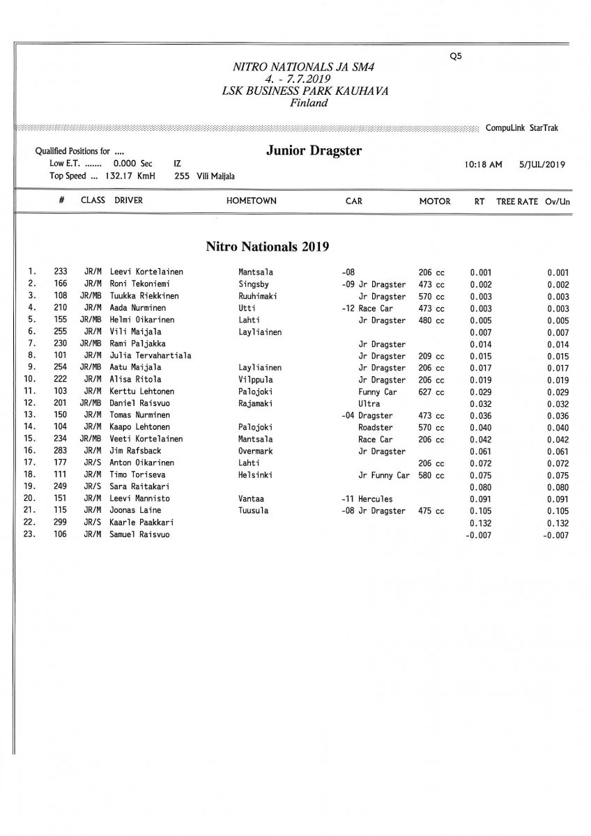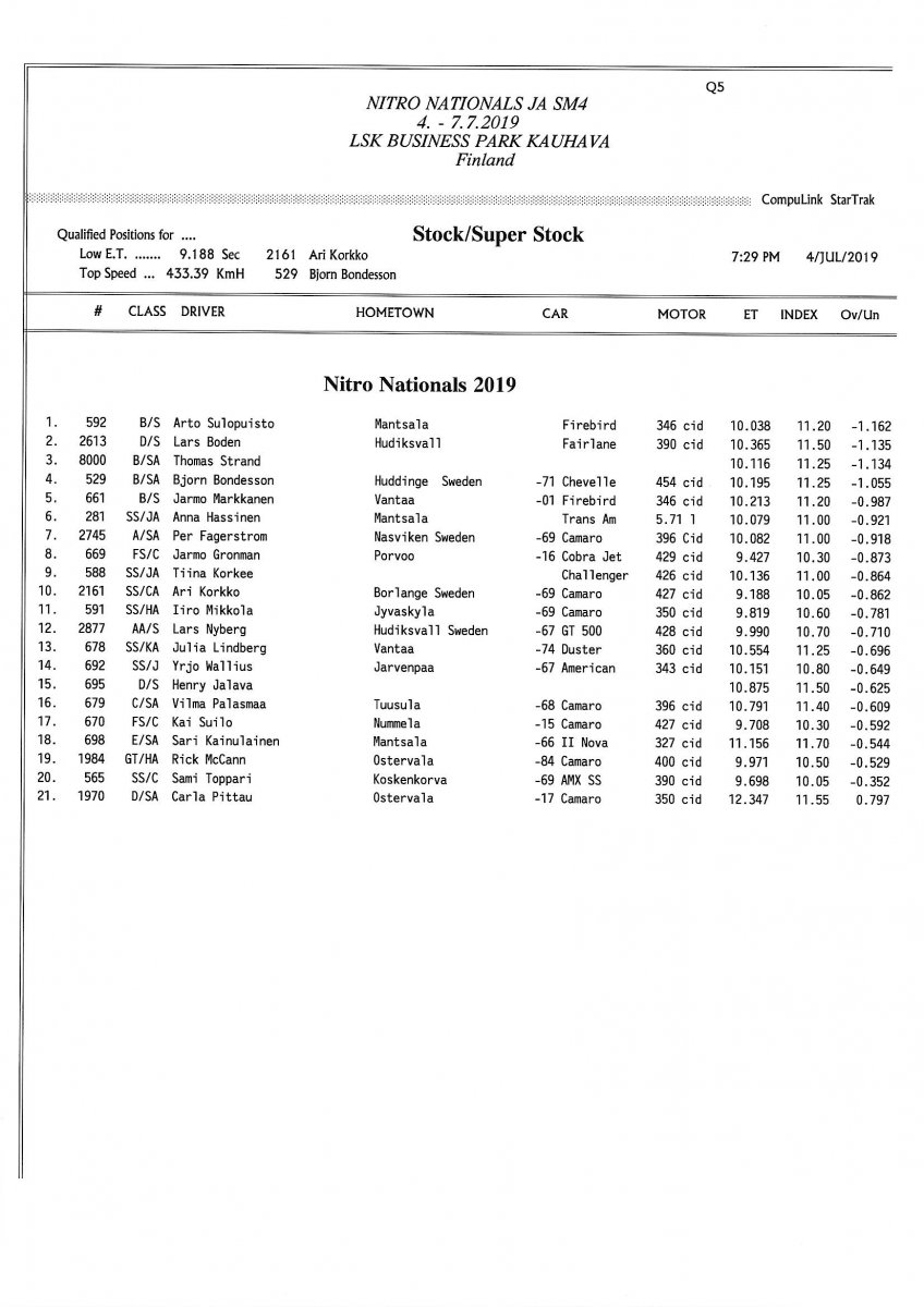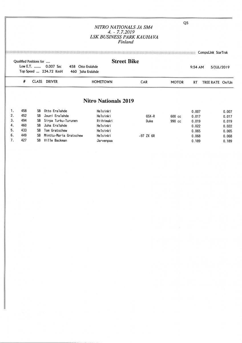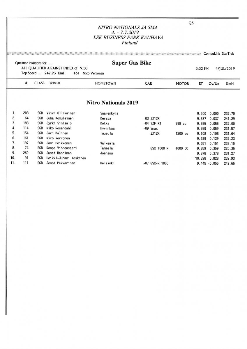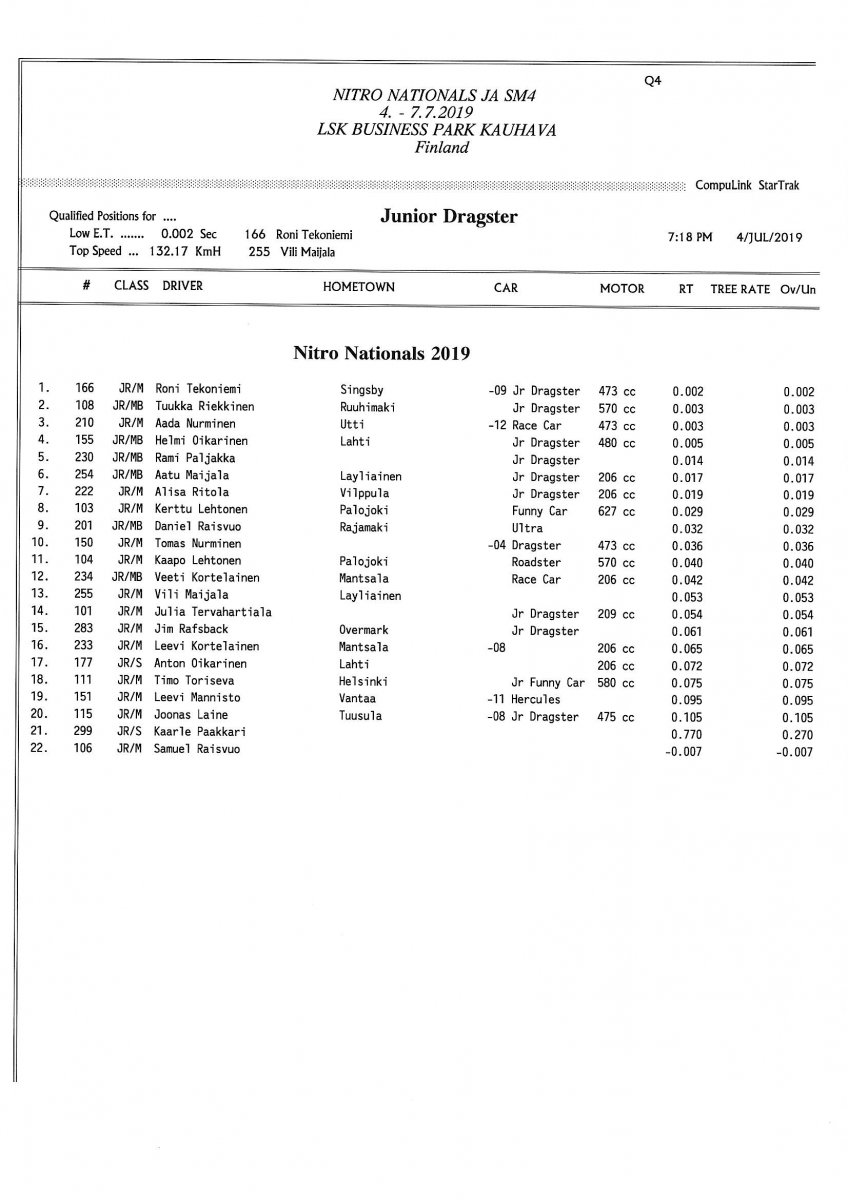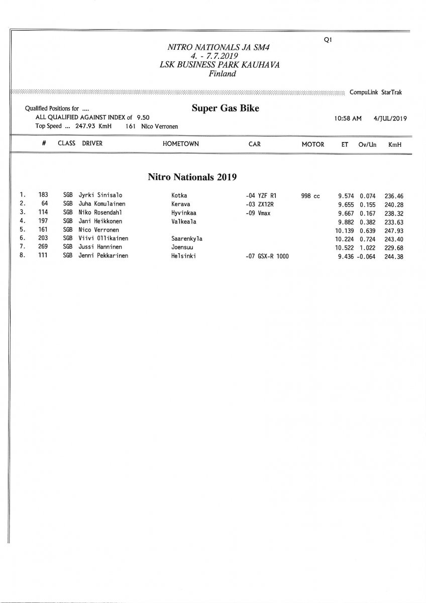 Invitation & Supplementary Regulations Nitro Nationals 2019. Posted on 10.5.2019 in Drag Racing, Nitro Nationals, Tapahtumat Invitation for FIA-, FIM-E -, EDRS Pro-, EDRS-classes 2019. The Invitation is finally online and the entrance for the FIA-, FIM-E -, EDRS -, EDRS Pro-classes and EDRS Pro MC for the FIA European Drag Racing Championship event Nitro Nationals on July 4th – July 7th 2019 at new track at LSK Business Park, Loppusuora 22 (Sotakouluntie), 62200 Kauhava, Finland is available on dragracing.eu. Please read the invitation below or on dragracing.eu. The last entrance date is 21st of June. Late entry may be accepted after this date but no later than June 28th 2019. If accepted, an extra fee will be charged. Kutsu FIA -, FIM-E -, EDRS -, EDRS Pro – Ja EDRS Pro MC-ryhmille on nyt linjoilla ja ilmoittautuminen on nyt mahdollista dragracing.eu-palvelussa FHRA Nitro Nationals European Drag Racing Championship tapahtumaan 4.-7.7.2019, joka ajetaan uudella radalla LSK Business Parkissa. Olkaa hyvä ja lukekaa koko kutsu tästä alta tai dragracing.eu-palvelusta. Viimeinen ilmoittautumispäivä on 21.6.2018. Ilmoittautumisia otetaan vastaan vielä 28.6. asti, mutta hintaan lisätään jälki-ilmoittautumismaksu. Invitation can be read here/Voit lukea kutsun täältä. https://www.fhra.fi/wp-content/uplo...LEMENTARY-REGULATIONS-NitroNationals_2019.pdf https://www.fhra.fi/wp-content/uploads/2019/05/KILPAILUKUTSU_SM_CUP_2019.pdf Race entry open at www.dragracing.eu Welcome Race fans.