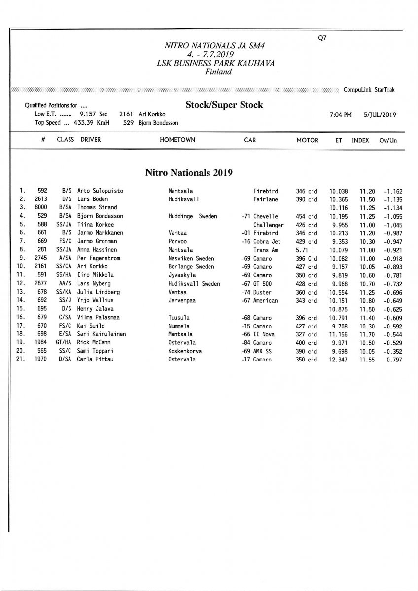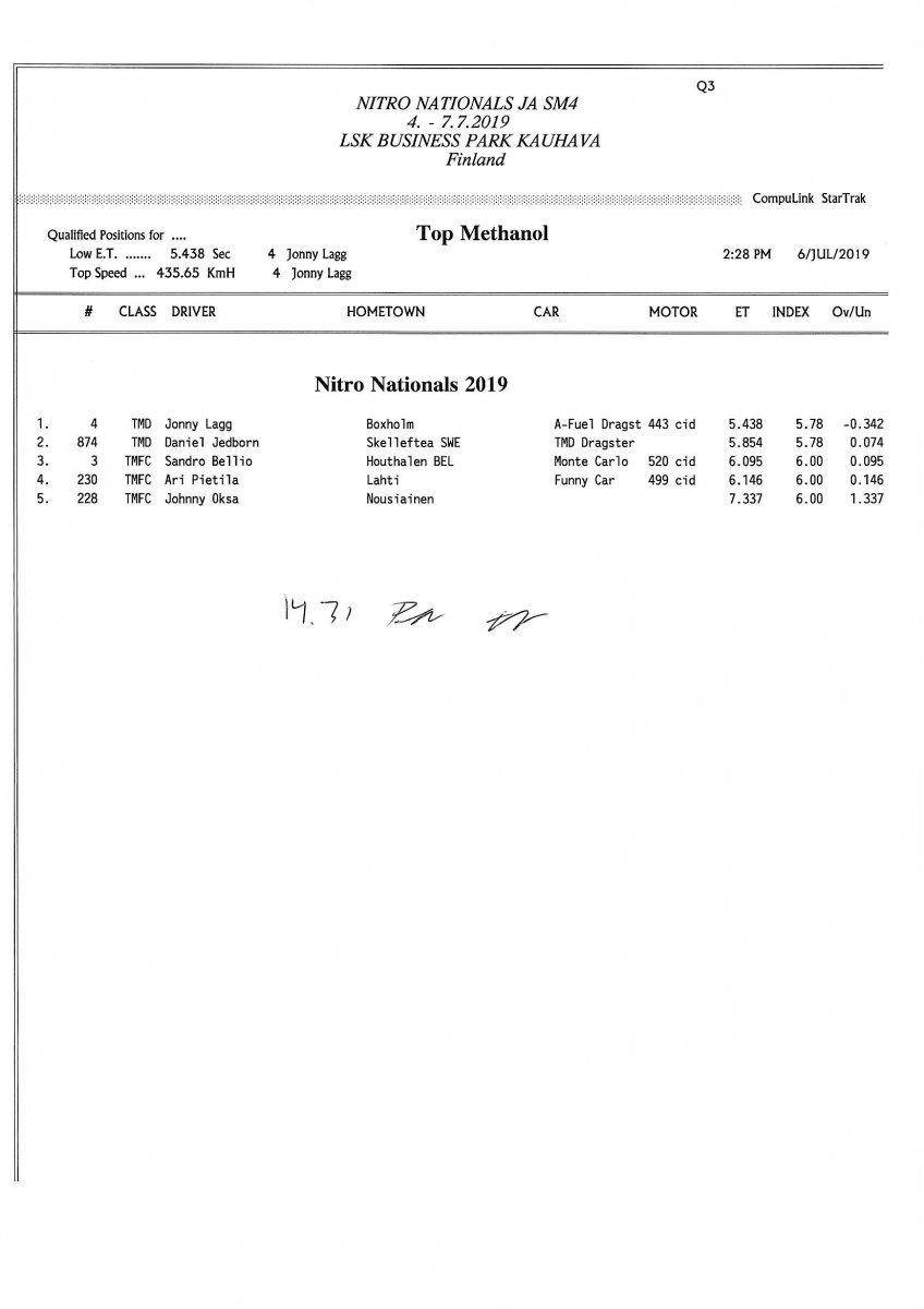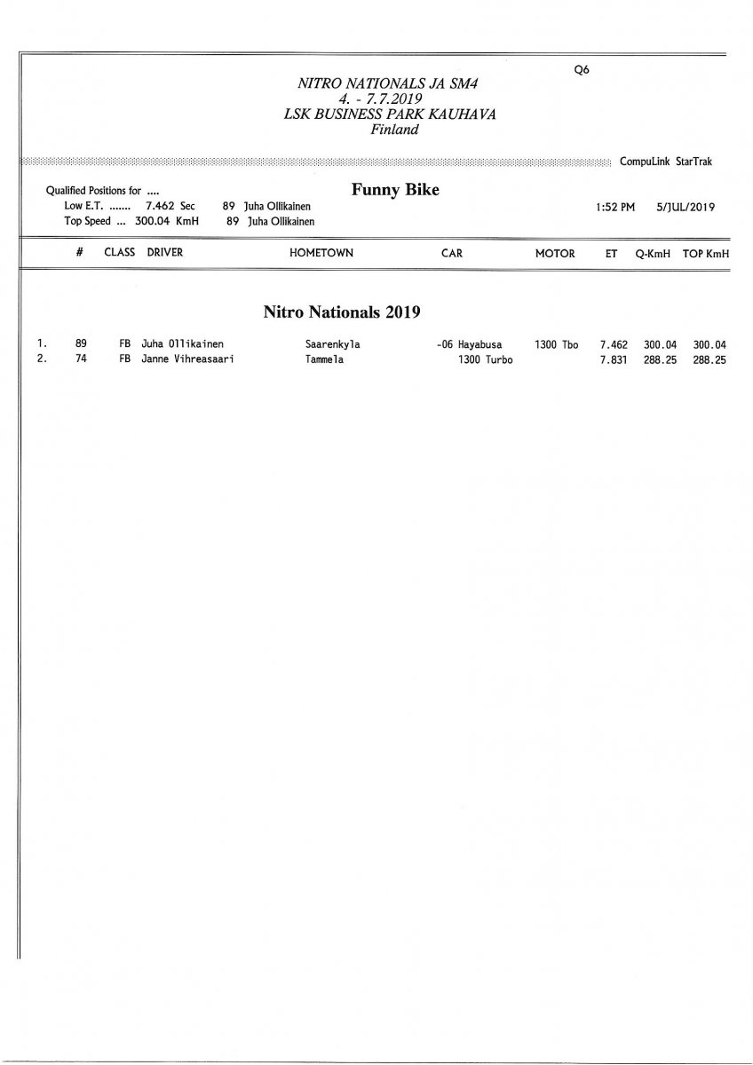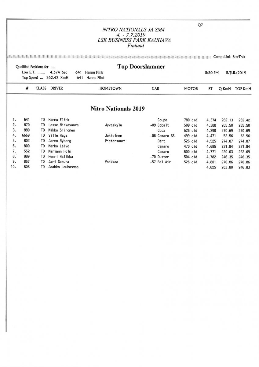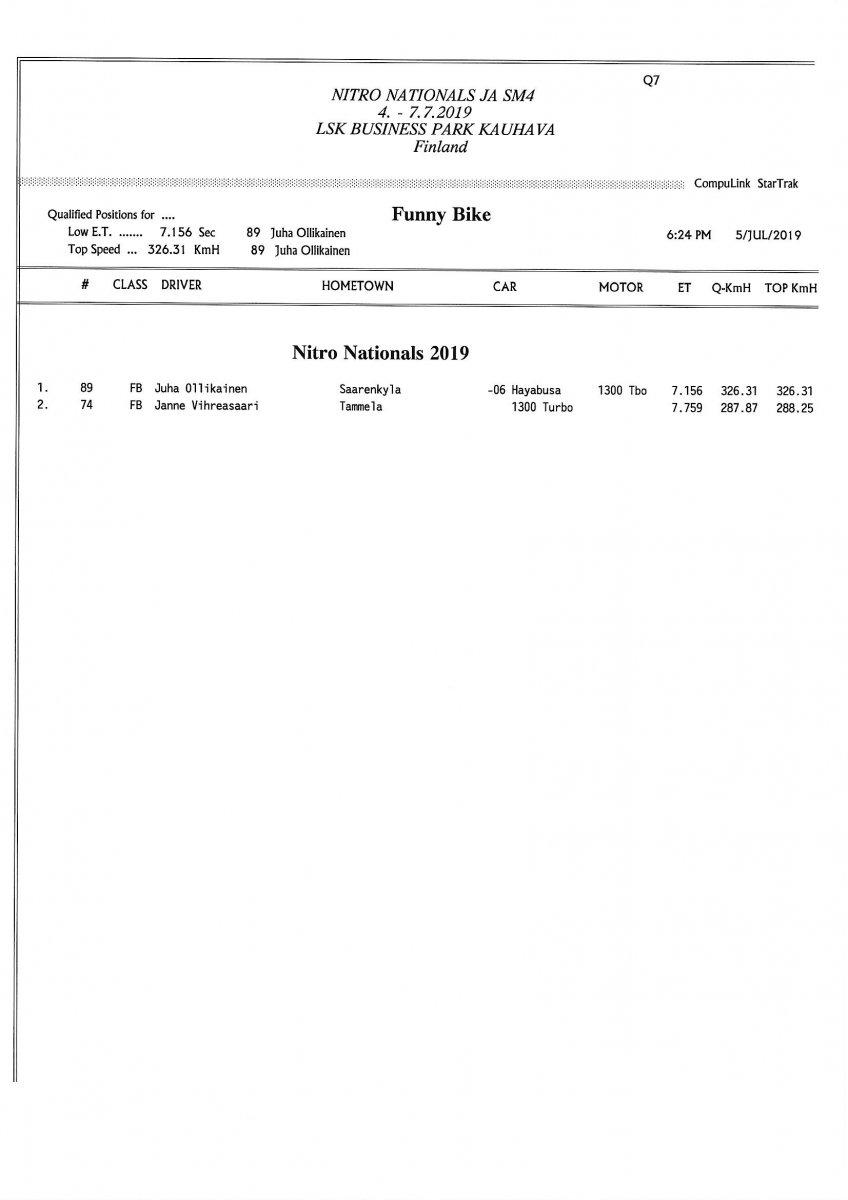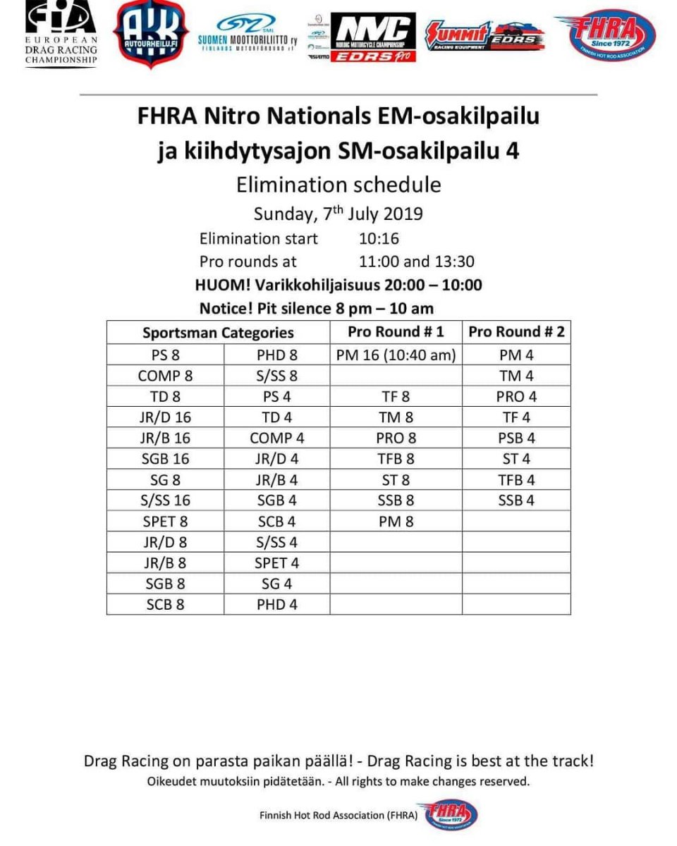 Picture galleries - kuvia Thursday: FHRA Nitro nationals 4.7.2019 Friday: FHRA Nitro nationals 5.7.2019 Saturday: FHRA Nitro nationals 6.7.2019