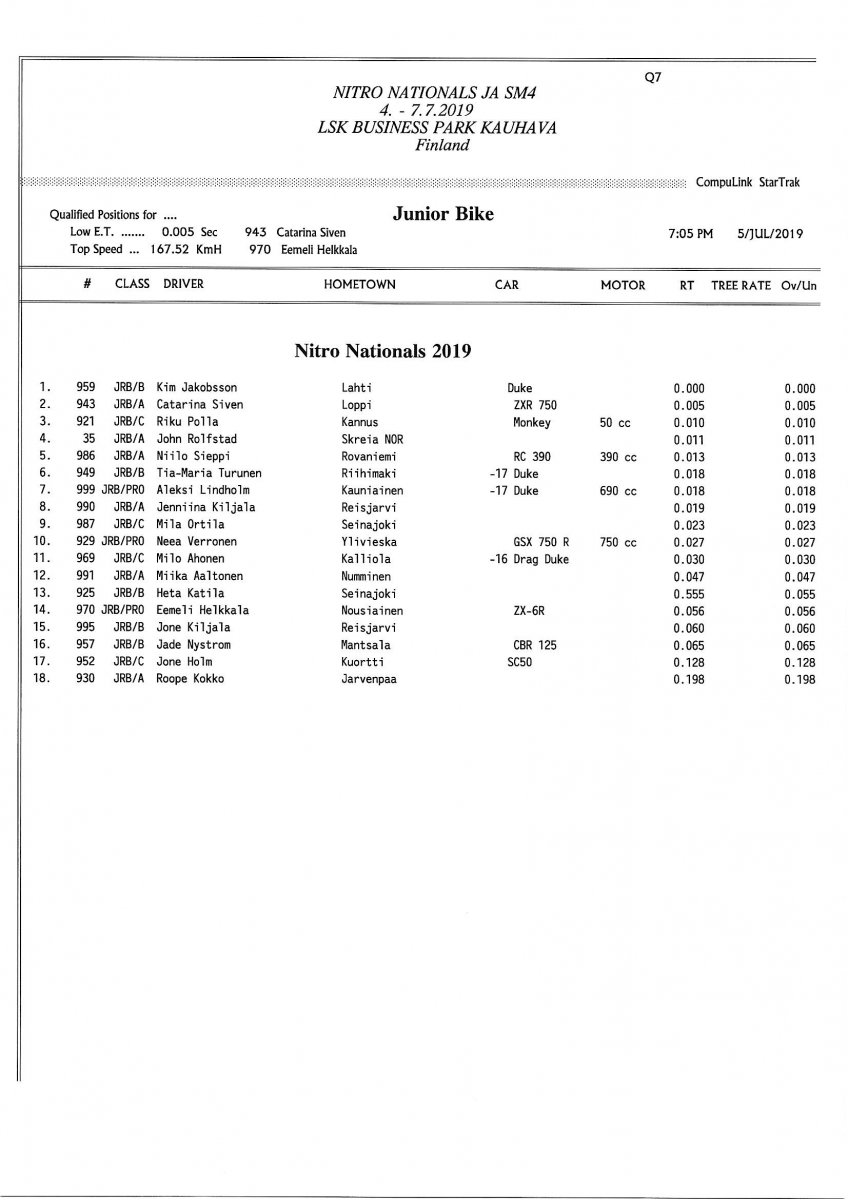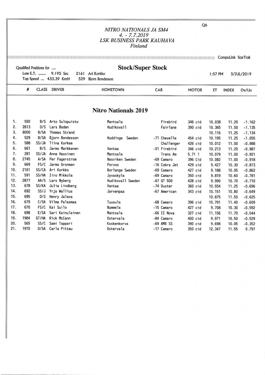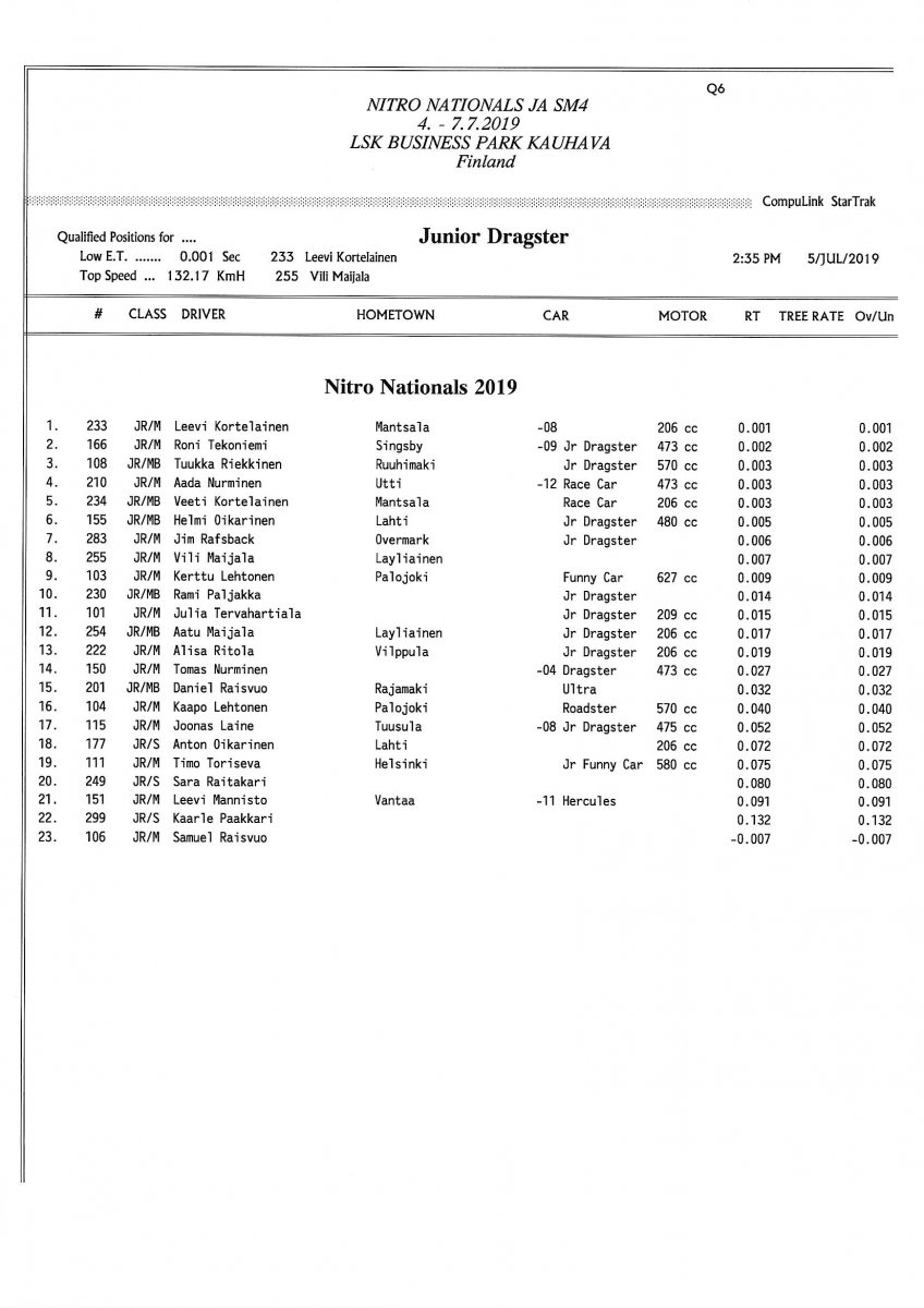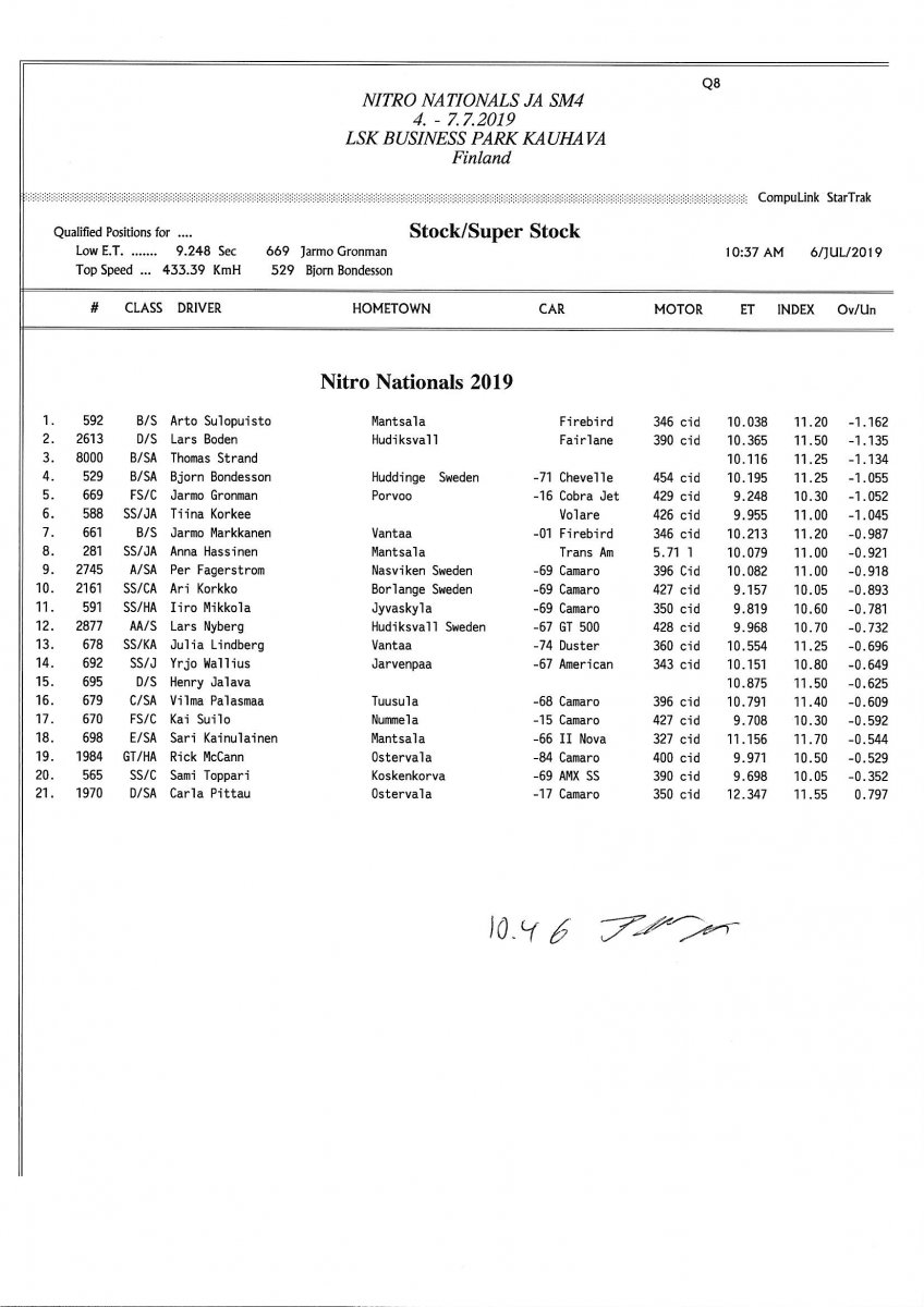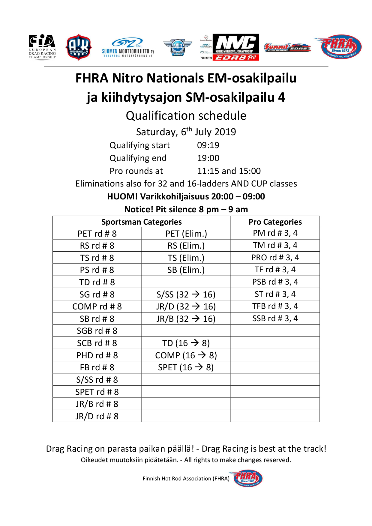 Picture galleries - kuvia Thursday: FHRA Nitro nationals 4.7.2019 Friday: FHRA Nitro nationals 5.7.2019 Saturday: FHRA Nitro nationals 6.7.2019