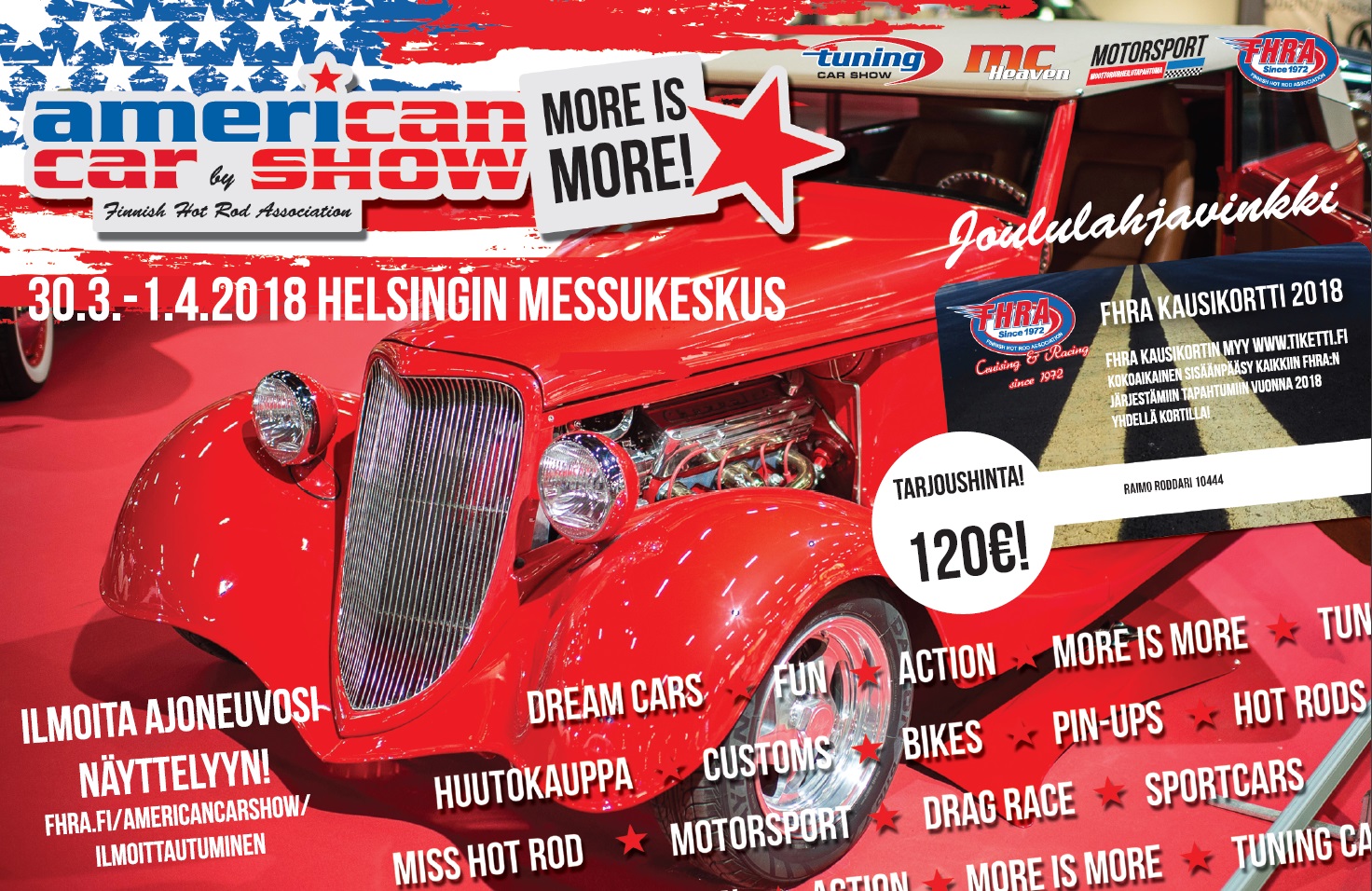 American Car Show, Tuning Car Show, MC Heaven & Motorsport 2018 lipunmyynti polkaistaan käyntiin nyt joululahjatarjouksella!