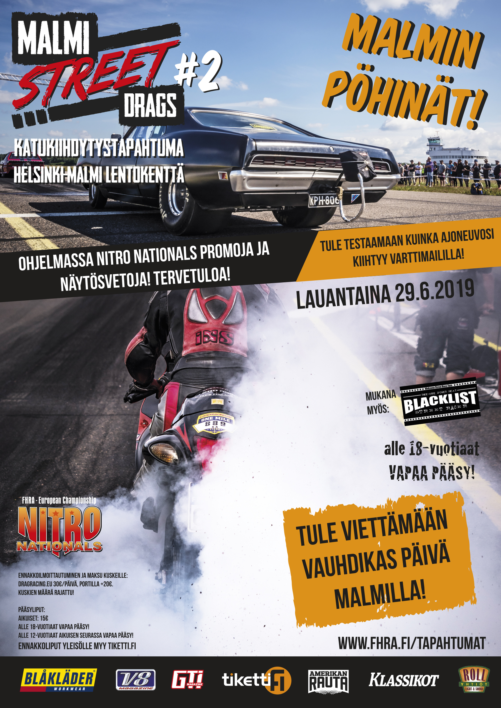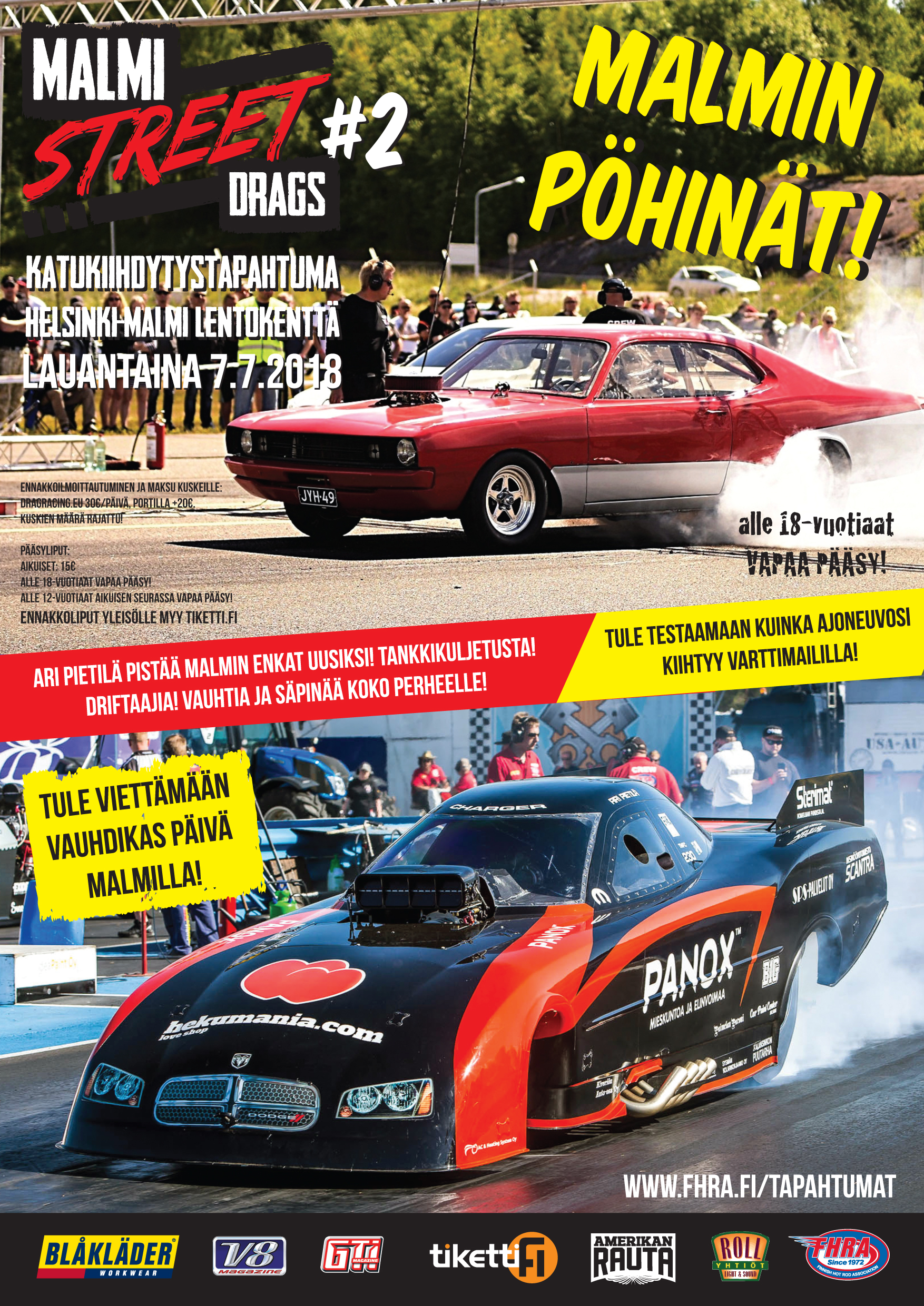 Tule viettämään vauhdikasta päivää Helsinki-Malmin lentokentälle! Tapahtumassa katulailliset ajoneuvot testaavat kiihtyvyyttään 1/8-mailin matkalla. Paikalla FHRA:n ajanotto ja rataryhmä. Tule kokemaan, vaikka koko perheen voimin, kiihdytystapahtuman vauhti ja äänet!