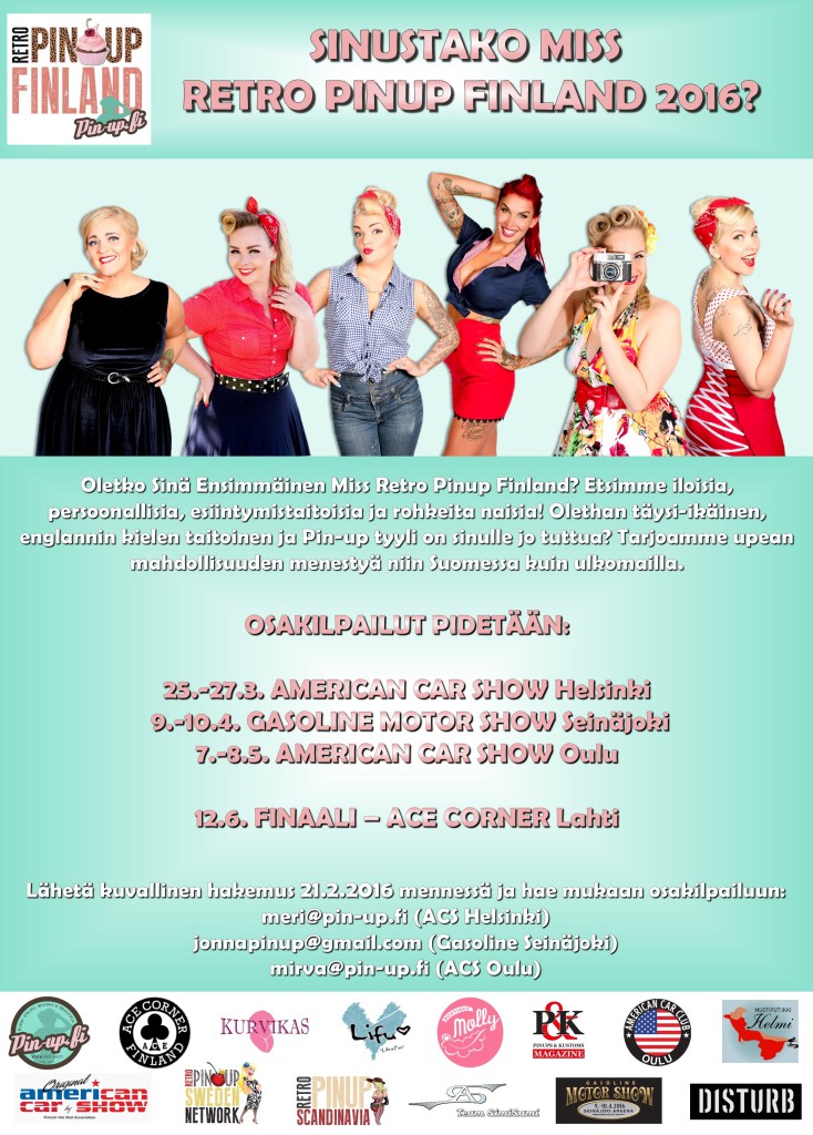 Lähetä kuvallinen hakemus 21.2.2016 mennessä, jossa kerrot itsestäsi. Kuvan tulee olla hyvälaatuinen, jossa pin-up stailaus on itse tehty.