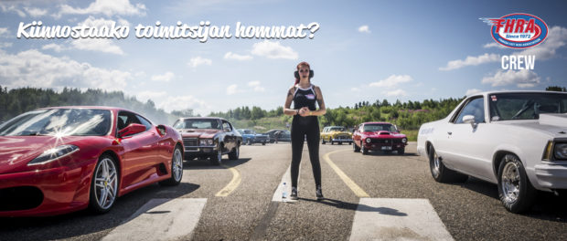 Olet sä reipas, tykkäät pärinästä ja haluat mukaan tekemään vauhdikkaita tapahtumia? Hommia on laidasta laitaan! Olisiko sinusta FHRA toimitsijaksi? Pääset mukaan keskelle Maailman nopeinta moottoriurheilua ja messiin järjestämään katu- ja cruisingtapahtumia. Olisit mukana tekemässä Suomen suurinta harrasteajoneuvonäyttelyä American Car Show´ta pääsiäisenä?