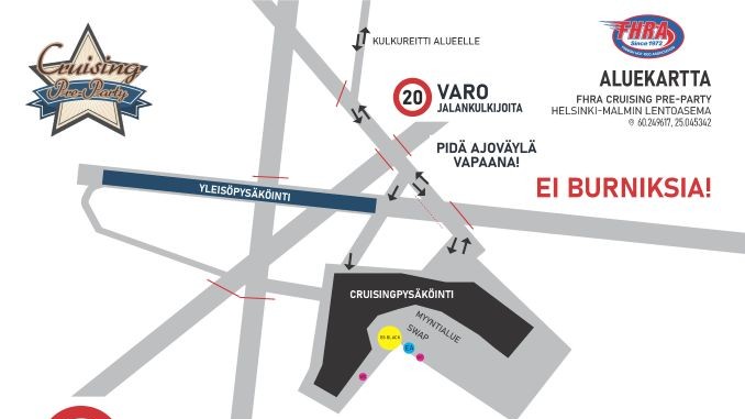 Vappu Cruising Pre-Party + SWAP järjestetään perjantaina 1.5. kello 12-18. Vaikutuksia liikenteessä on odotettavissa kello 11–19 välisenä aikana.