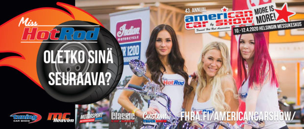 Tänä vuonna kilpailu on täysin uudistettu, Miss Hot Rod semifinaali pidetään Helsingissä maaliskuussa, josta valitaan Miss Hot Rod finalistit ja heidät julkaistaan silloin medialle ja yleisölle. Finalistien kanssa jatkamme vauhdikasta viikonloppua yhdessä hauskan pidon merkeissä. American Car Show viikonloppu huipentuu finaaliin sunnuntai iltapäivällä. Finalistit yöpyvät koko viikonlopun hotellissa.