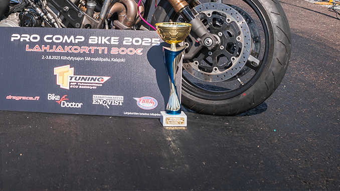 Voittajalle on luvassa 200€ arvoinen, ja runner-upille 100€ arvoinen lahjakortti. Myös Dragrace.fi Pro Comp Bike -ryhmässä on jaossa samanarvoiset lahjakortit.