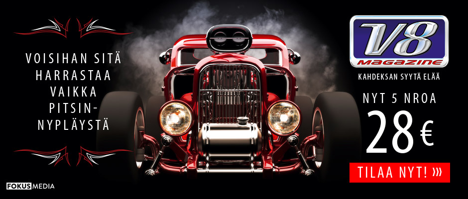 Hot roddingin pioneeri V8-Magazine puhuu asioista kuin kahdeksansylinterinen moottori – syvällä rintaäänellä. Lehteä on alusta asti tehty rasvanäpiltä toiselle, amerikkalaisia autoja kunnioittaen. Me arvostamme jenkkiautojen ajattomia muotoja, vanhan nahan tuoksua ja rokin räminää. V8 on asenne ja elämäntapa!