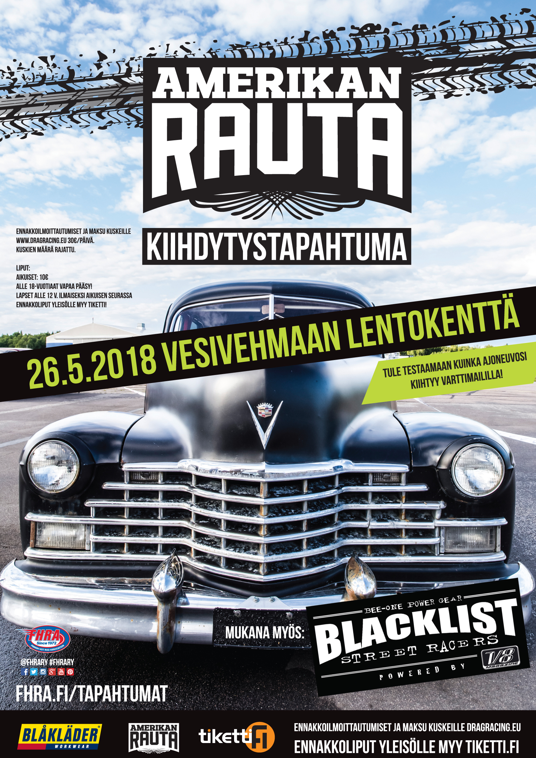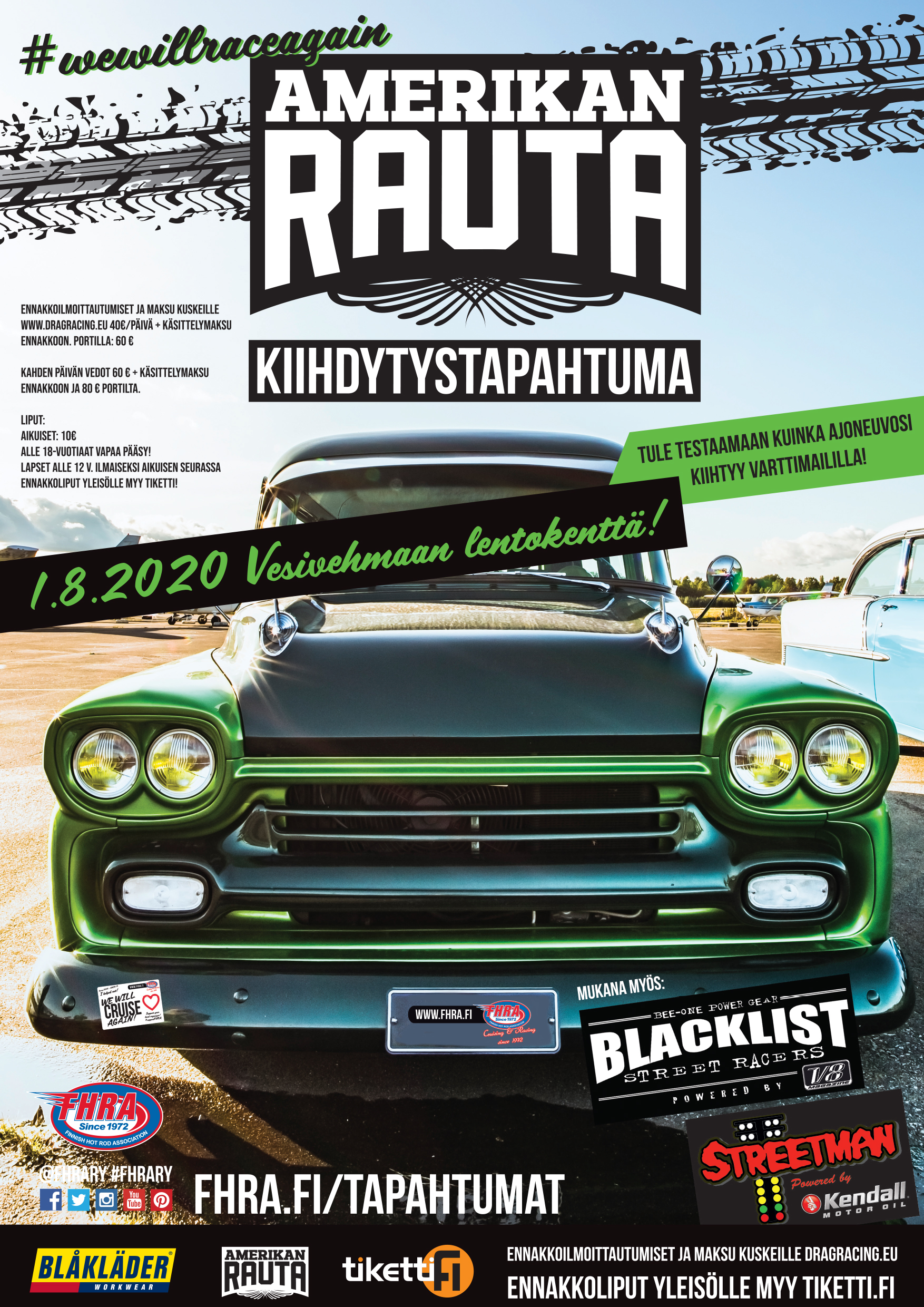 Hyvä asiakkaamme! Huomioithan, että Drag Racing kilpailu järjestetään säävarauksella. Sateen aikana ei turvallisuussyistä voida ajaa, sään salliessa ajoja jatketaan heti kun se vain on mahdollista.