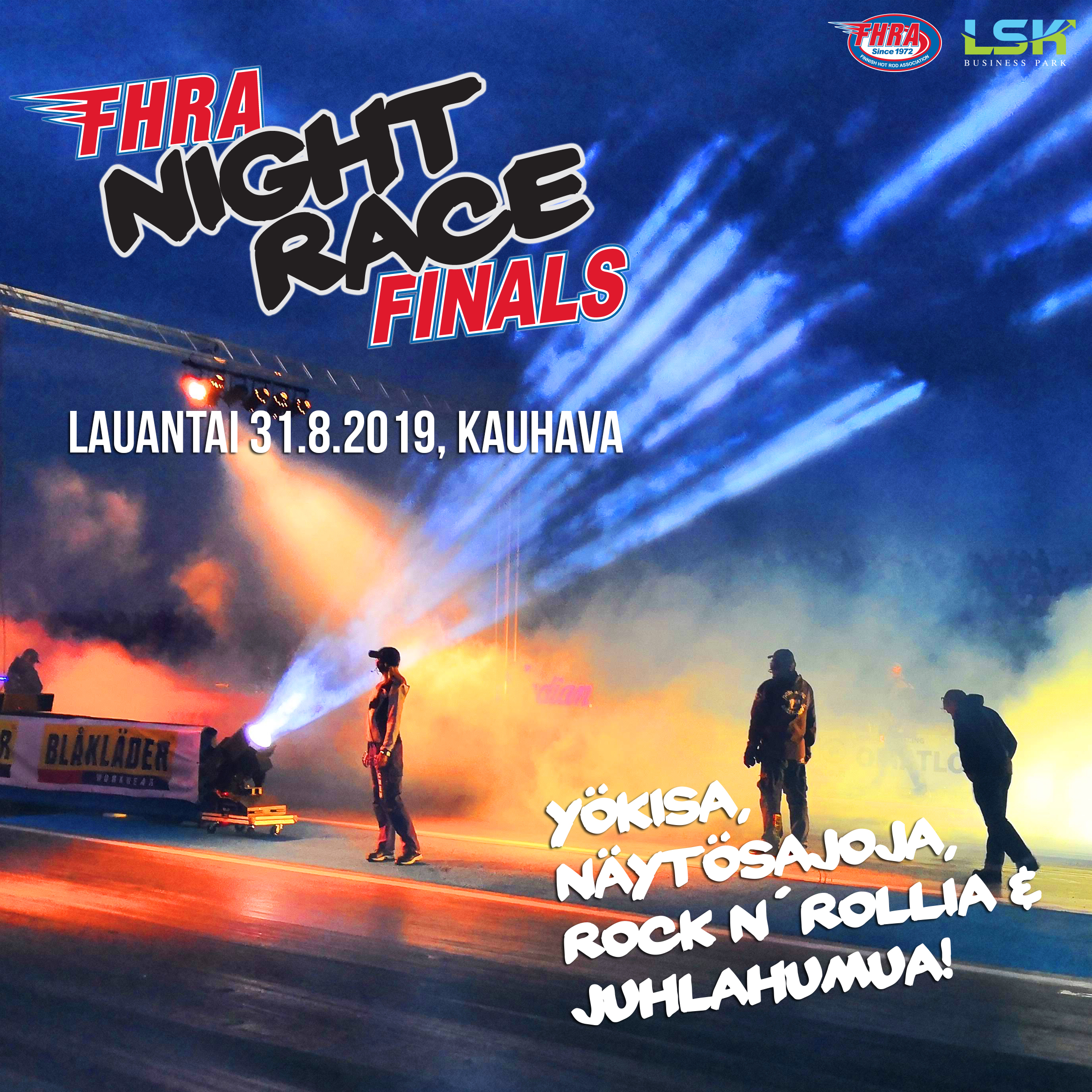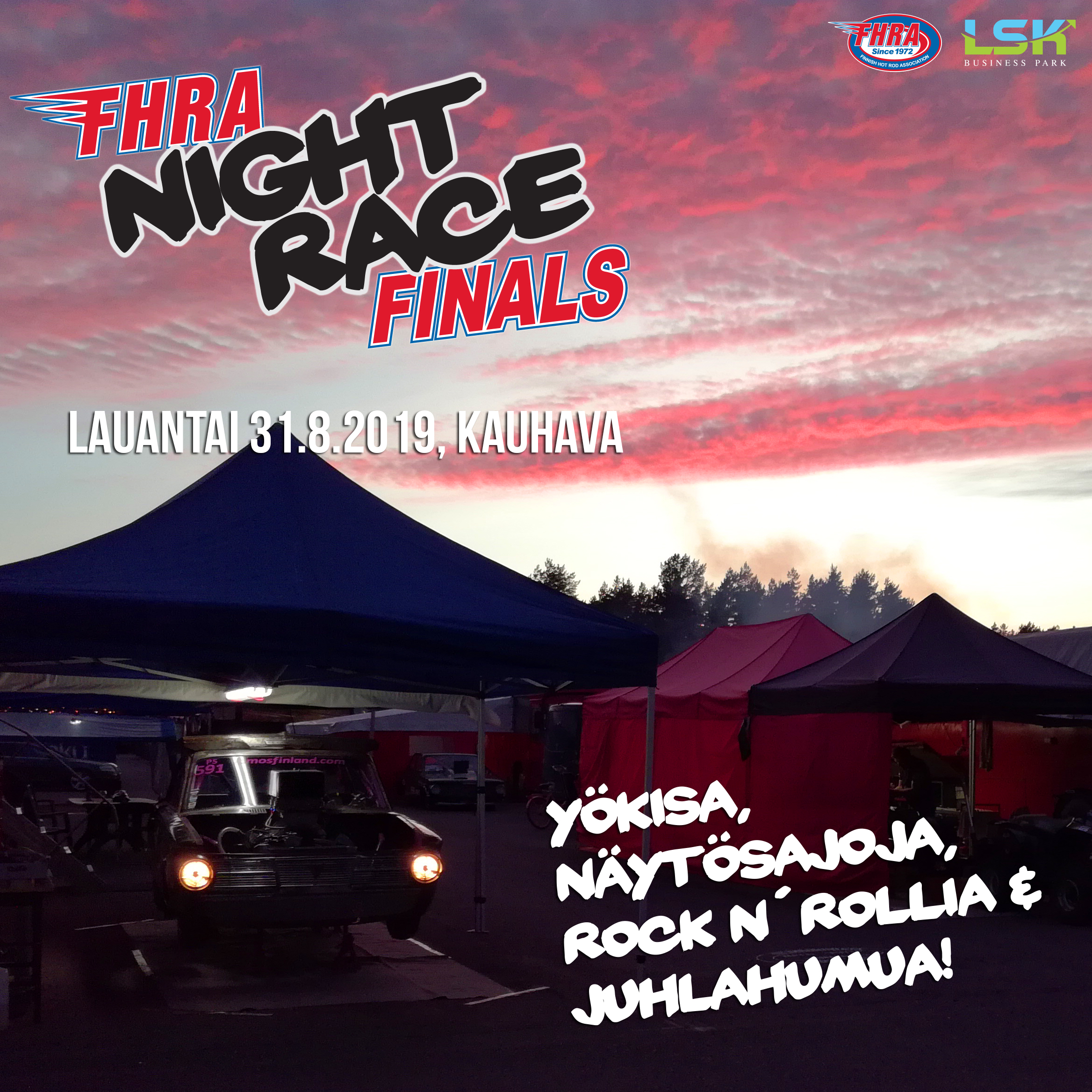 Koska lauantai 31.8.2019 on Night Race-päivä Kauhavalla eli ympäristölupa sallii ajamisen yömyöhään ja yleisöä on odotettavissa varsinkin iltaan reilusti, haluamme antaa kaikille mahdollisuuden ajaa mahdollisimman paljon ja ison yleisön edessä.